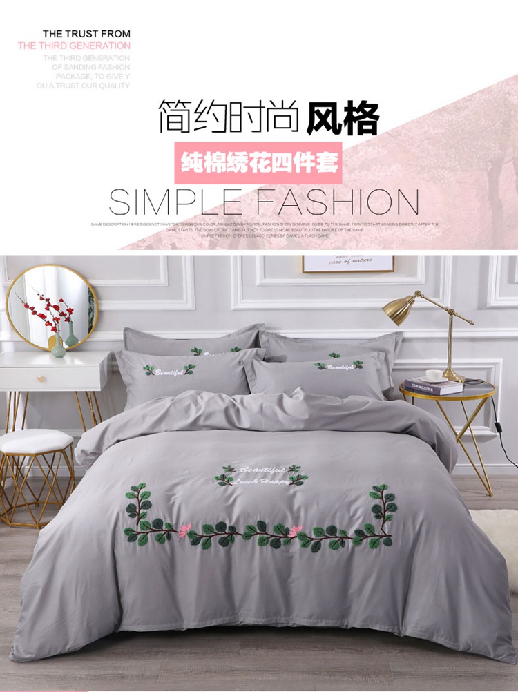 2022晶缦全棉13372纯色毛巾绣绣花四件套 爱之蔓灰色