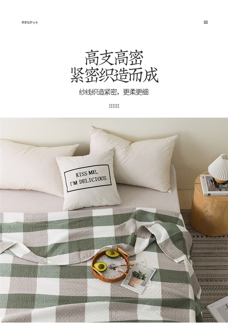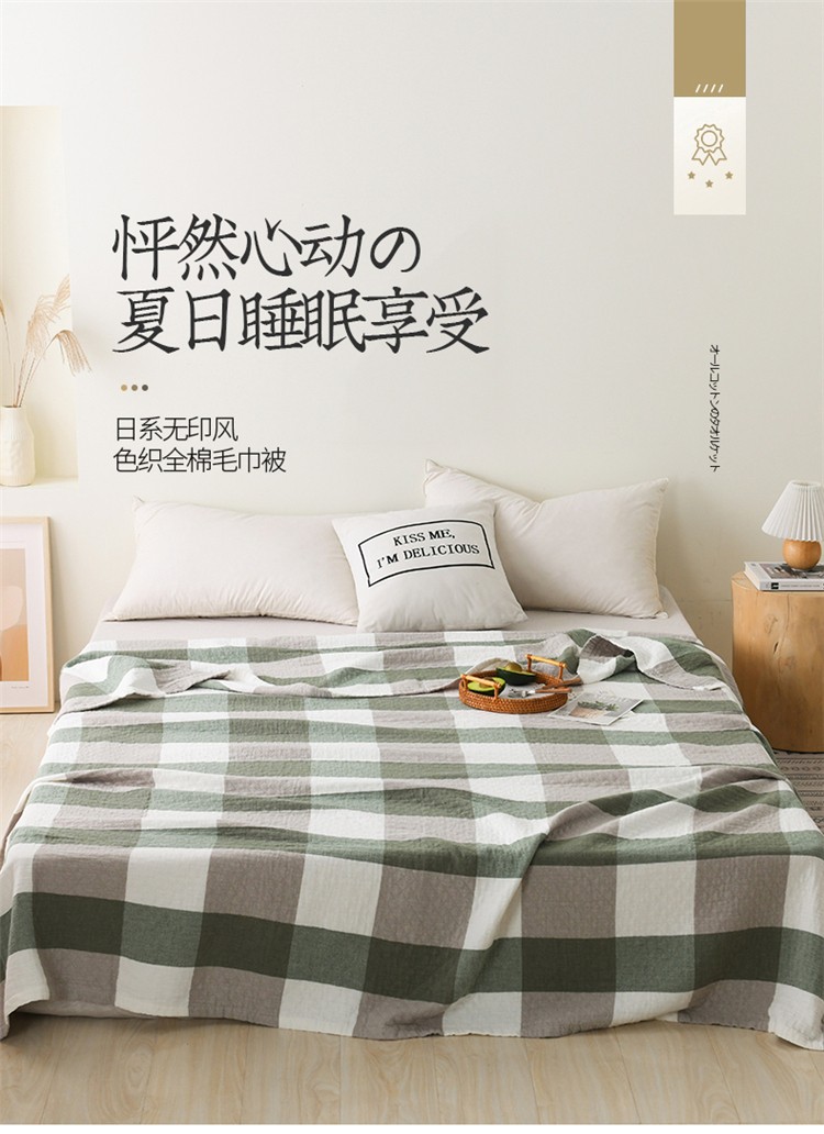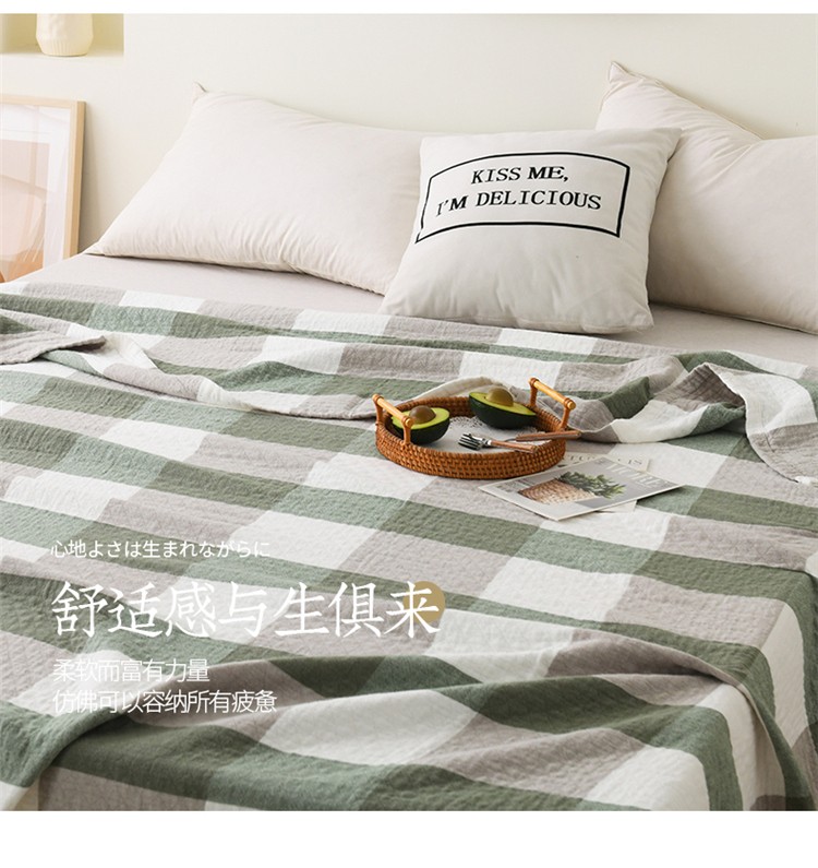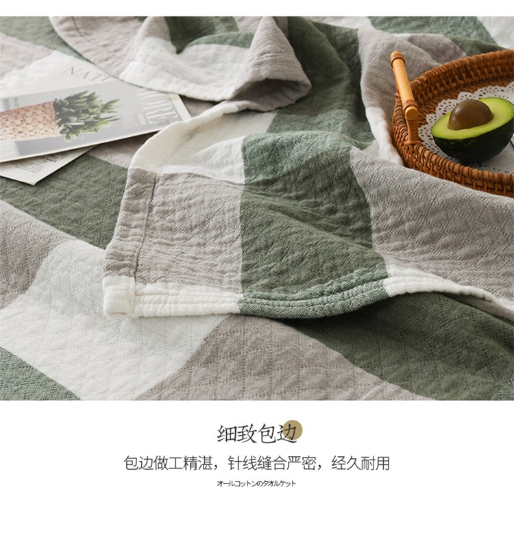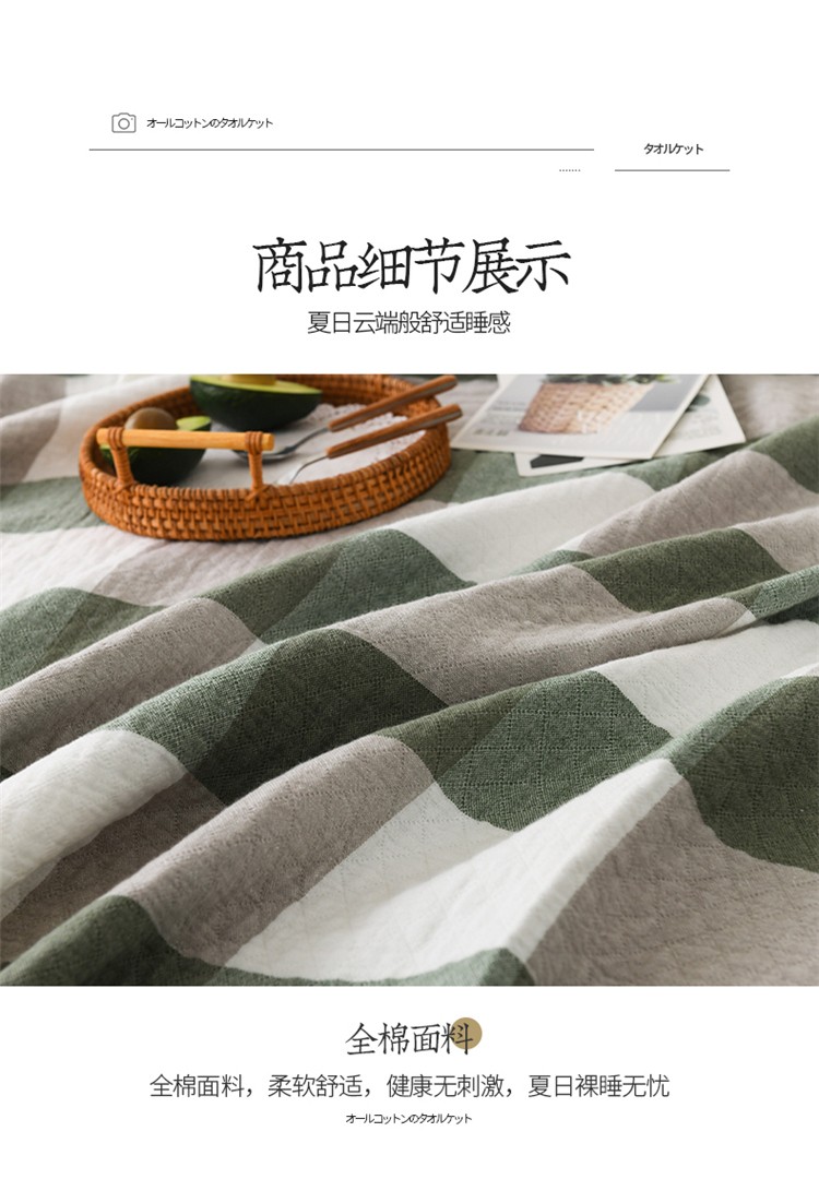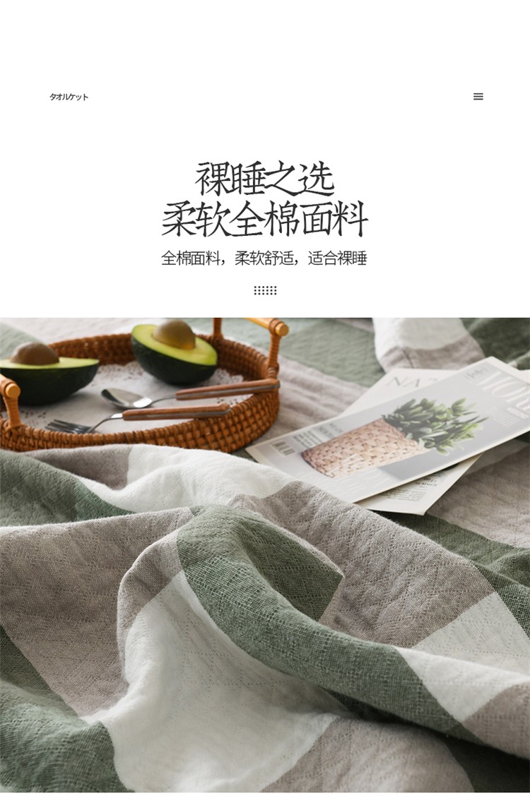 商品名称:雯雨 2022新款无印风纱布毛巾被夏被直播 复古大格绿