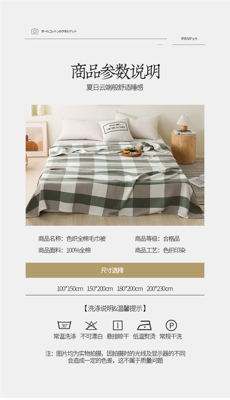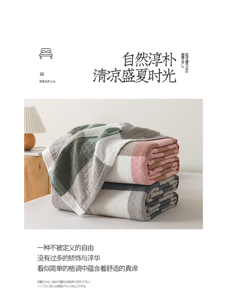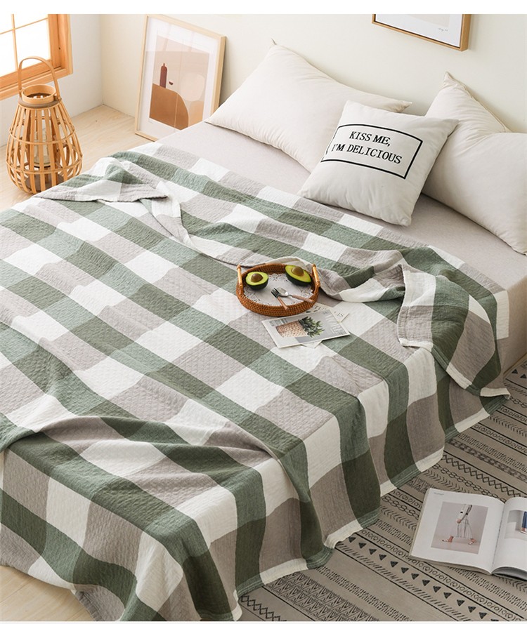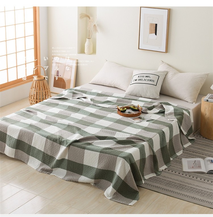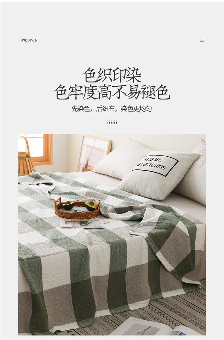 商品名称:雯雨 2022新款无印风纱布毛巾被夏被直播 复古大格绿