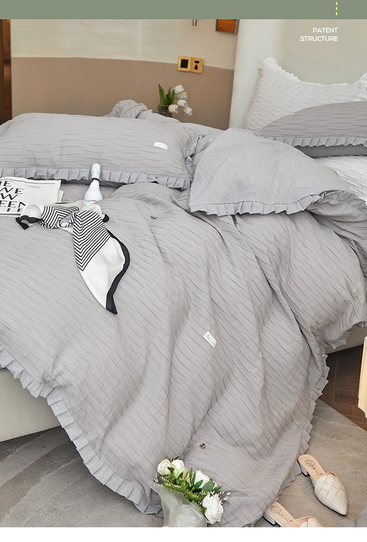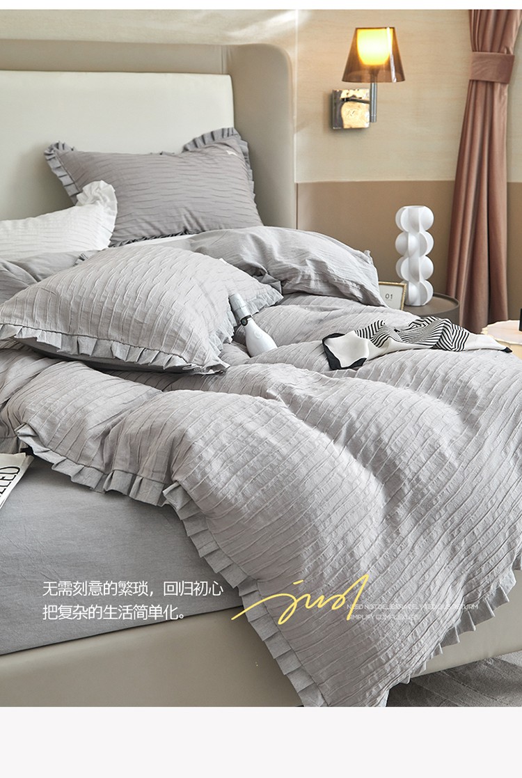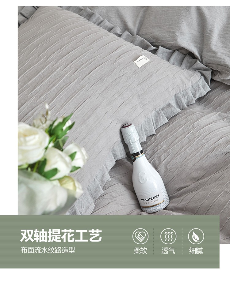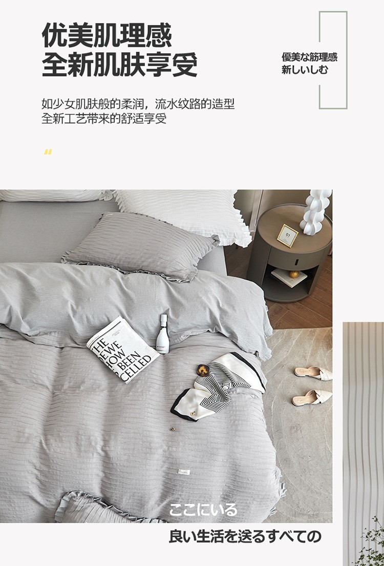 2023名品优仓直播爆款水洗棉四件套水波纹系列蓦然水波纹蒂灰