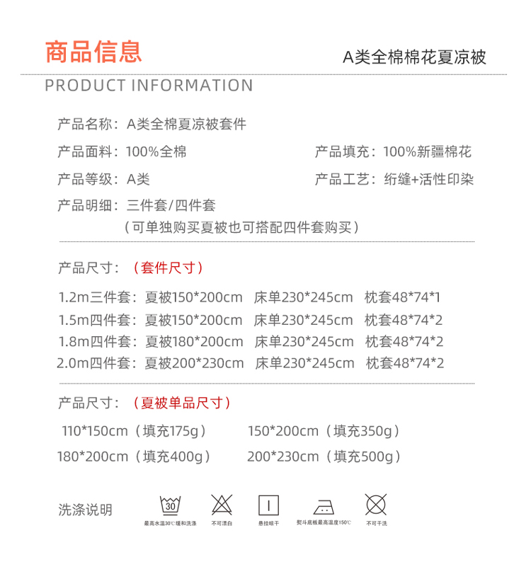 150x200cm单夏被 | ¥62.00 |