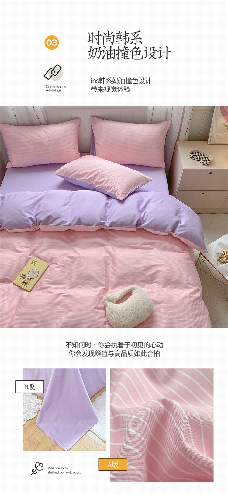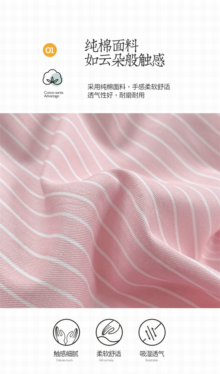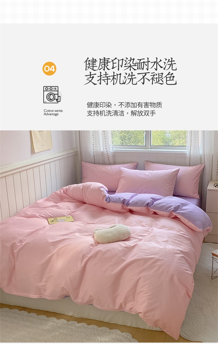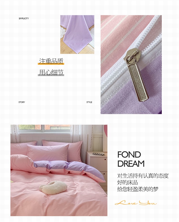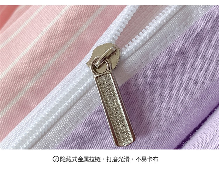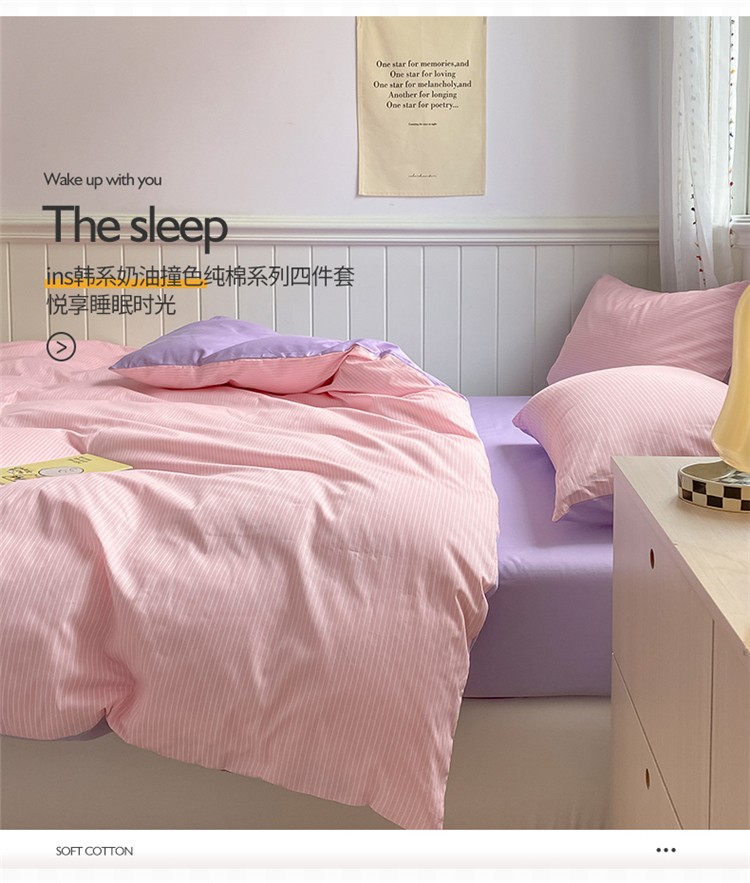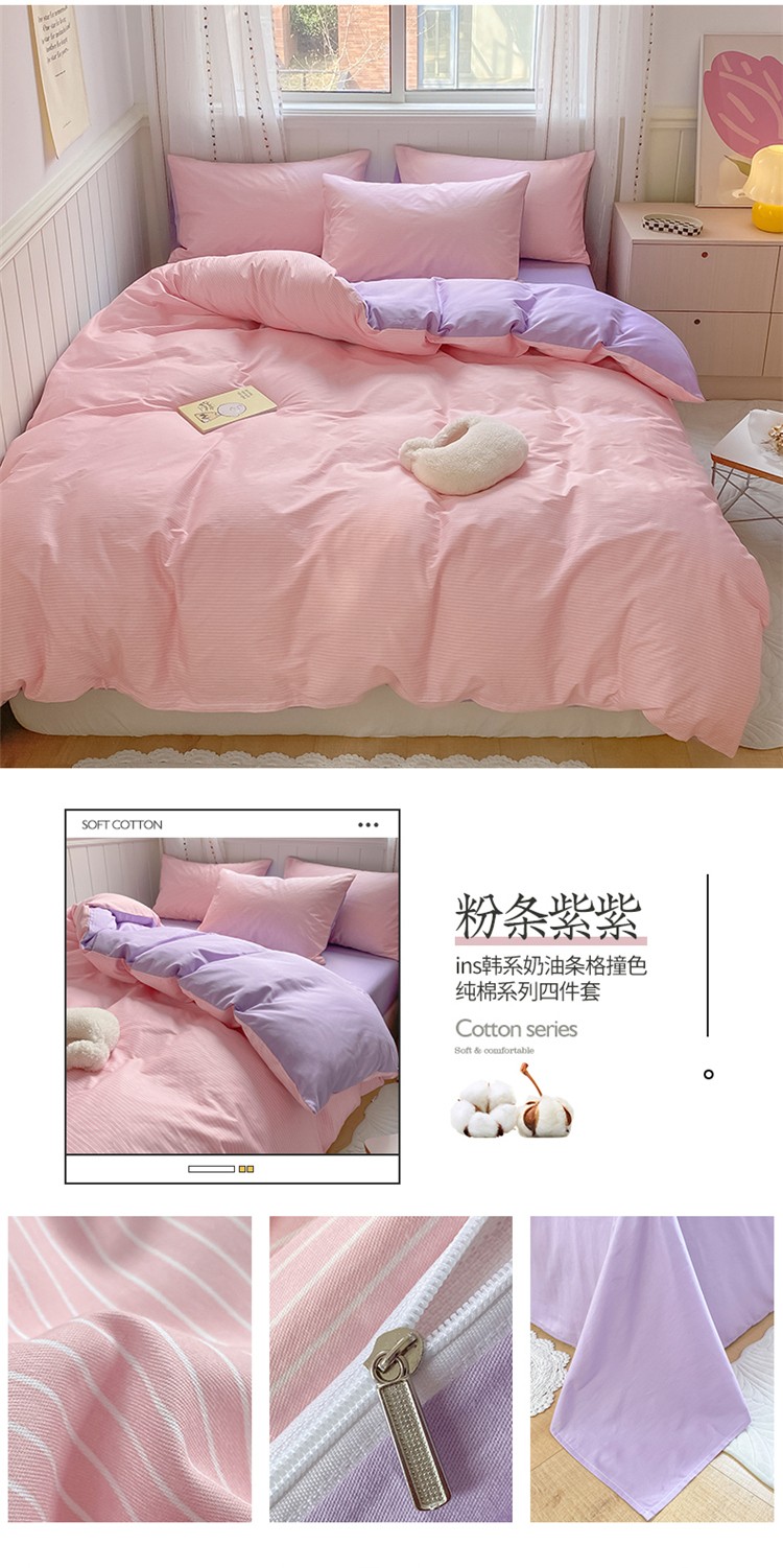 商品名称:桃子家居 2022韩系ins奶油条格撞色纯棉四件套粉条紫紫