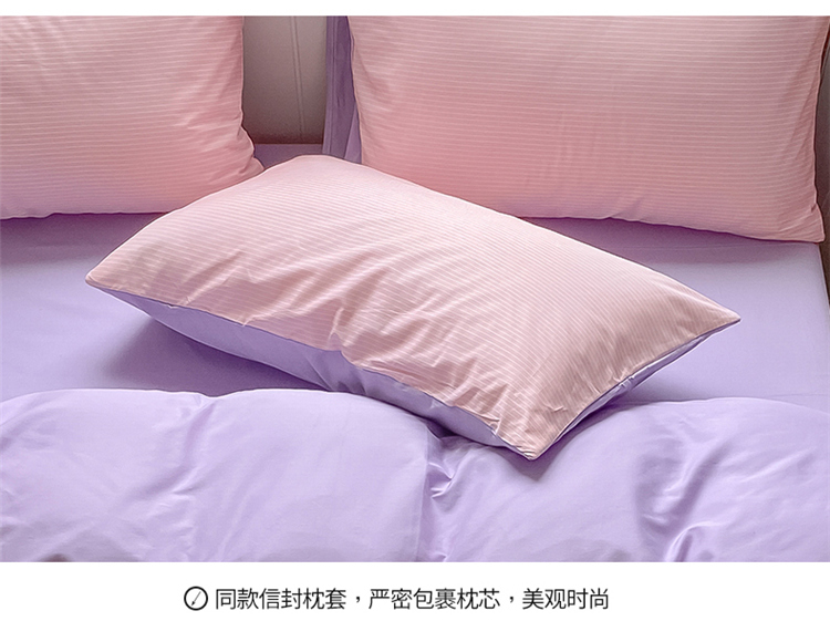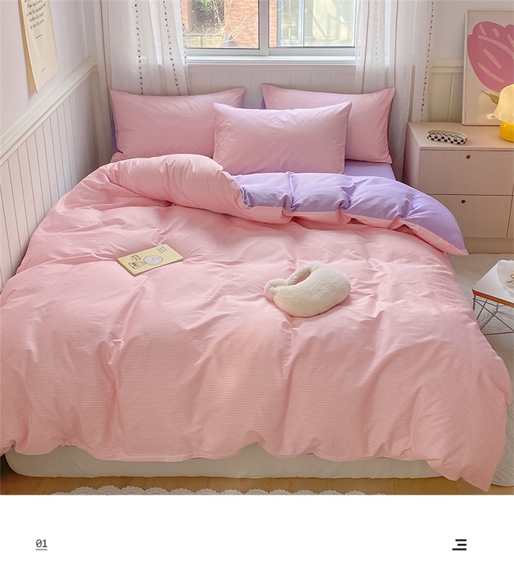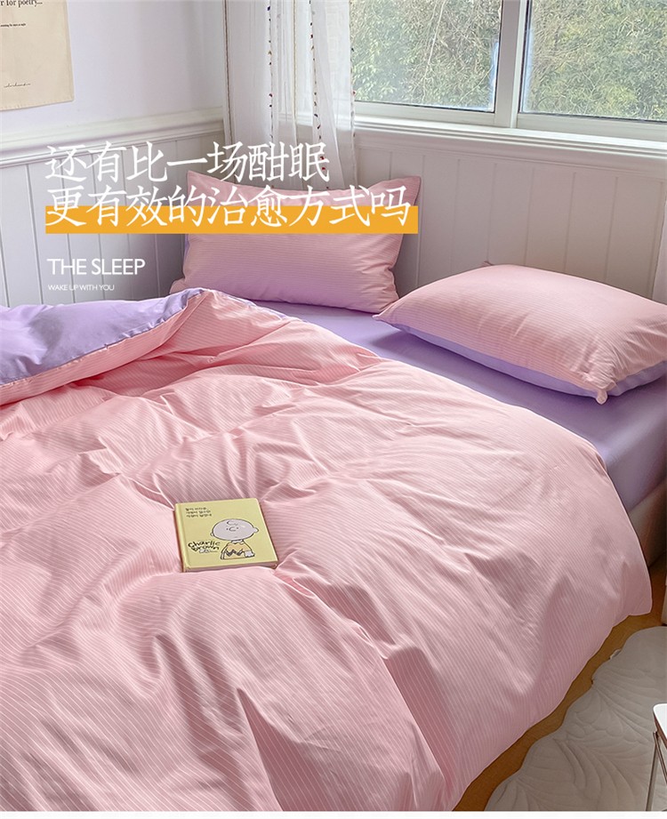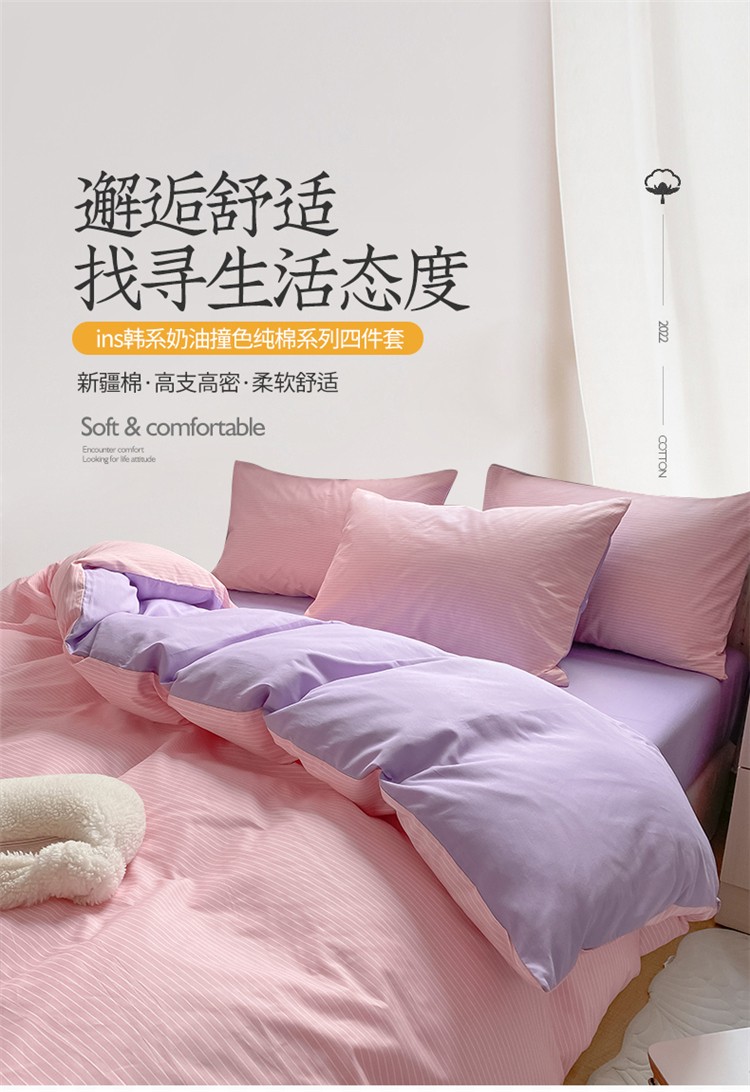 桃子家居 2022韩系ins奶油条格撞色纯棉四件套粉条紫紫