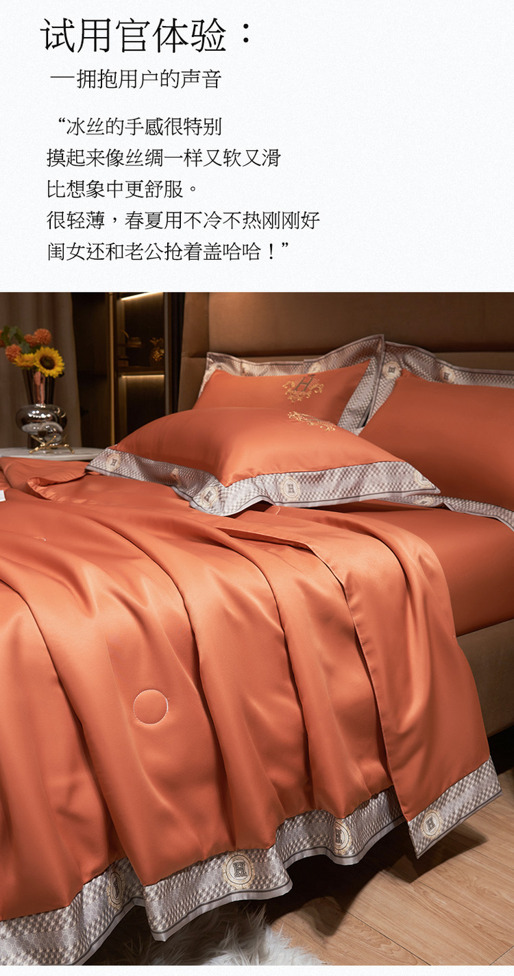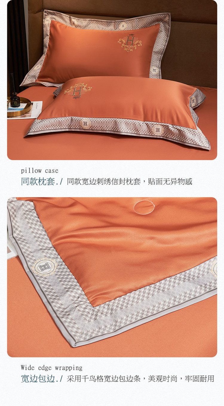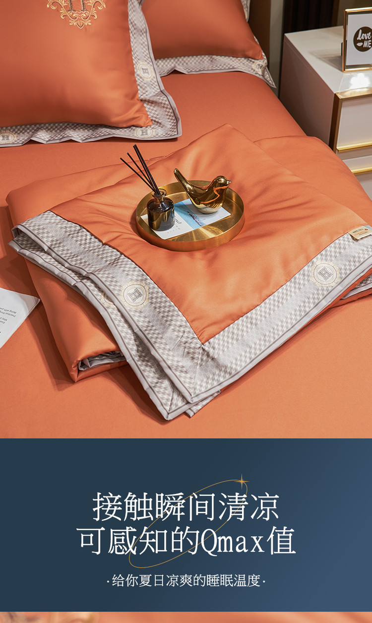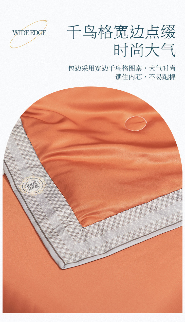 当前位置: 91家纺网 > 商品网购 > 床品套件 > 四件套 > 夏被四件套 > 露梦2025轻奢千鸟格水洗真丝数码印花宽边刺绣夏被四件套格调-秋橘色