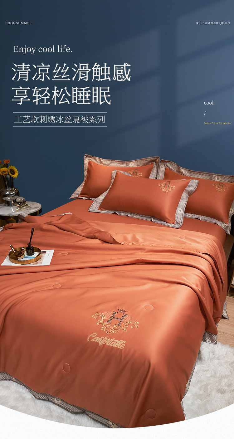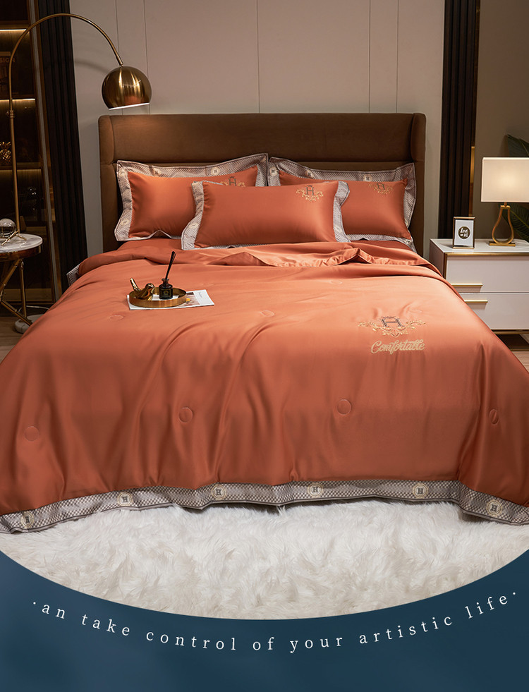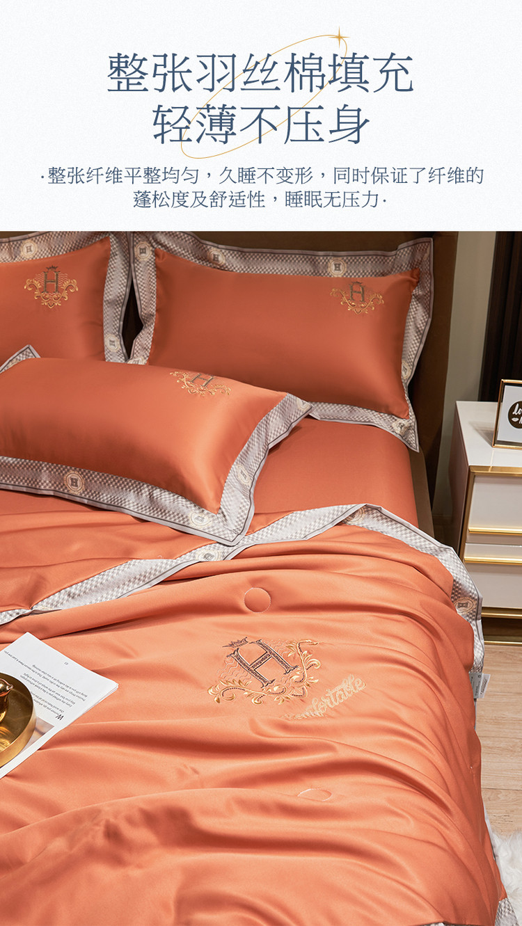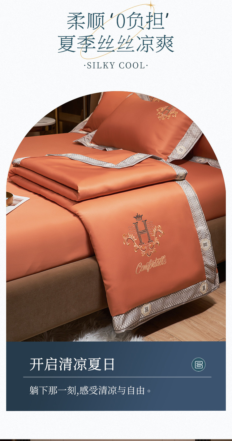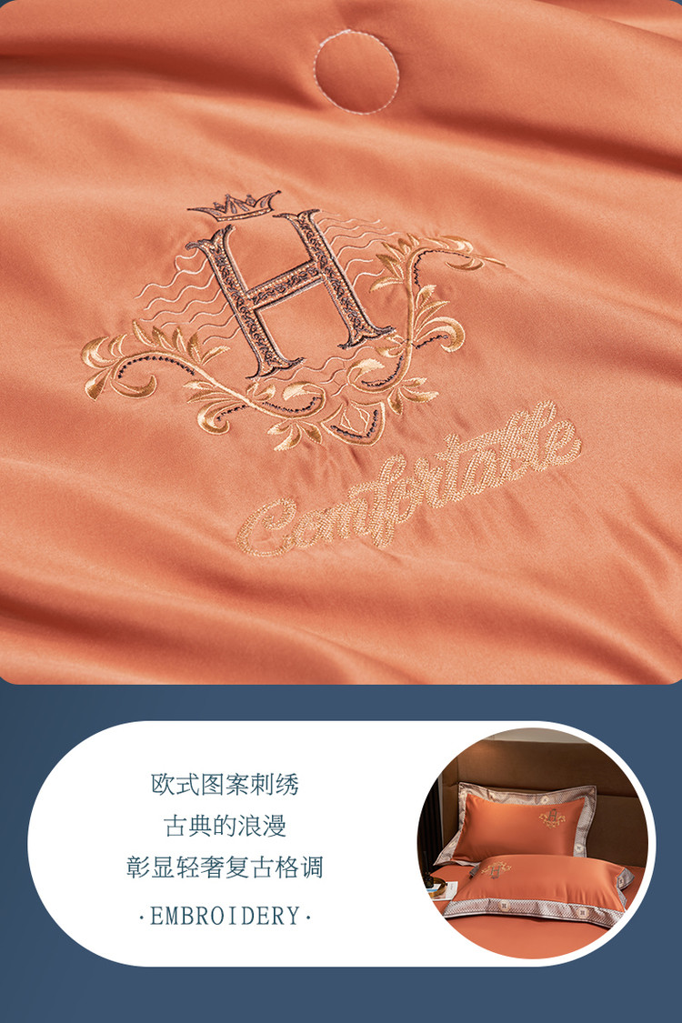 当前位置: 91家纺网 > 商品网购 > 床品套件 > 四件套 > 夏被四件套 > 露梦2025轻奢千鸟格水洗真丝数码印花宽边刺绣夏被四件套格调-秋橘色