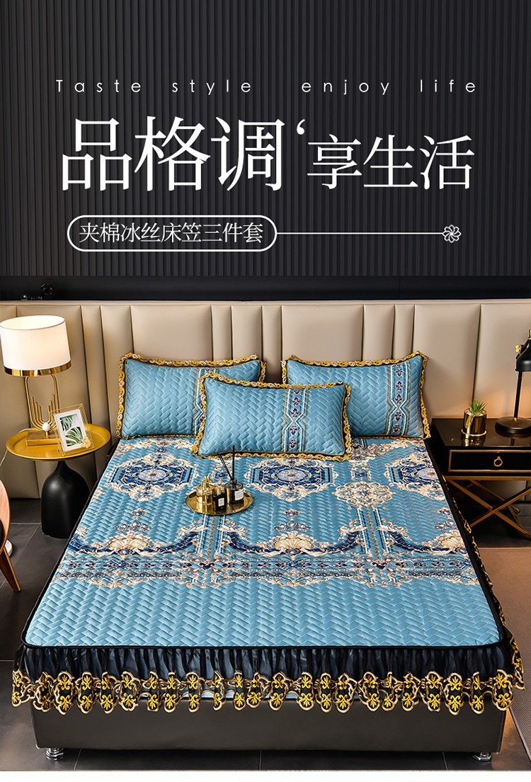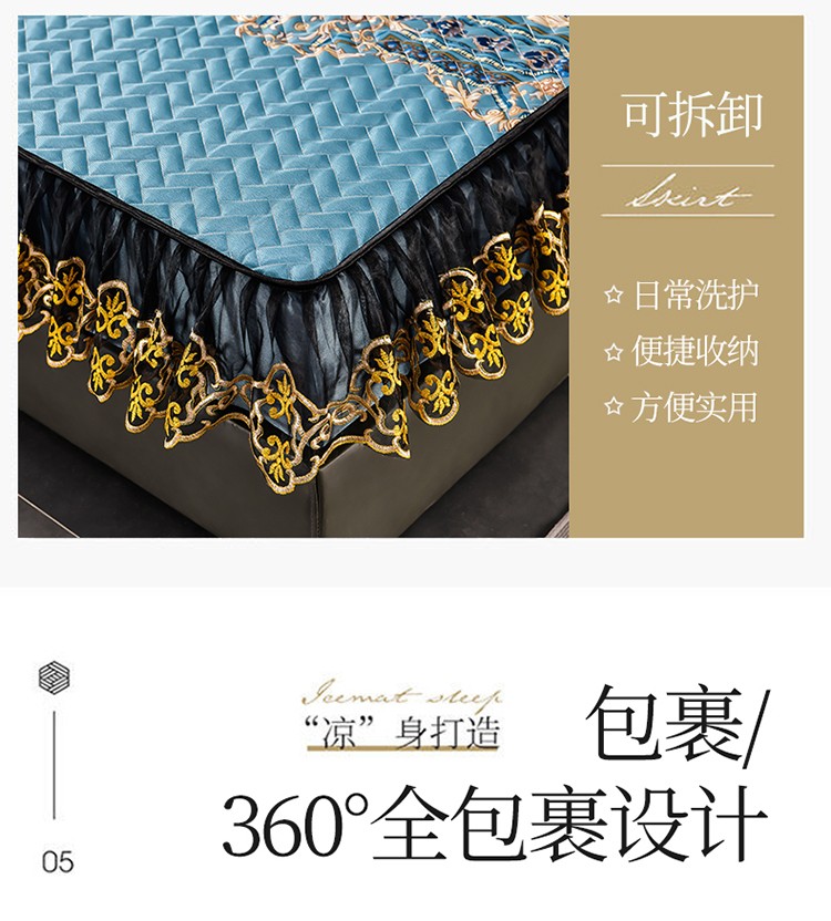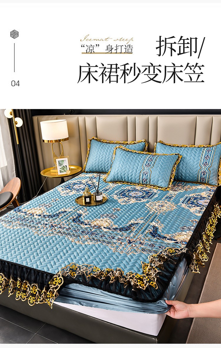 商品名称:迪梦思 2022新款蕾丝花边可拆卸床笠冰丝凉席三件套 夏洛特