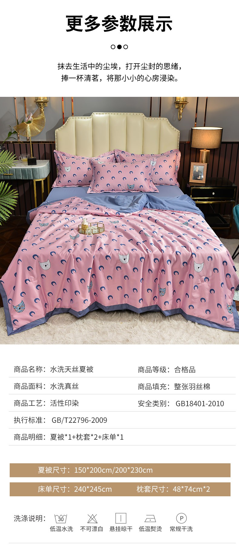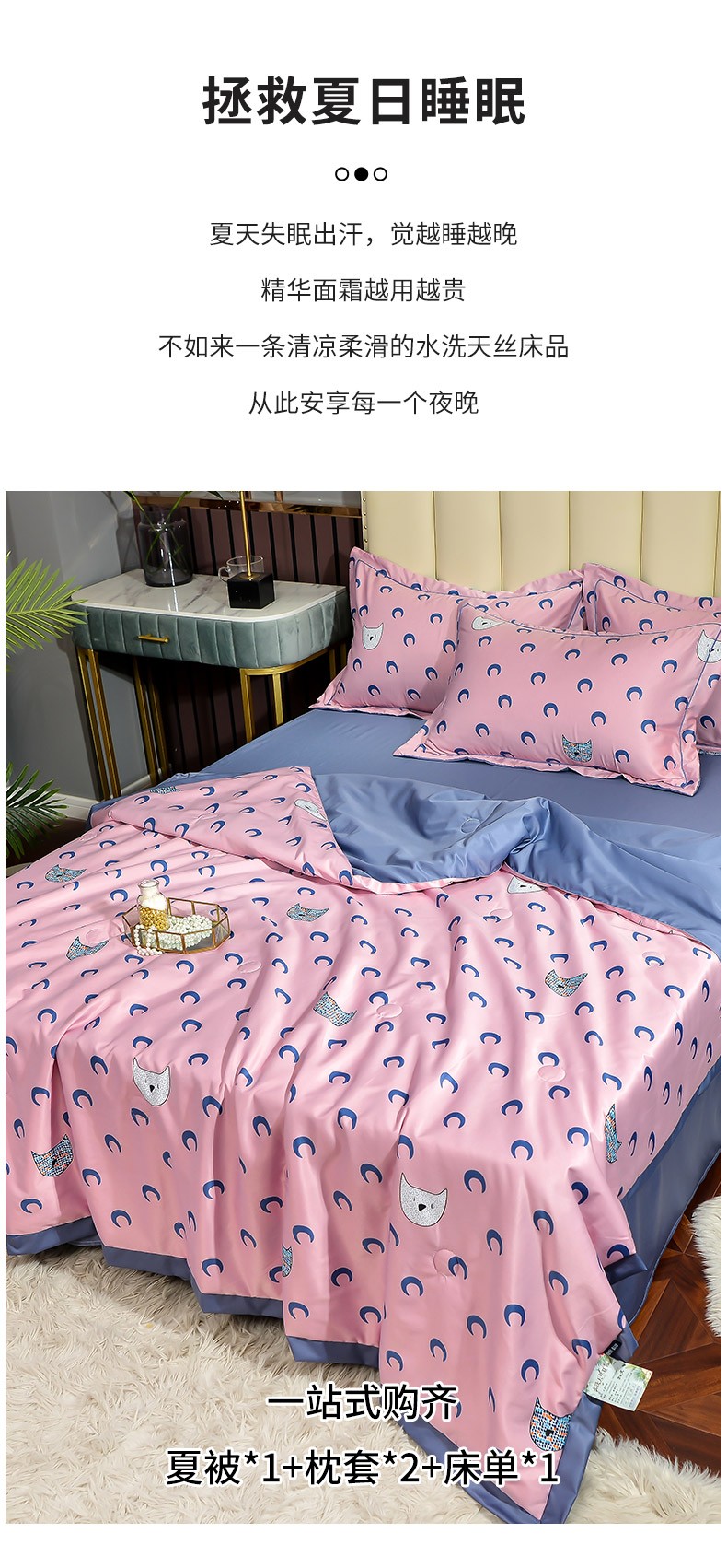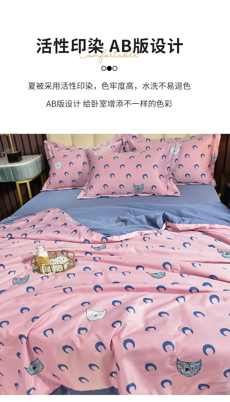 商品名称:梦柏 2022新款水洗天丝夏被四件套 月亮猫