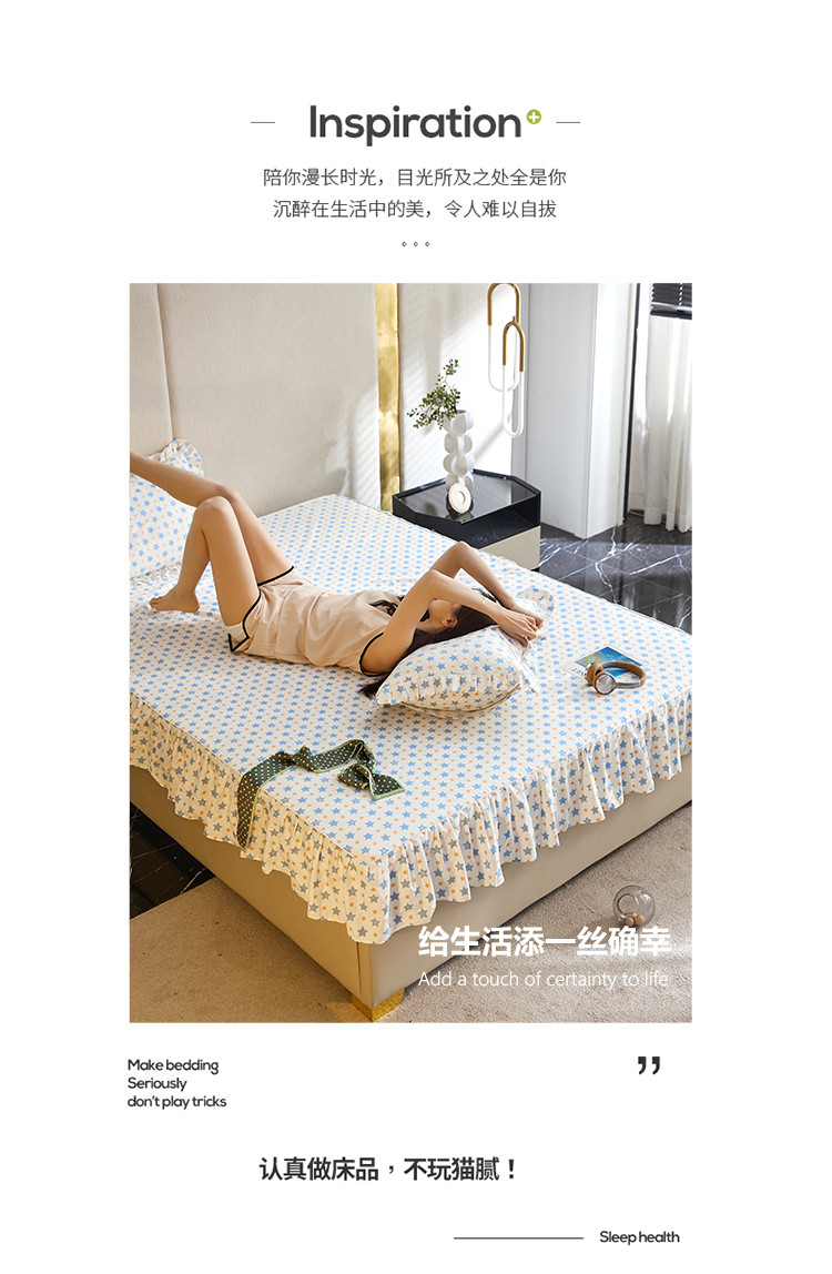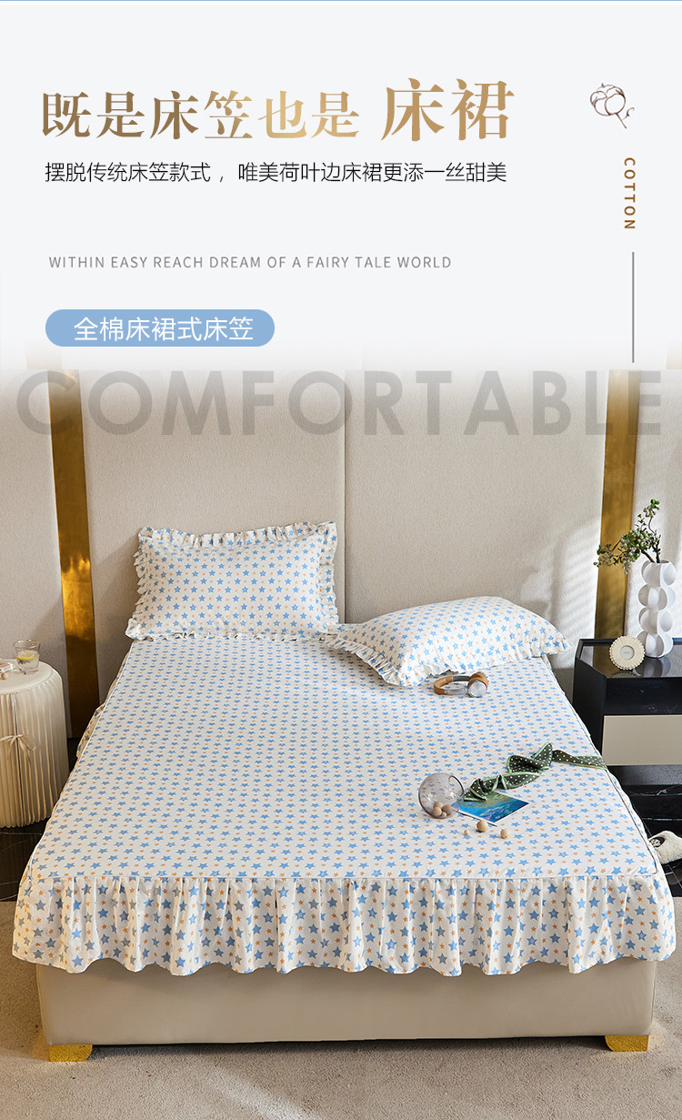 铭动家纺 2023新款纯棉单层花边床笠 星星点点
