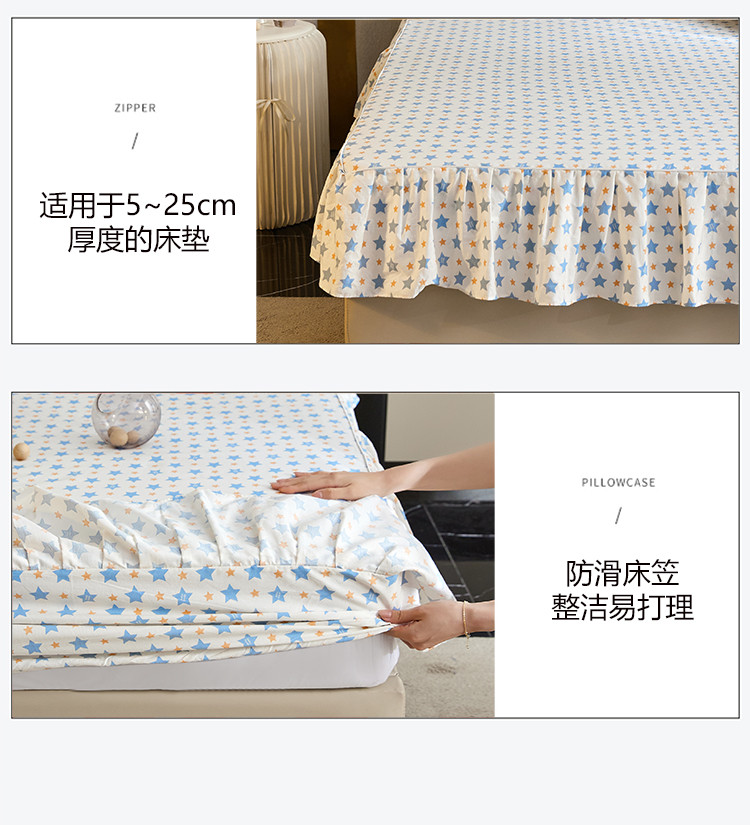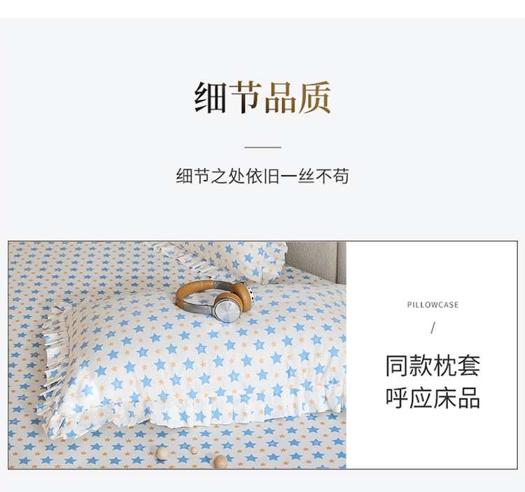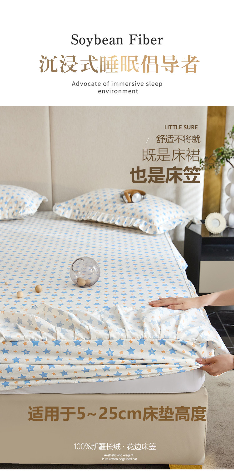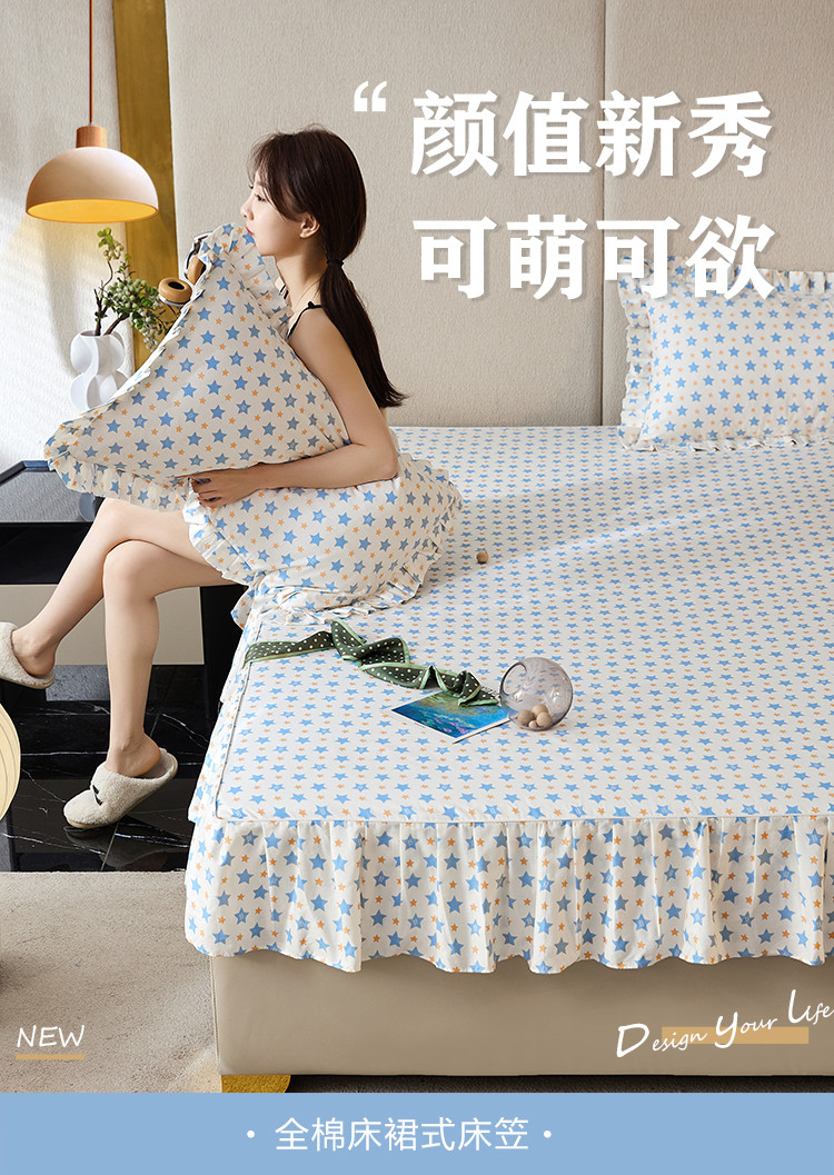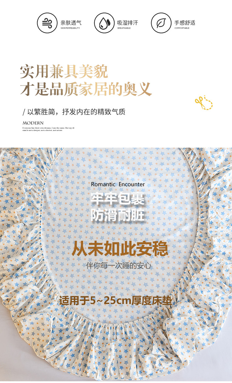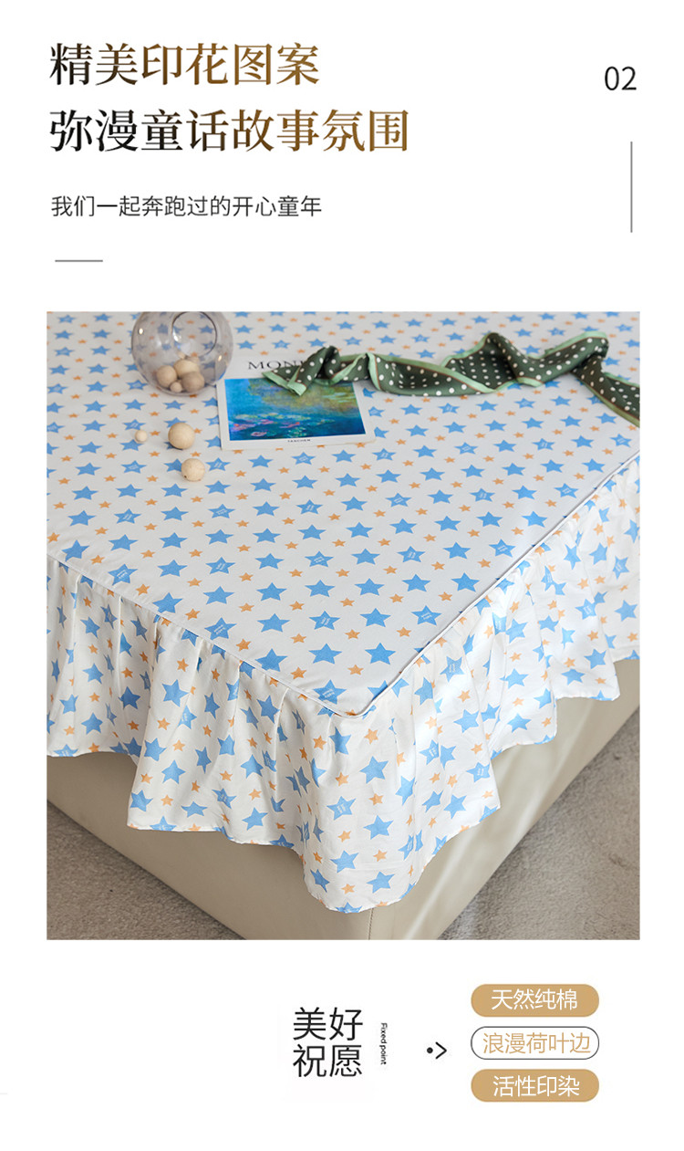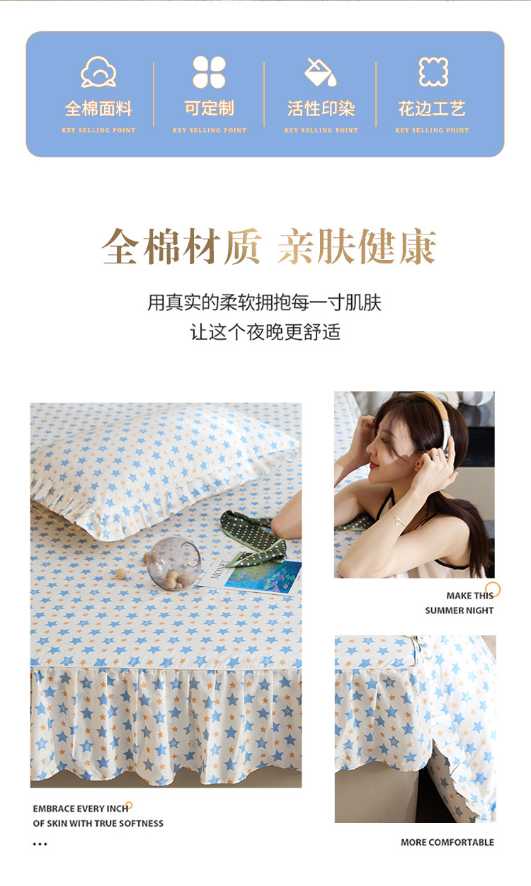商品名称:铭动家纺 2023新款纯棉单层花边床笠 星星点点