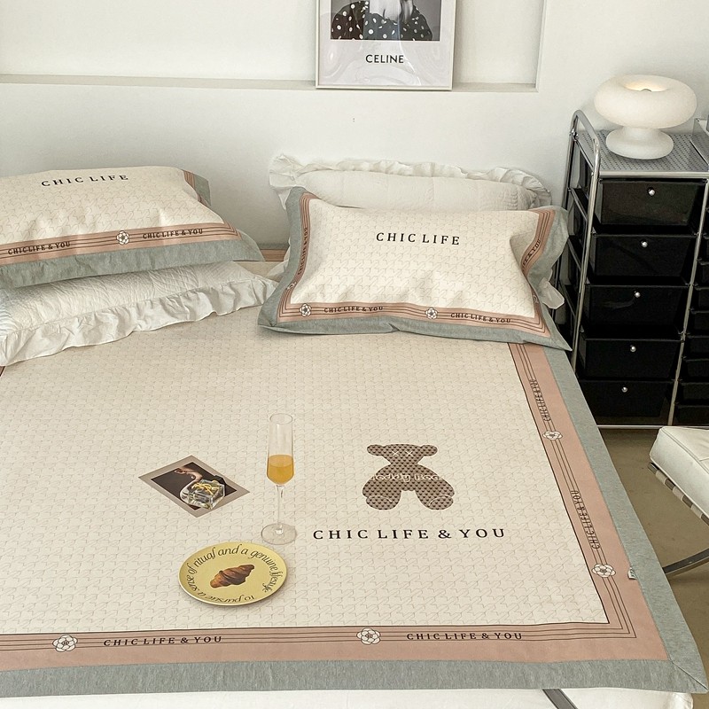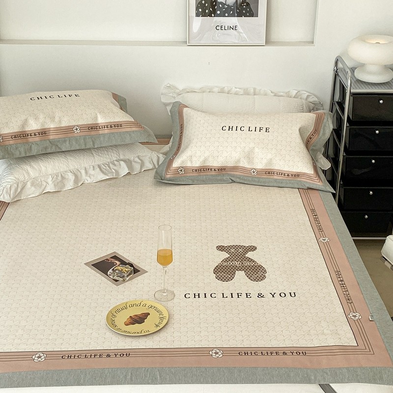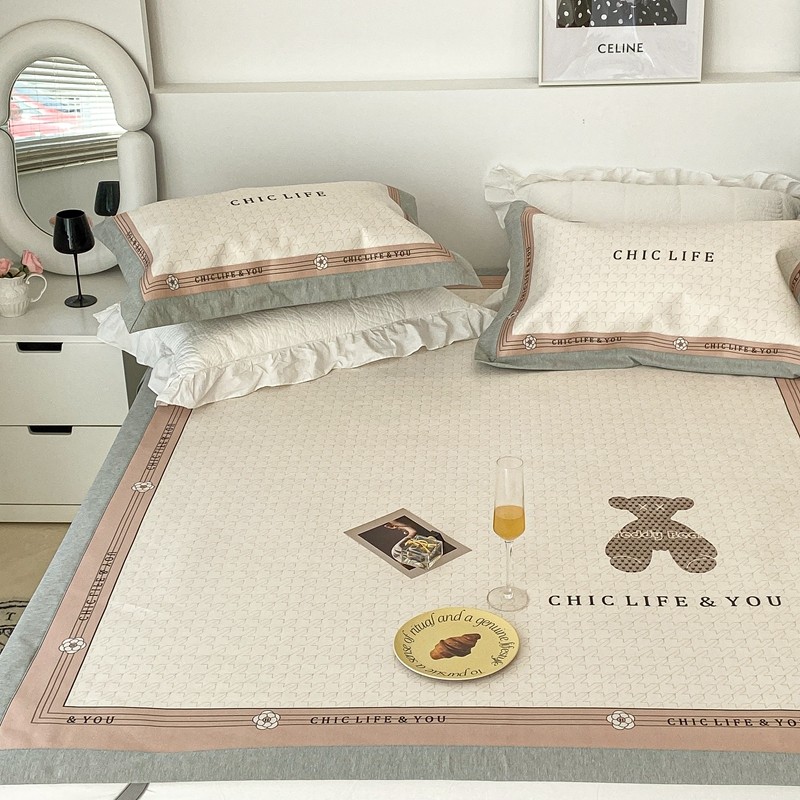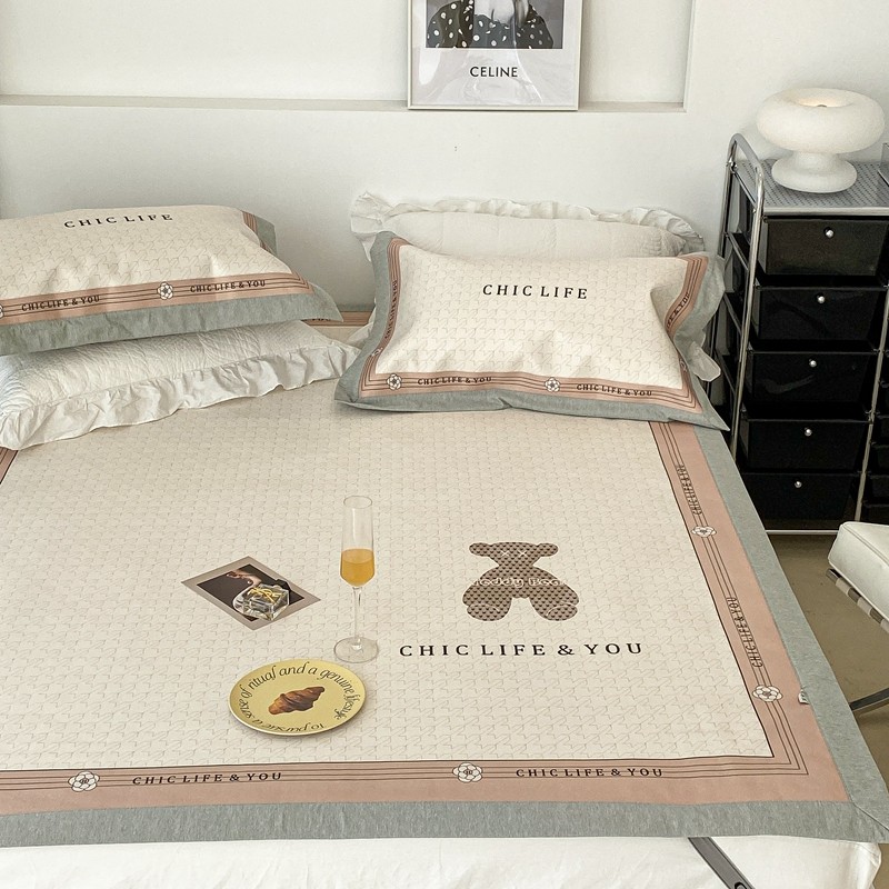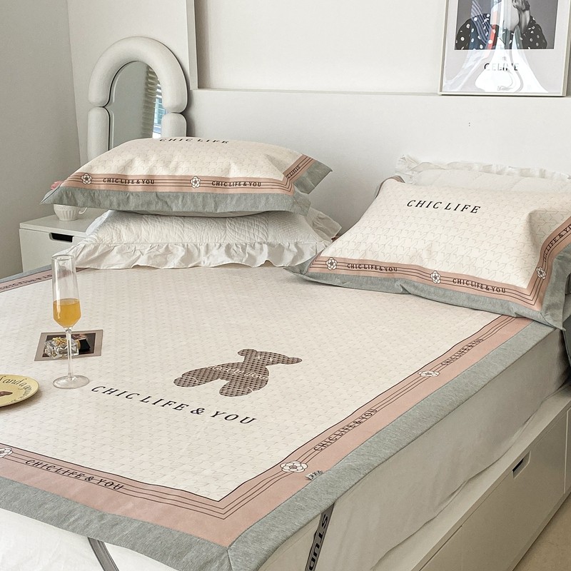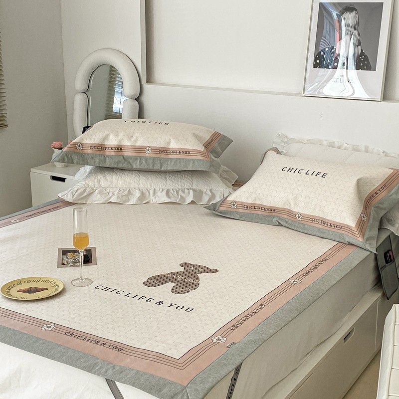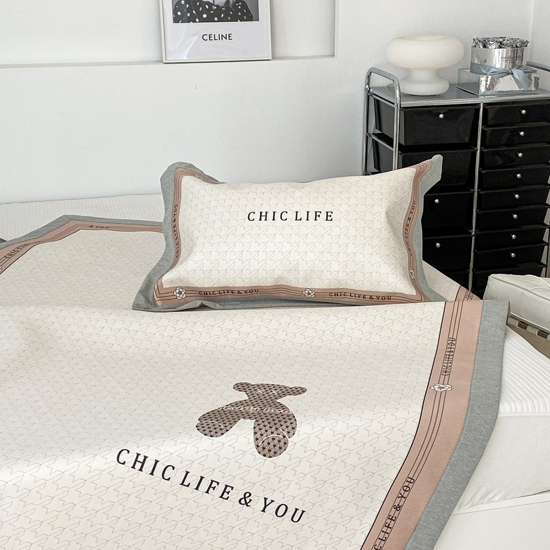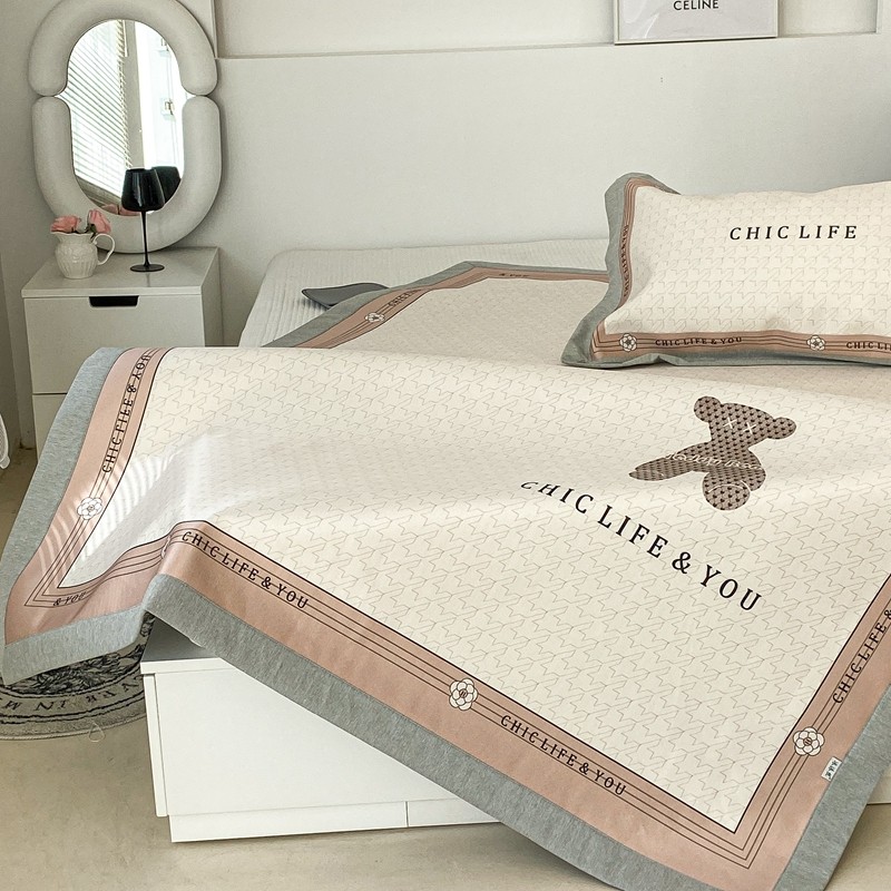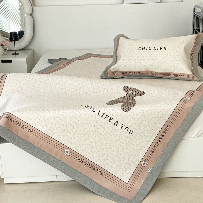 昔可 2022新款大版数码水洗冰沐丝凉席 千鸟格纹熊