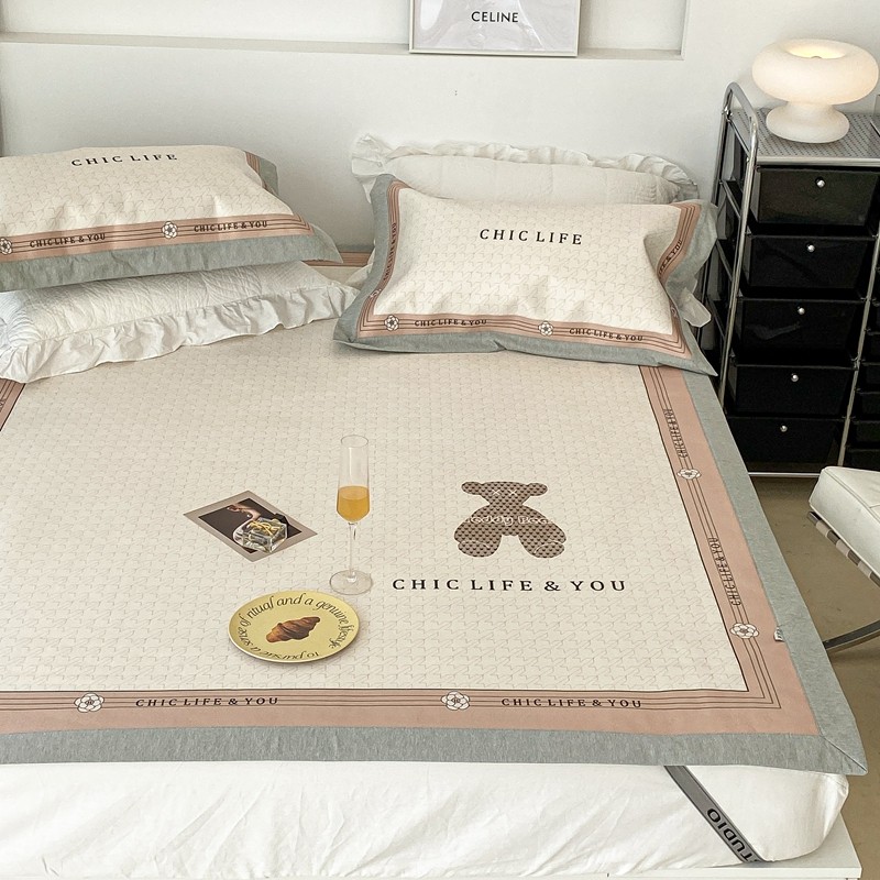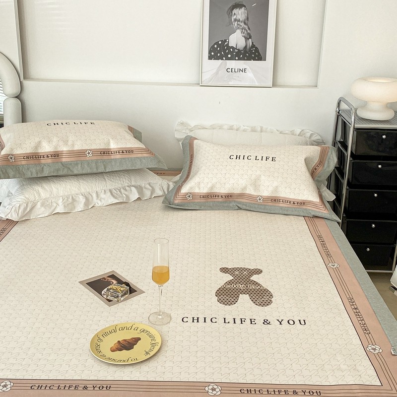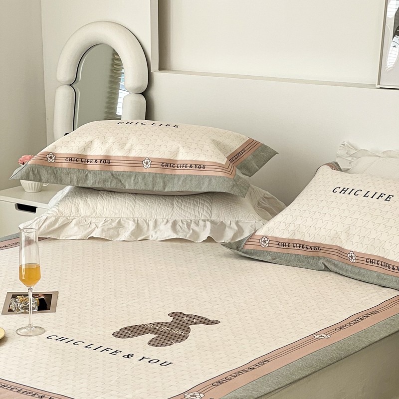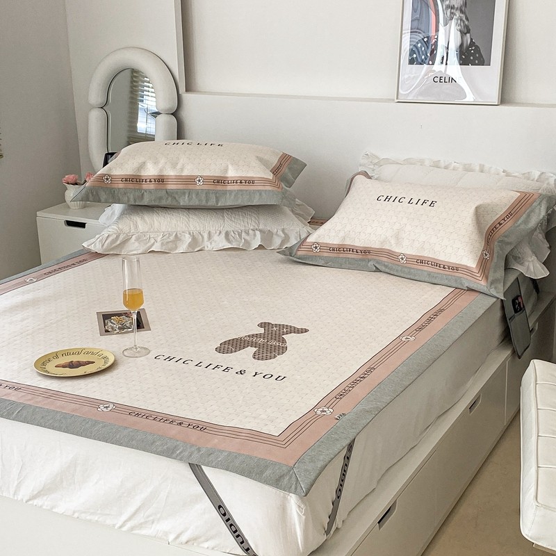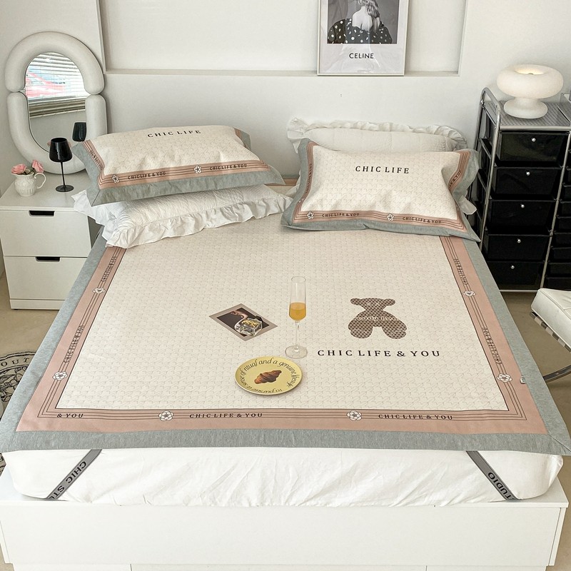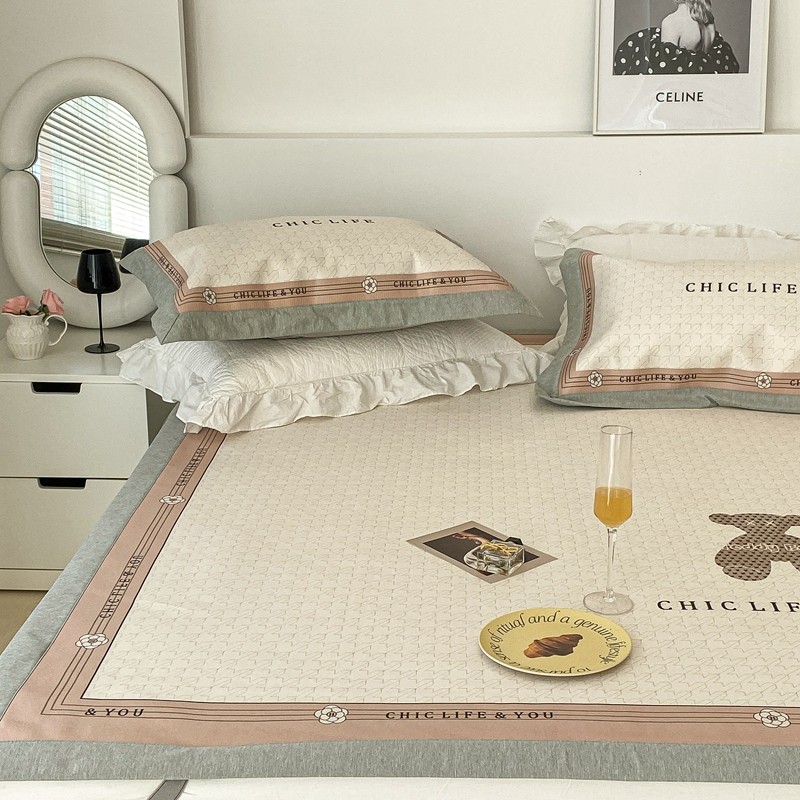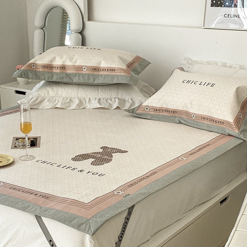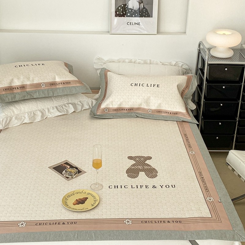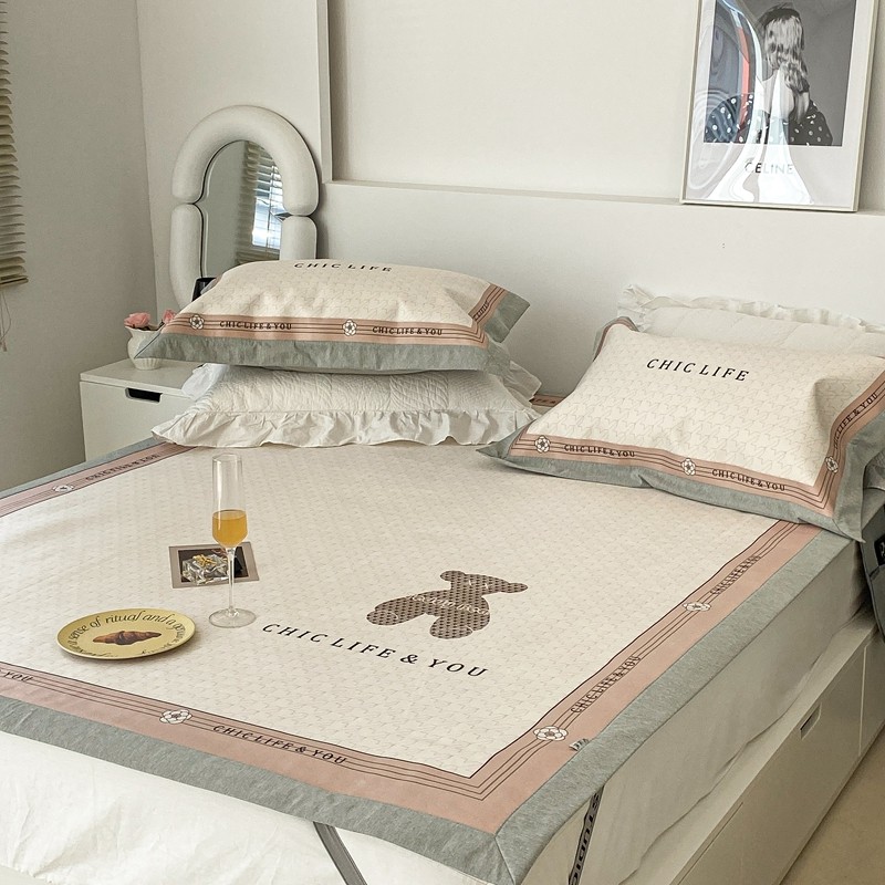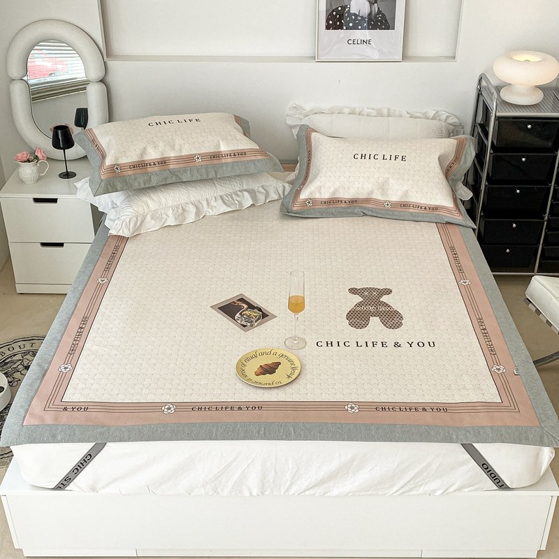 昔可 2022新款大版数码水洗冰沐丝凉席 千鸟格纹熊