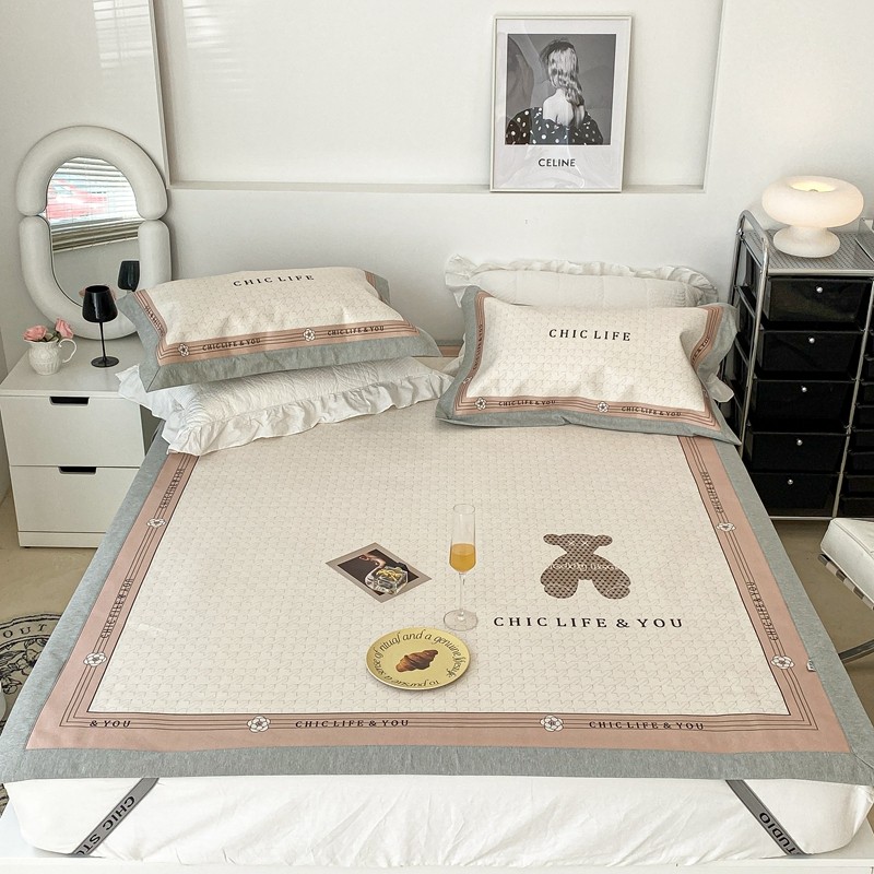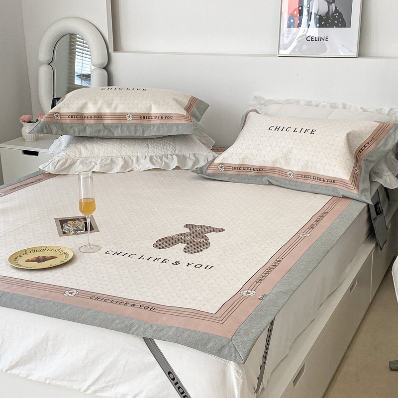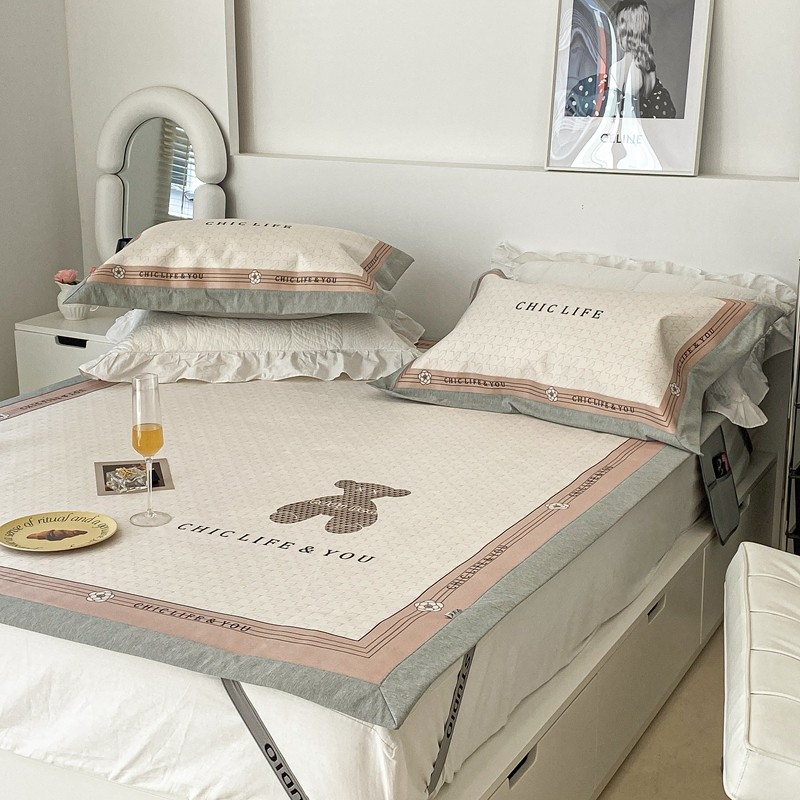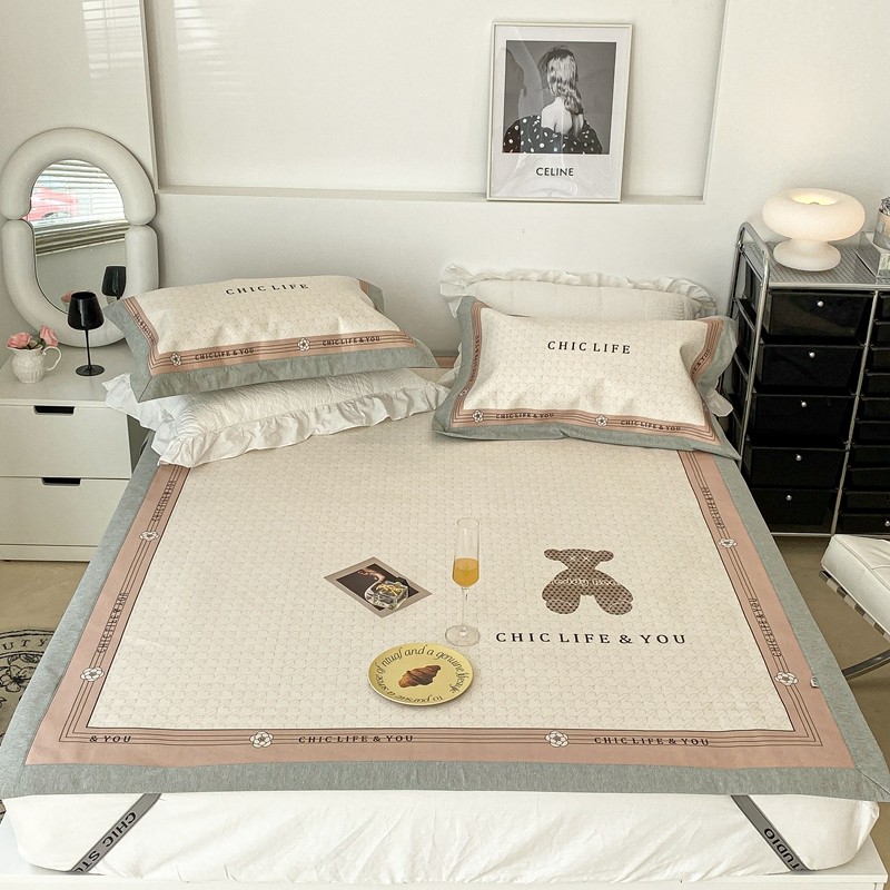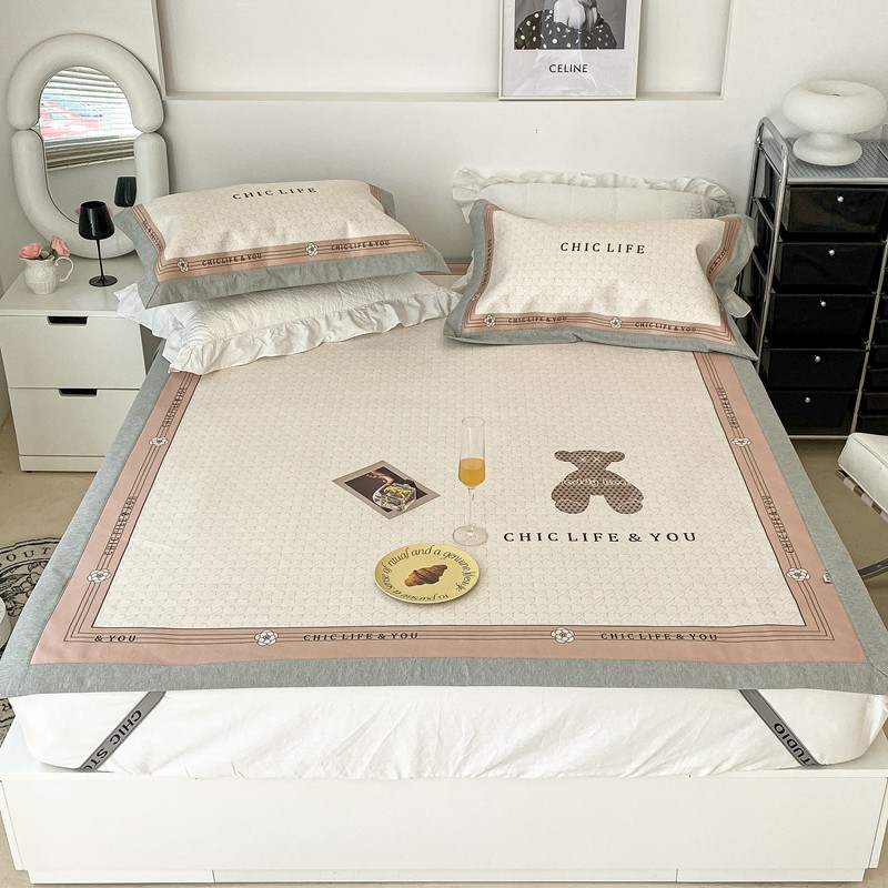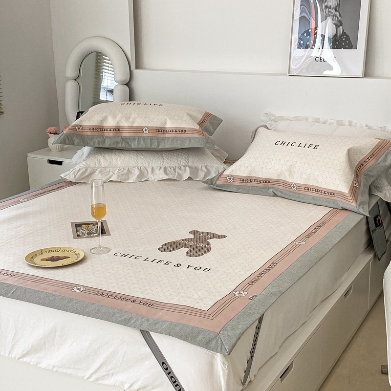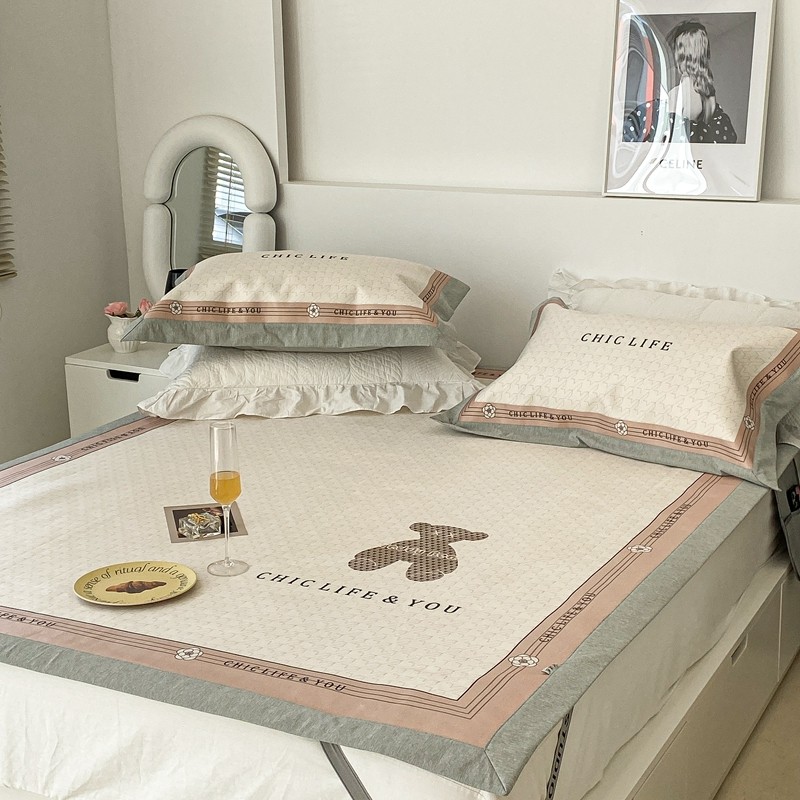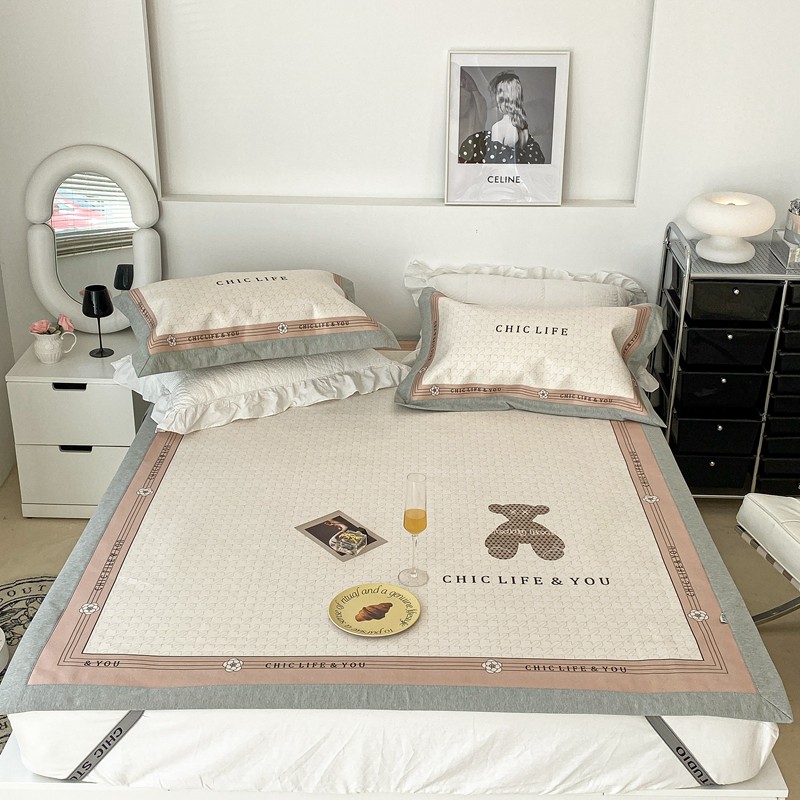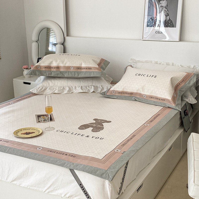 昔可 2022新款大版数码水洗冰沐丝凉席 千鸟格纹熊