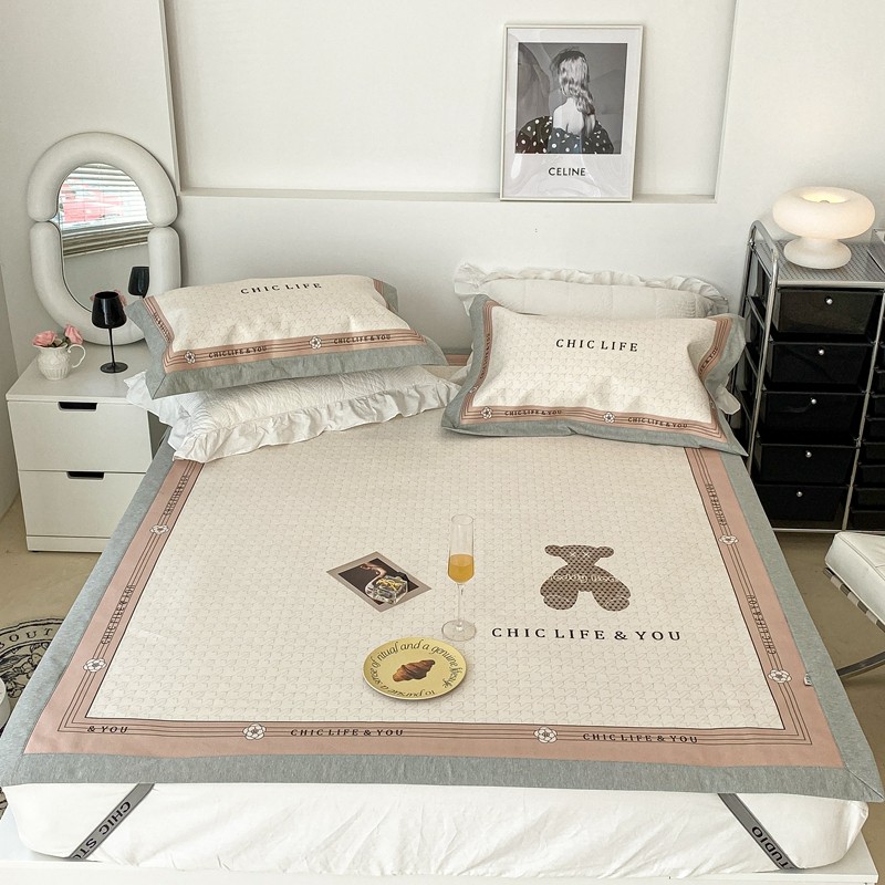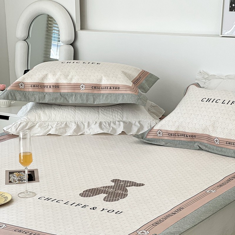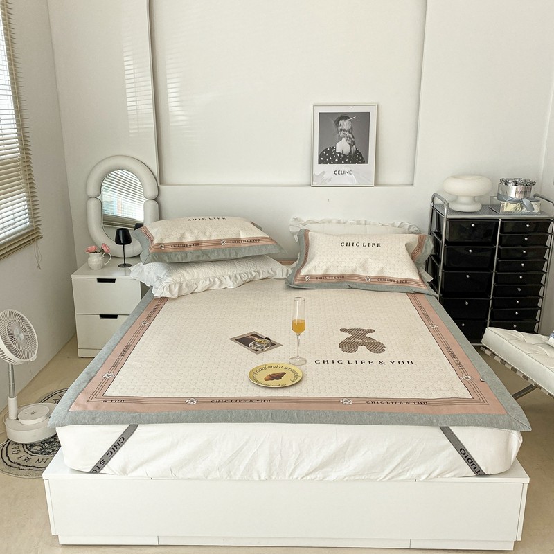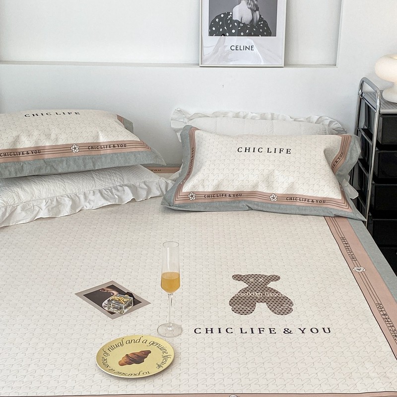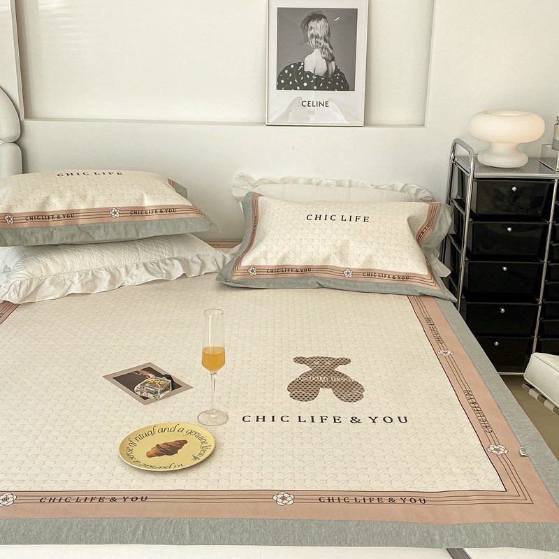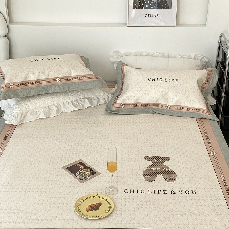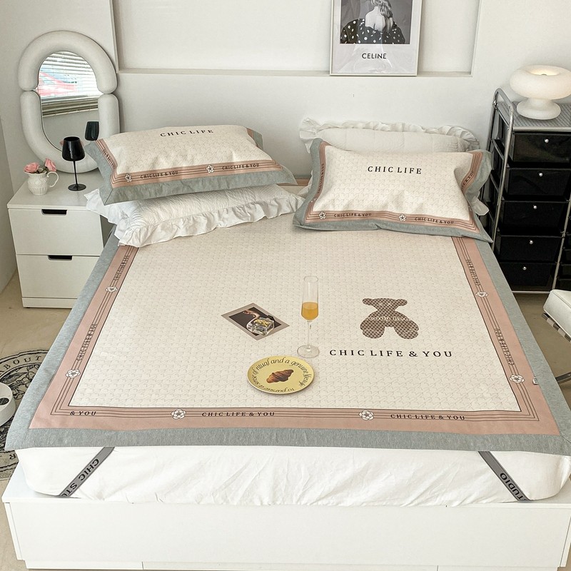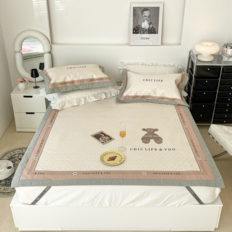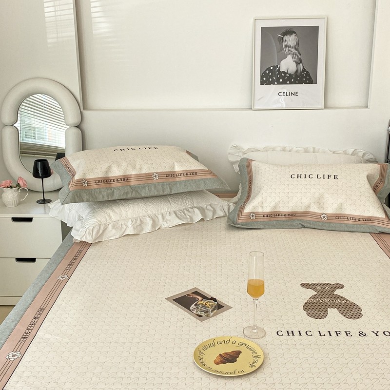 昔可 2022新款大版数码水洗冰沐丝凉席 千鸟格纹熊