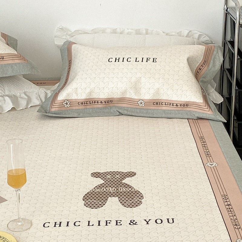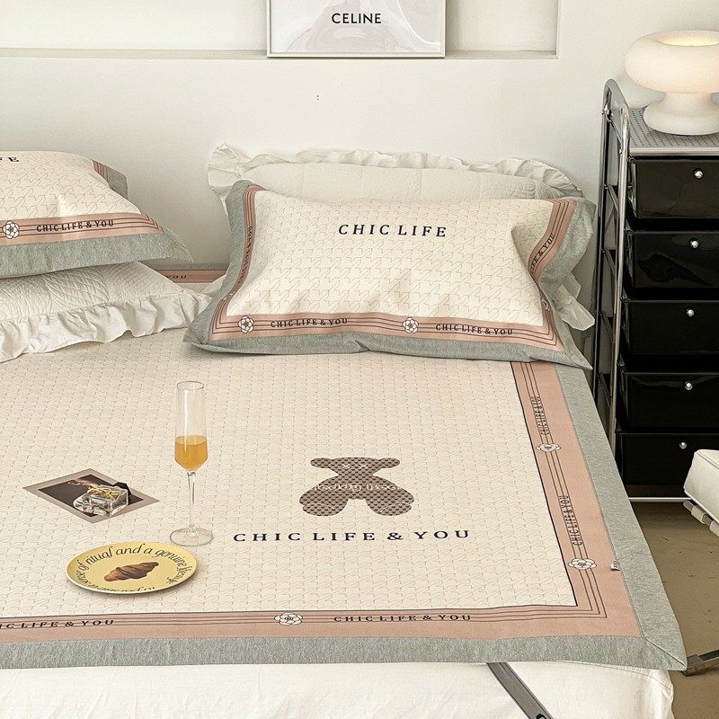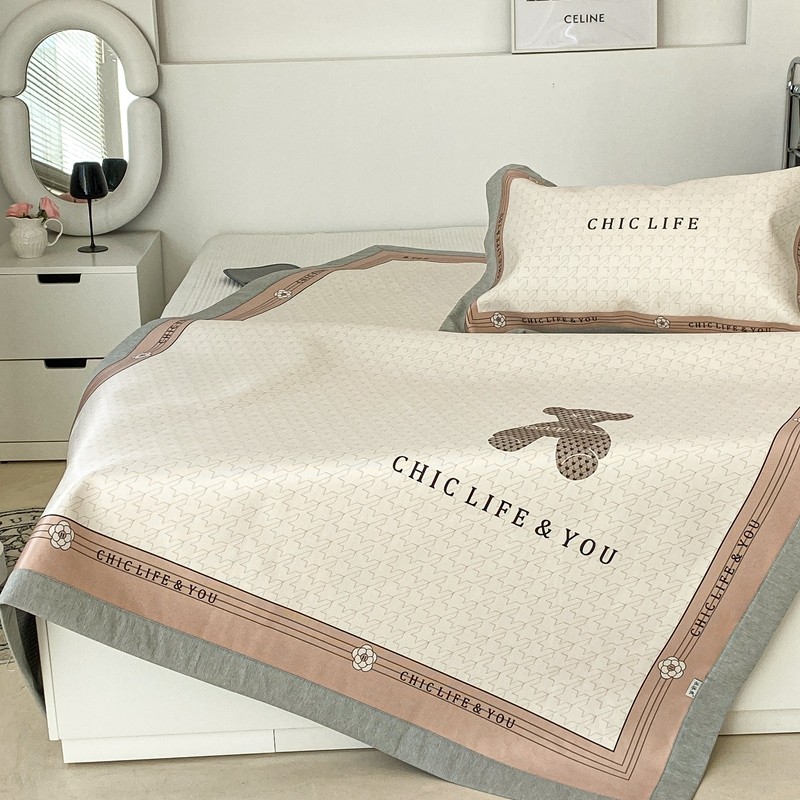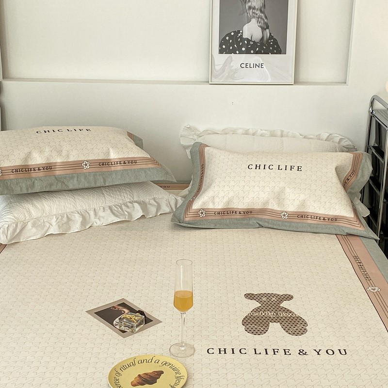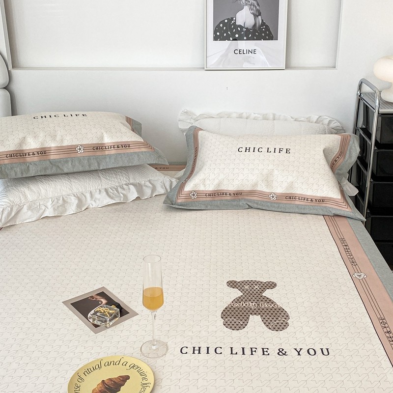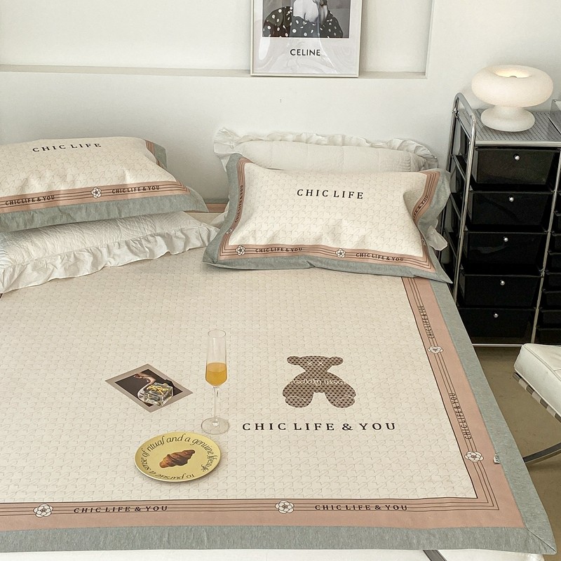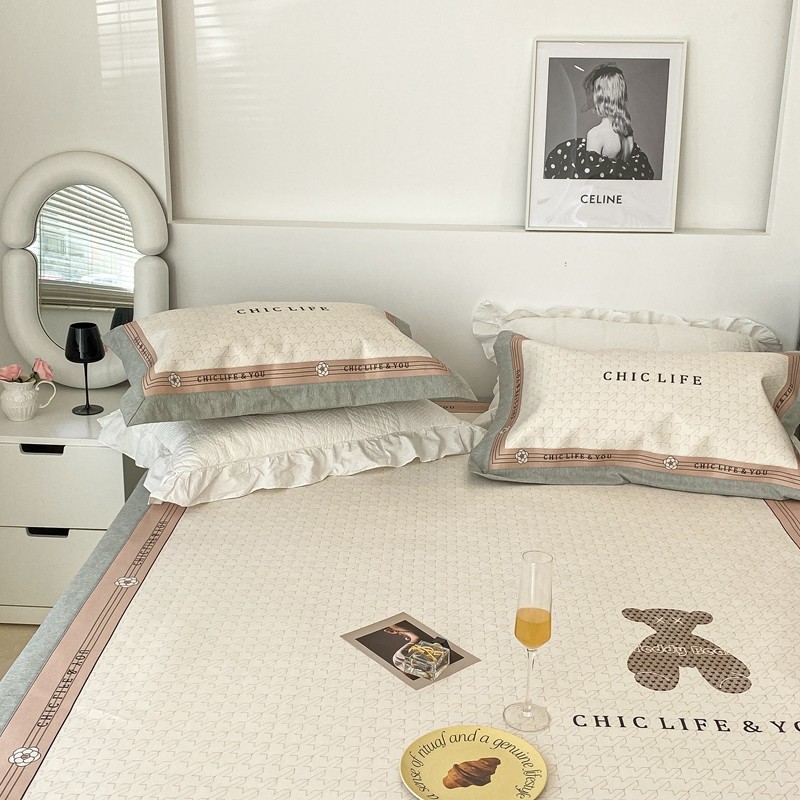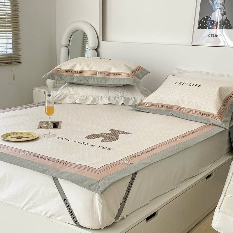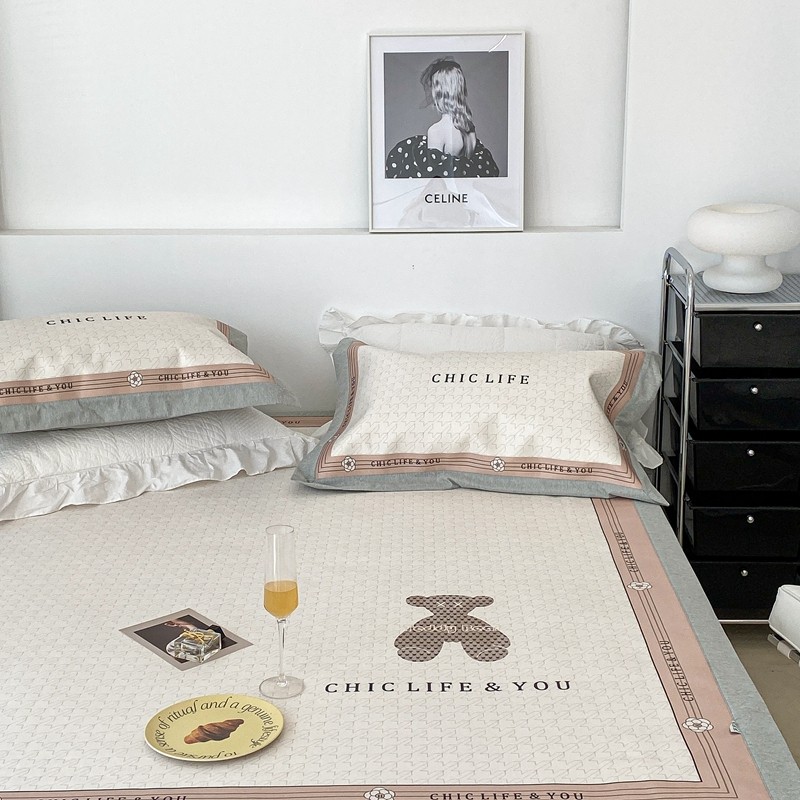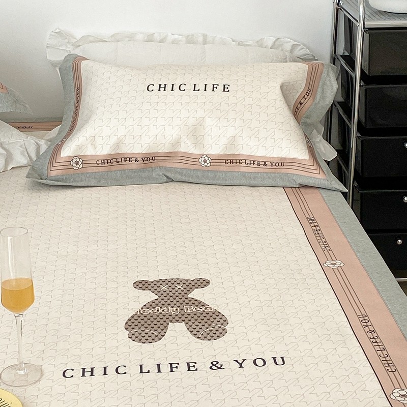 昔可 2022新款大版数码水洗冰沐丝凉席 千鸟格纹熊