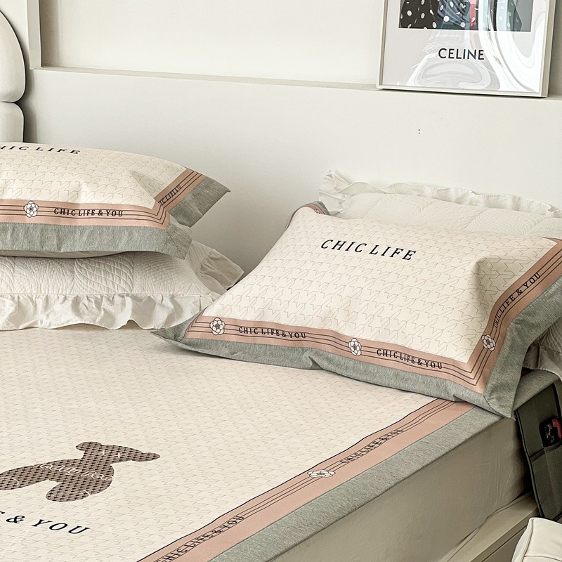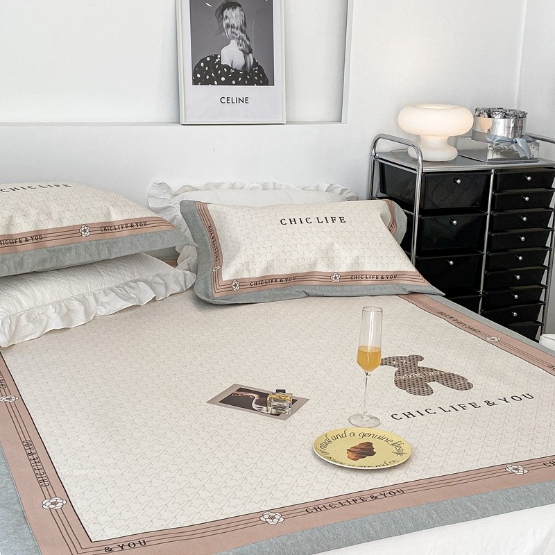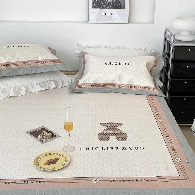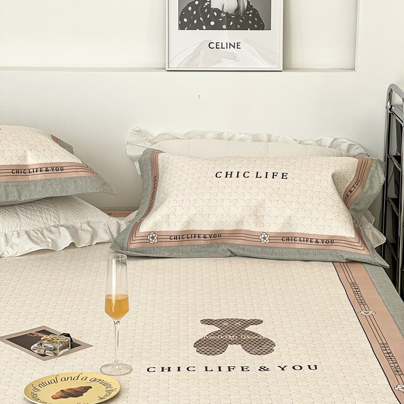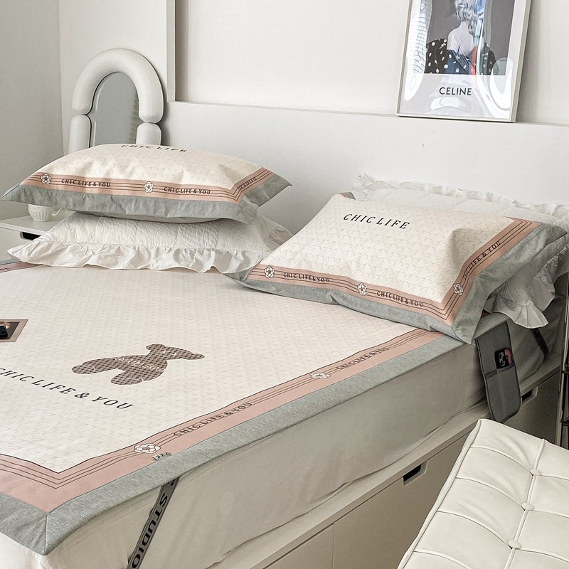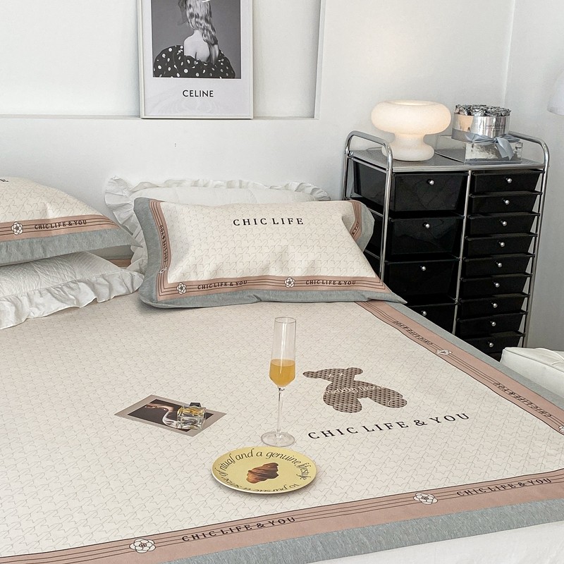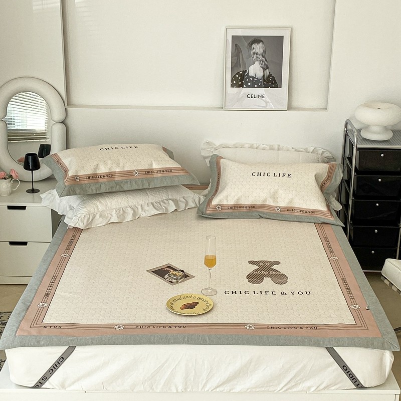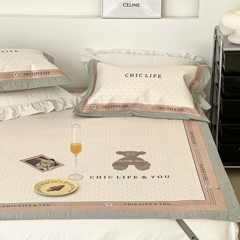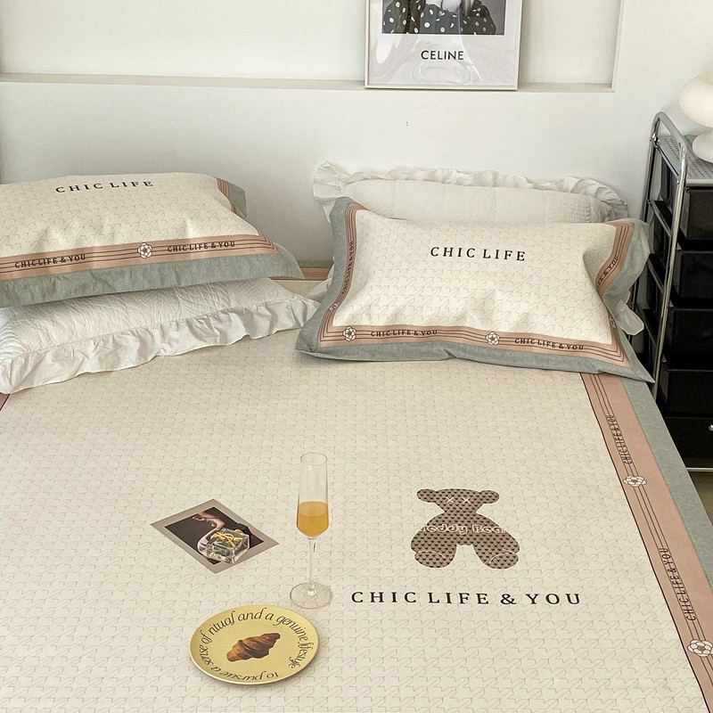 昔可 2022新款大版数码水洗冰沐丝凉席 千鸟格纹熊