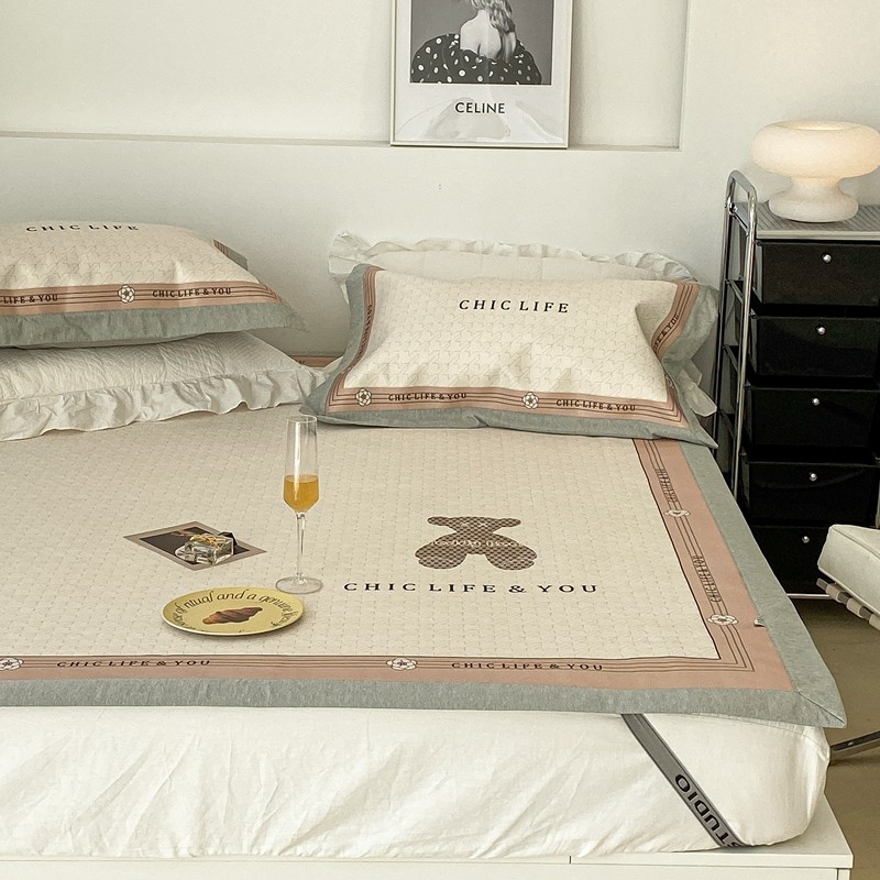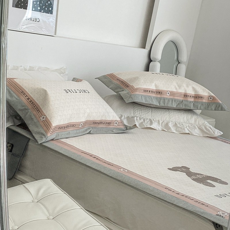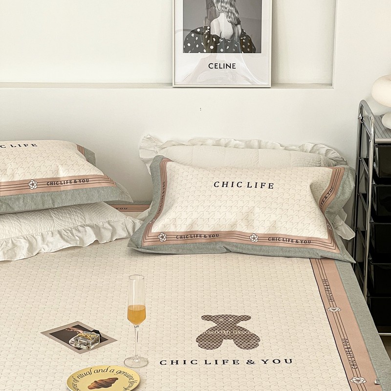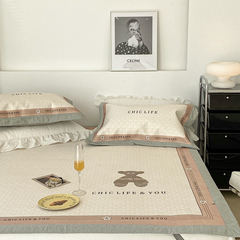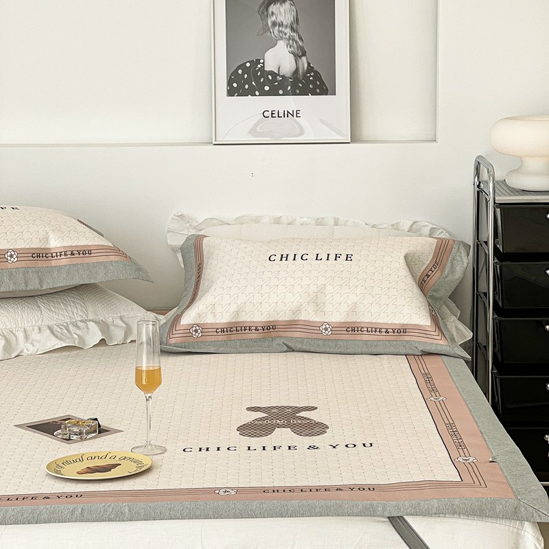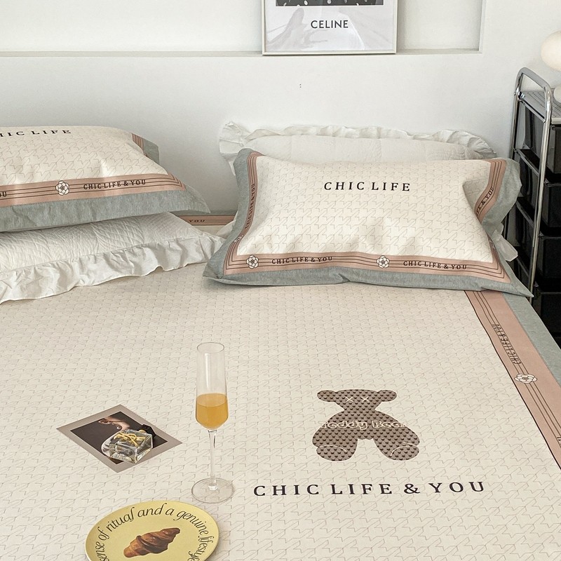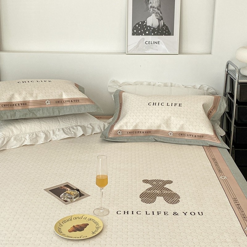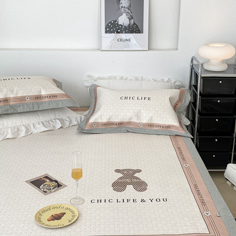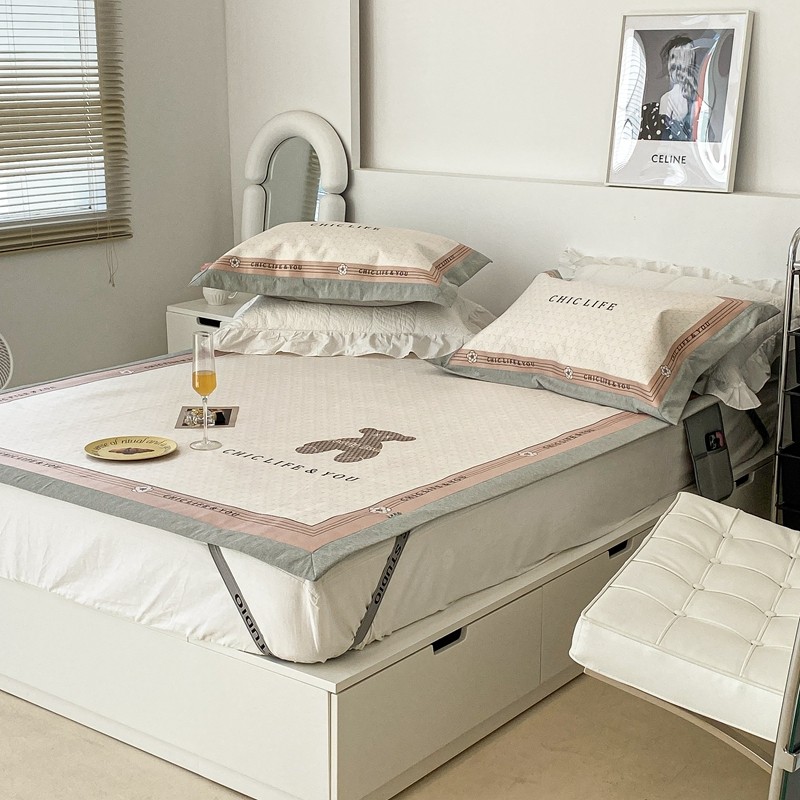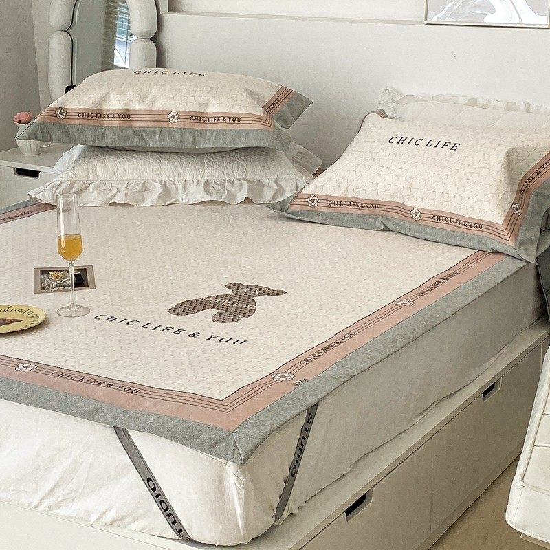 昔可 2022新款大版数码水洗冰沐丝凉席 千鸟格纹熊