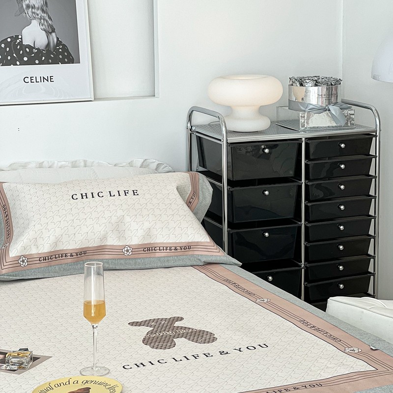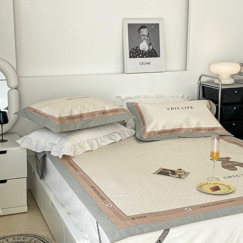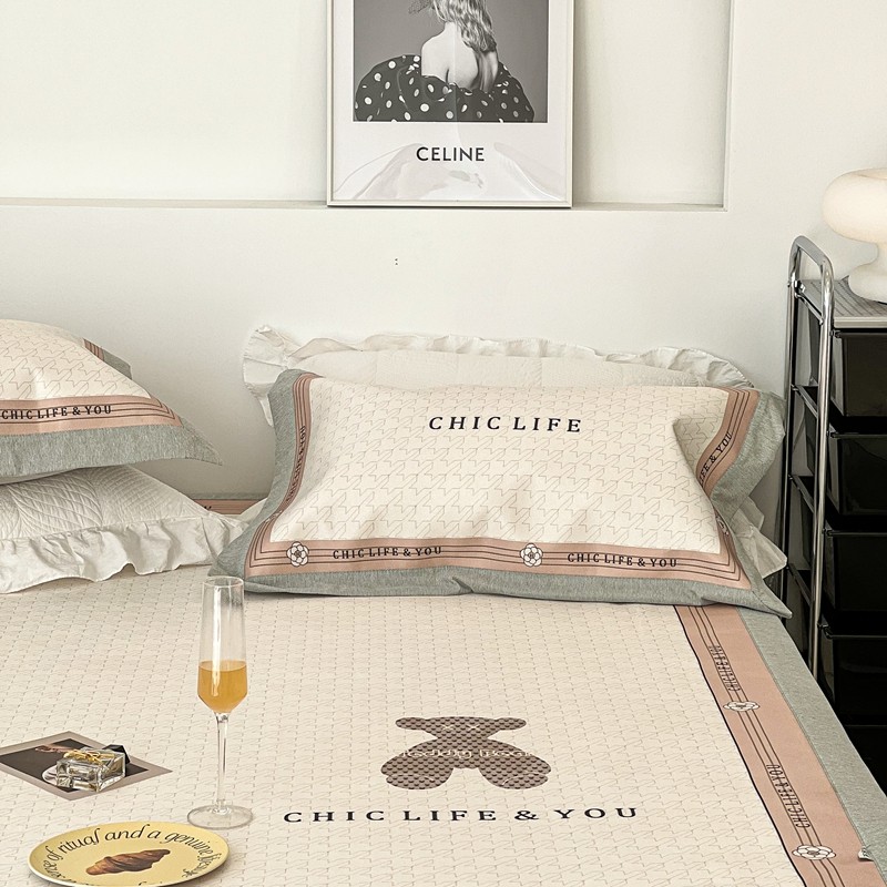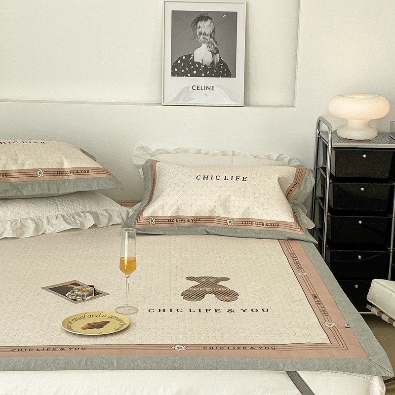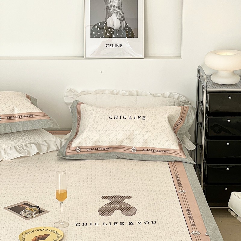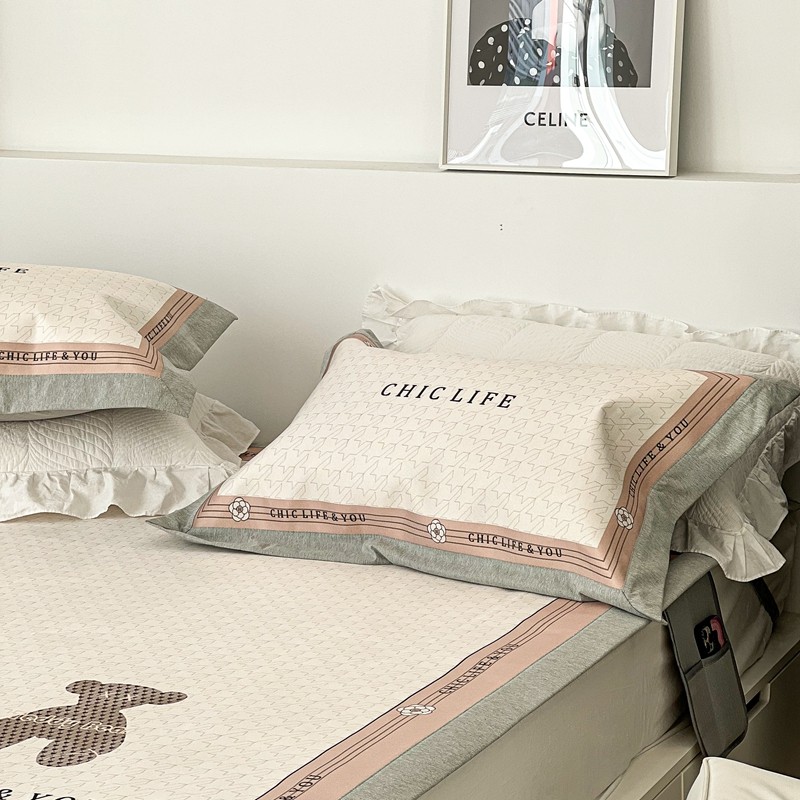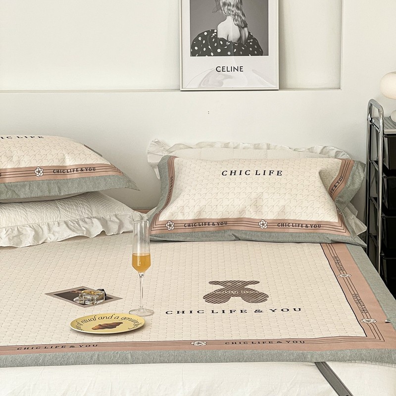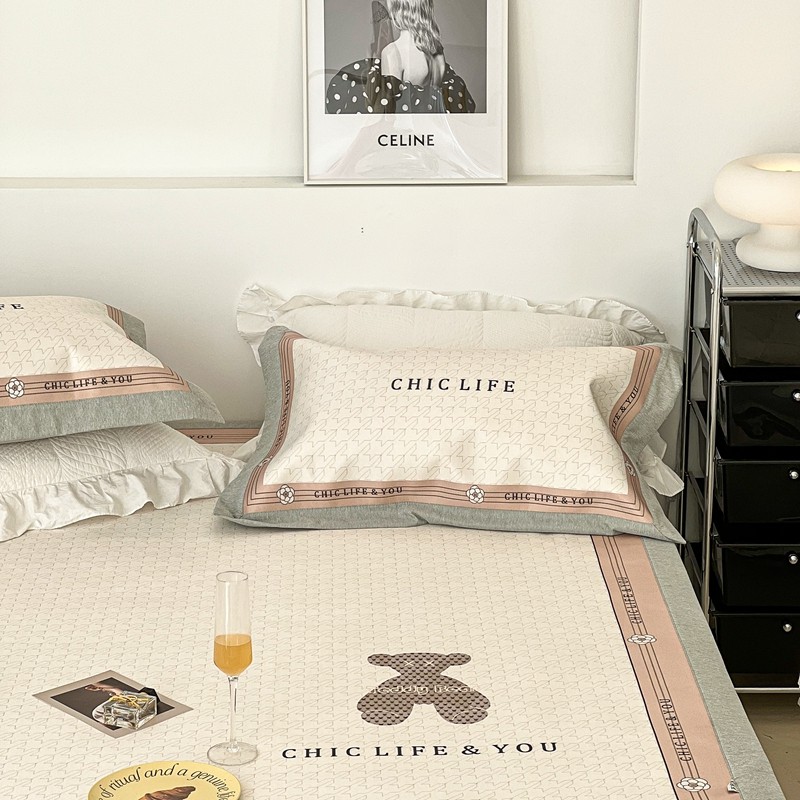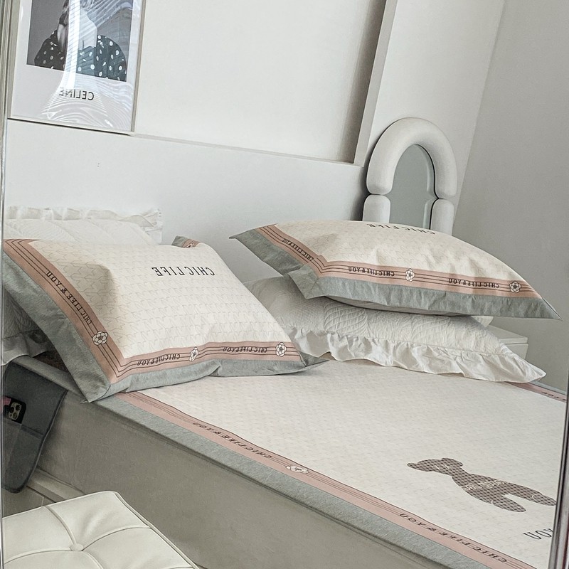 昔可 2022新款大版数码水洗冰沐丝凉席 千鸟格纹熊