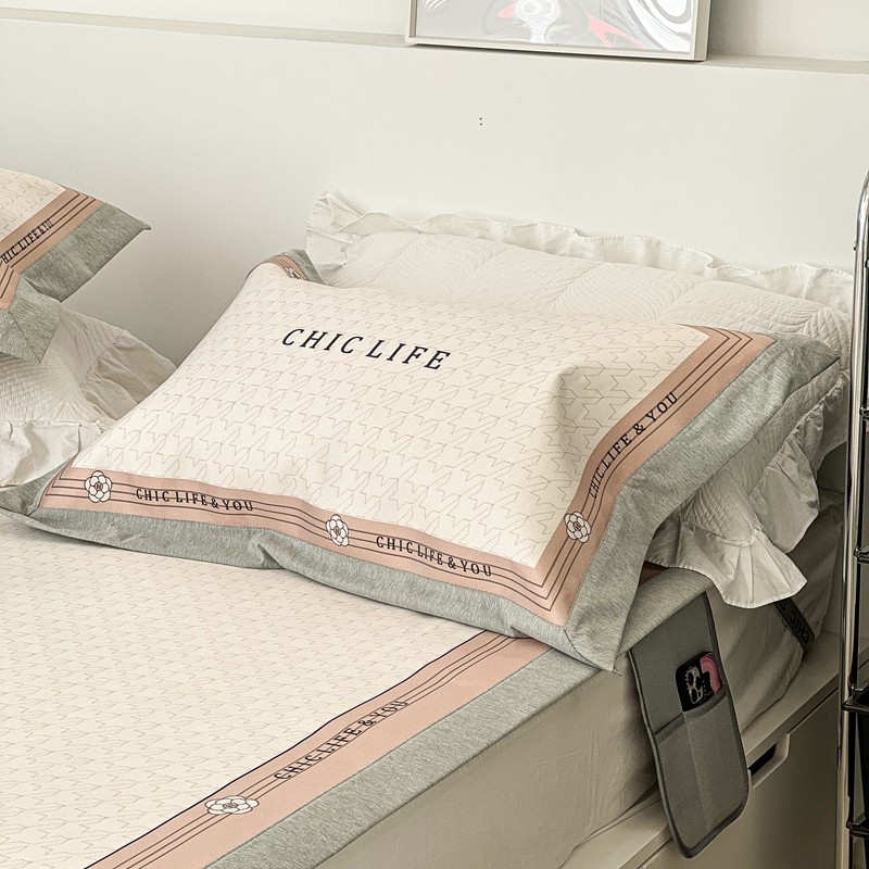 (总)昔可家纺 2023新款双层纱枕头绑带版四件套,橙花,粉粉馥芮,莫奈紫,英国梨