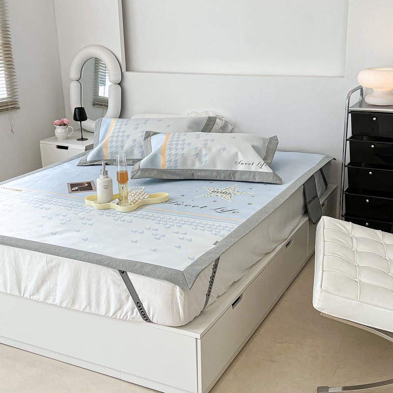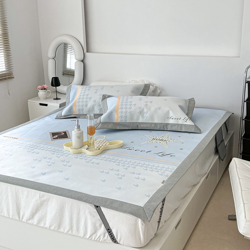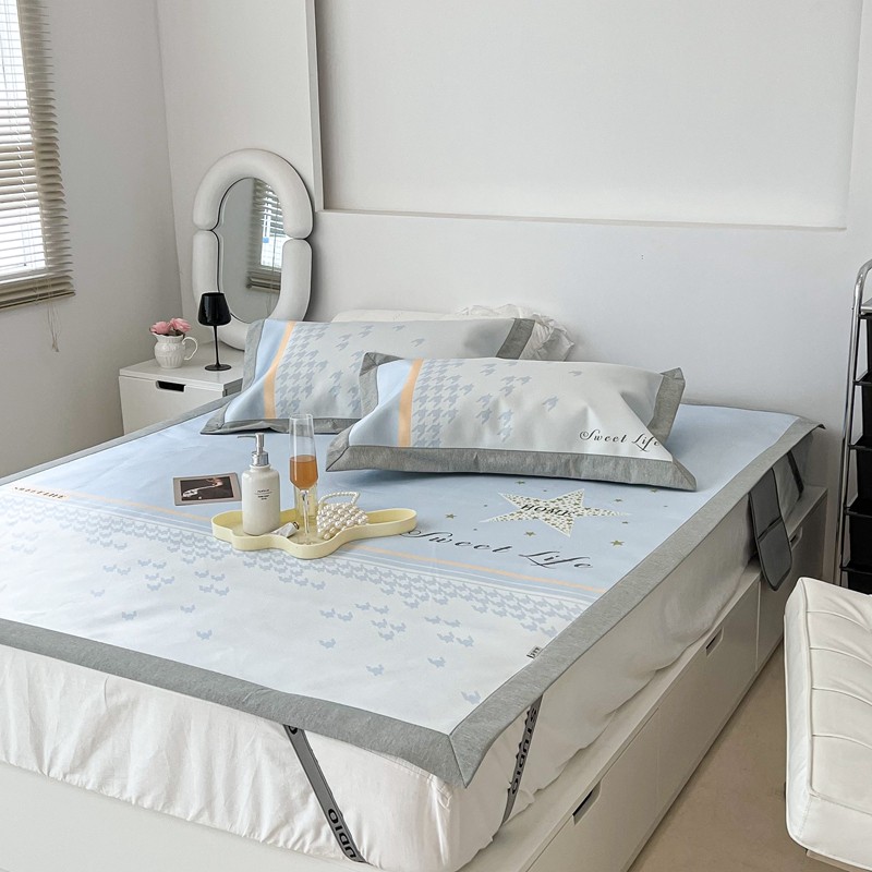昔可 2022新款大版数码水洗冰沐丝凉席 星光闪闪蓝