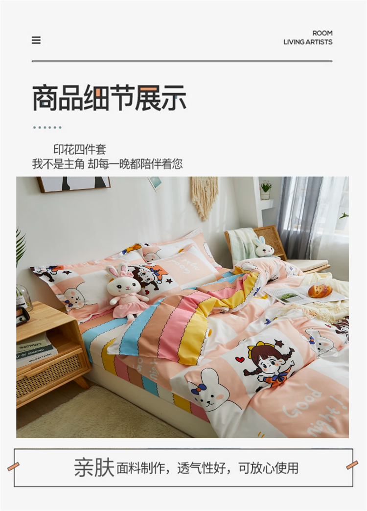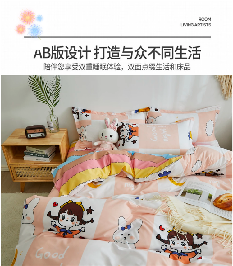 商品名称:曼璐家纺 2025新款芦荟棉床单款四件套 小可爱