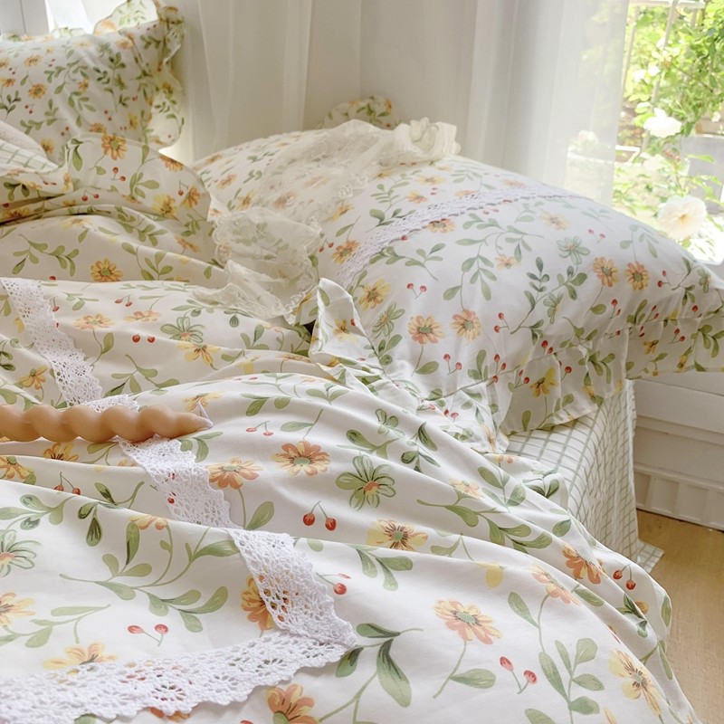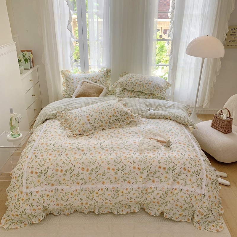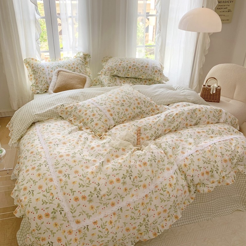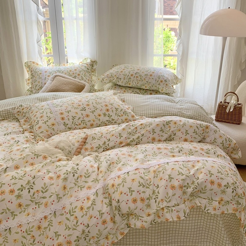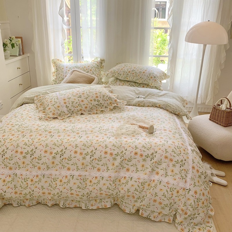 眠屿 2022新款全棉小碎花法式花边四件套 四季芳香