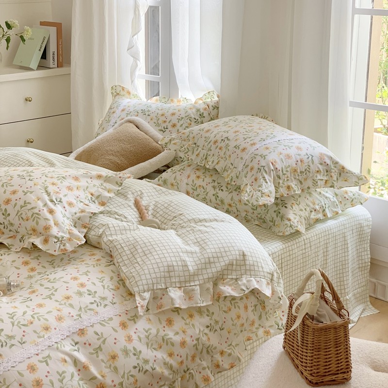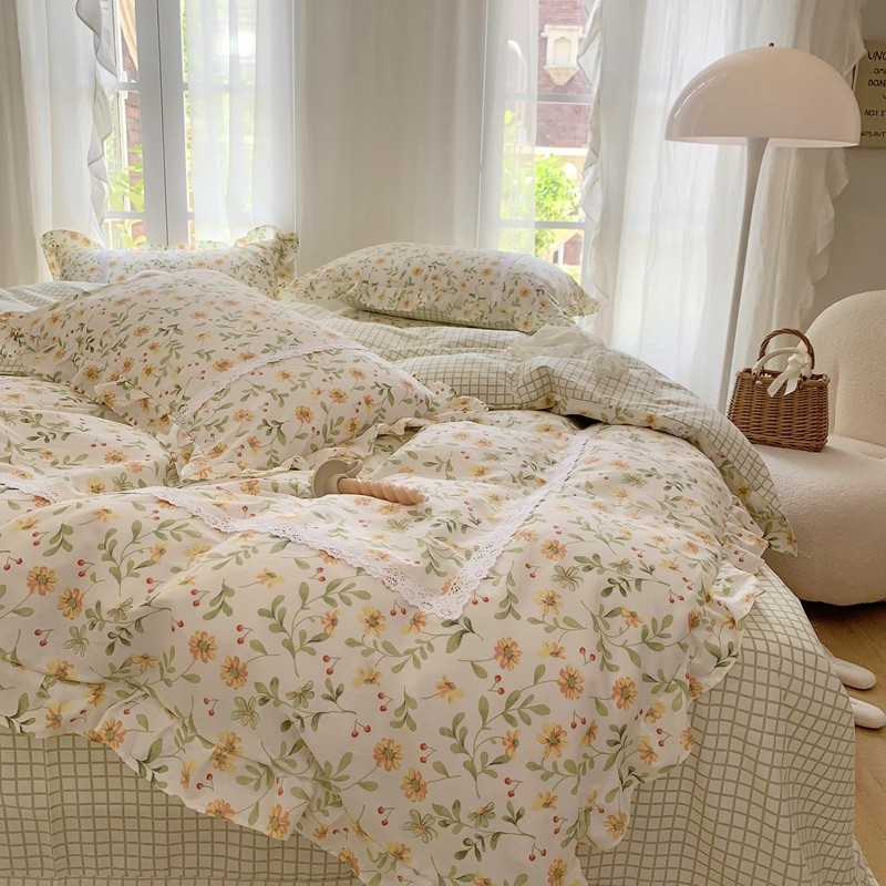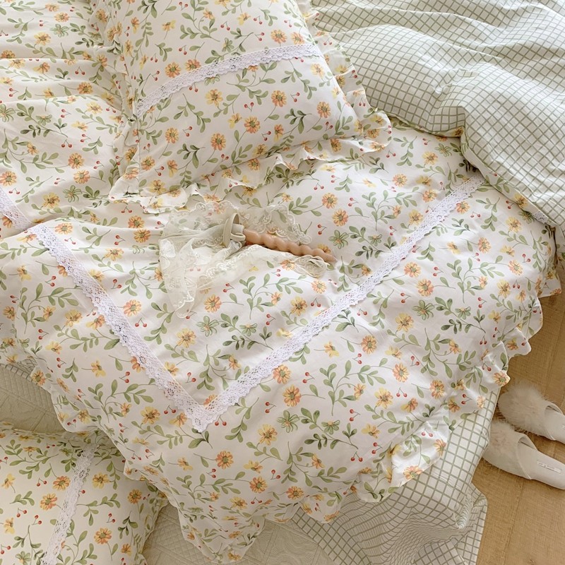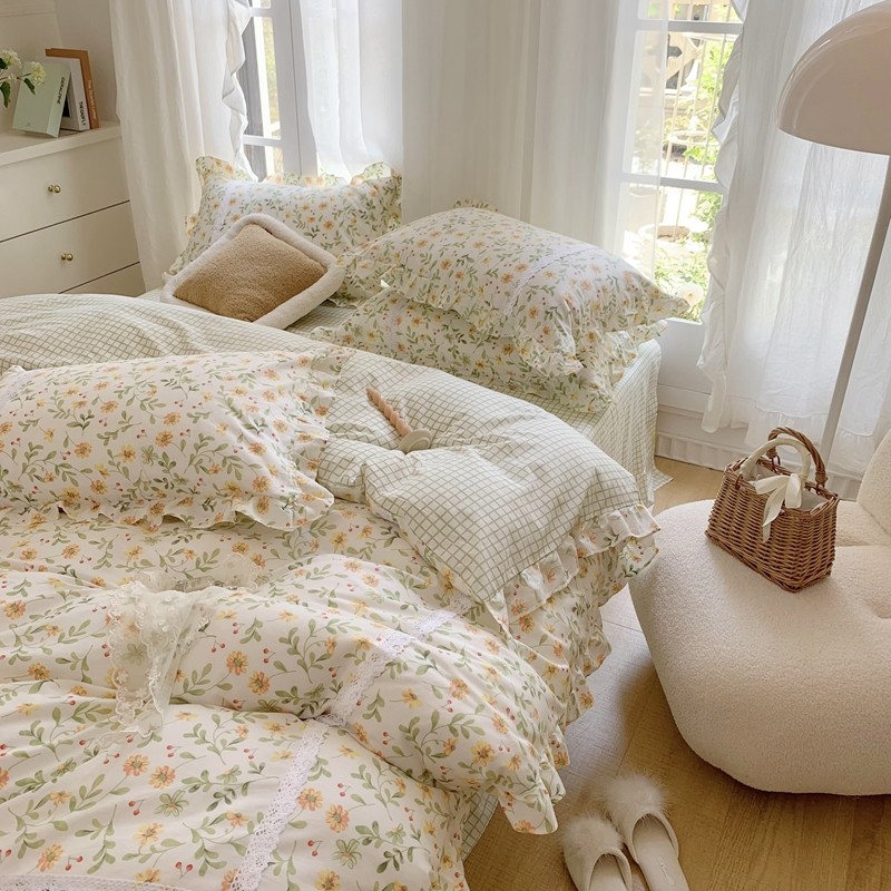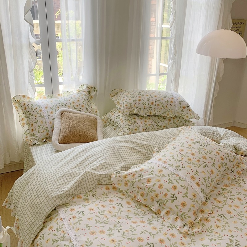 眠屿 2022新款全棉小碎花法式花边四件套 四季芳香
