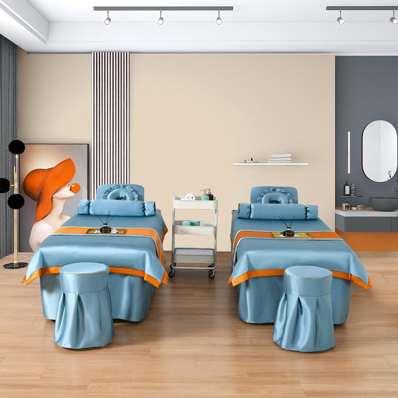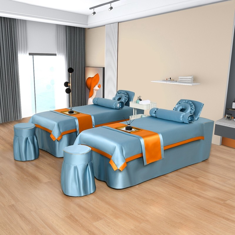 莉人坊美容床罩批发 2023贵妃段天丝美容床罩四件套 天鹅湖兰