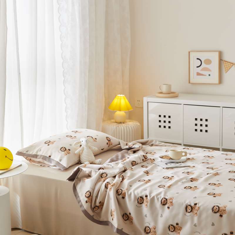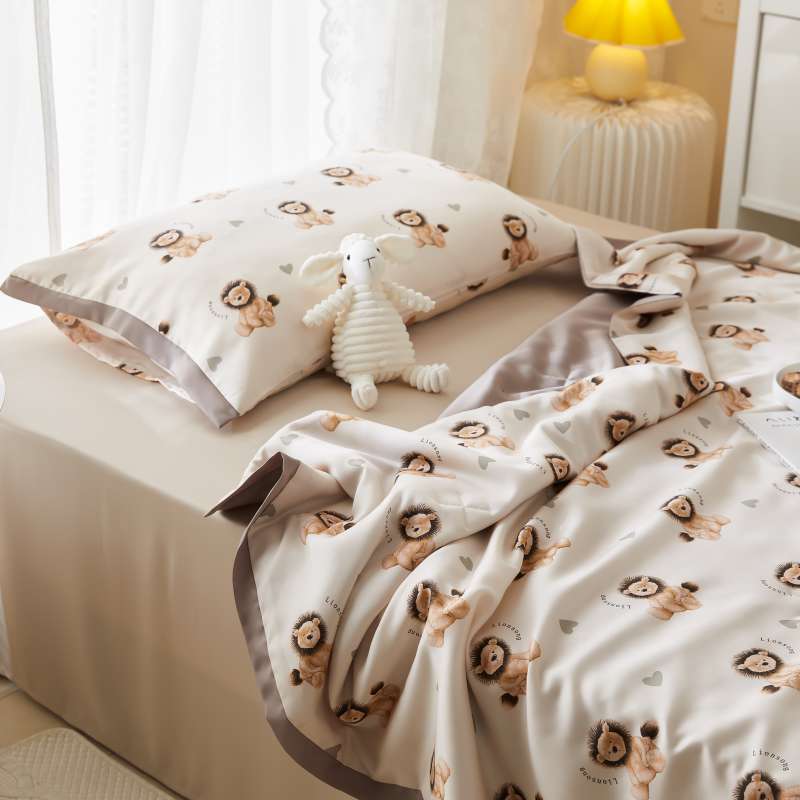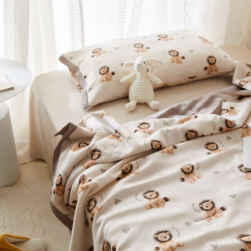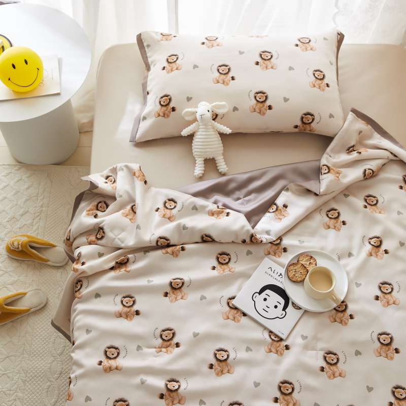 汇庭 2021新款单人天丝卡通印花夏被 比得狮子