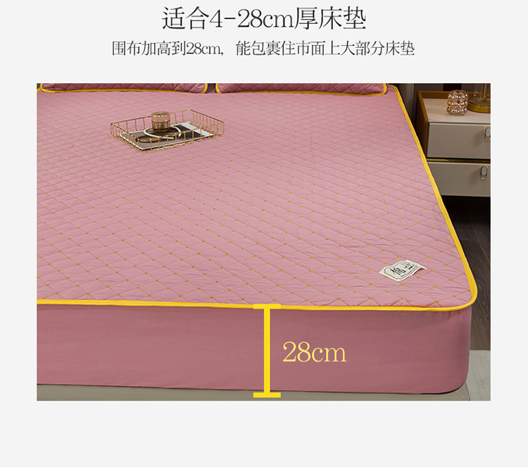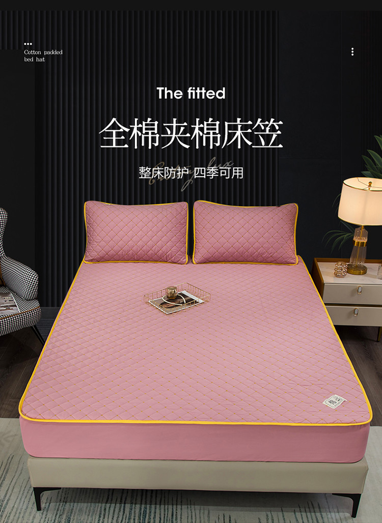 冬然家纺2022新款纯棉床笠夹棉防滑床垫保护垫 满天星豆沙粉