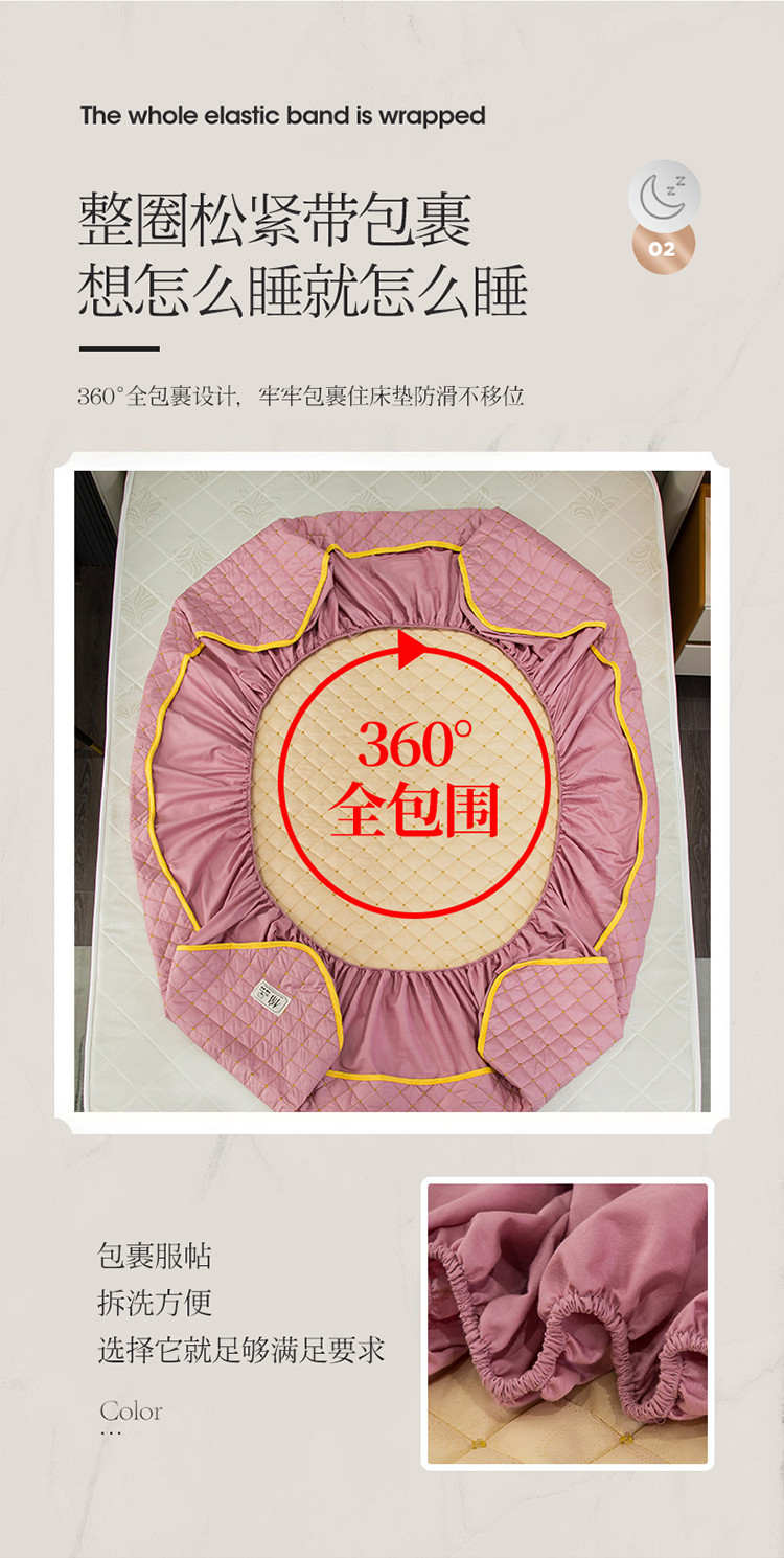 商品名称:冬然家纺2022新款纯棉床笠夹棉防滑床垫保护垫 满天星豆沙粉