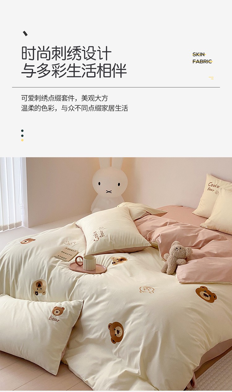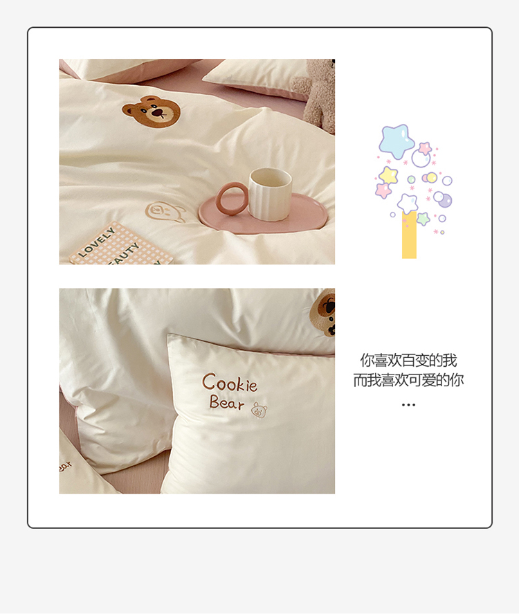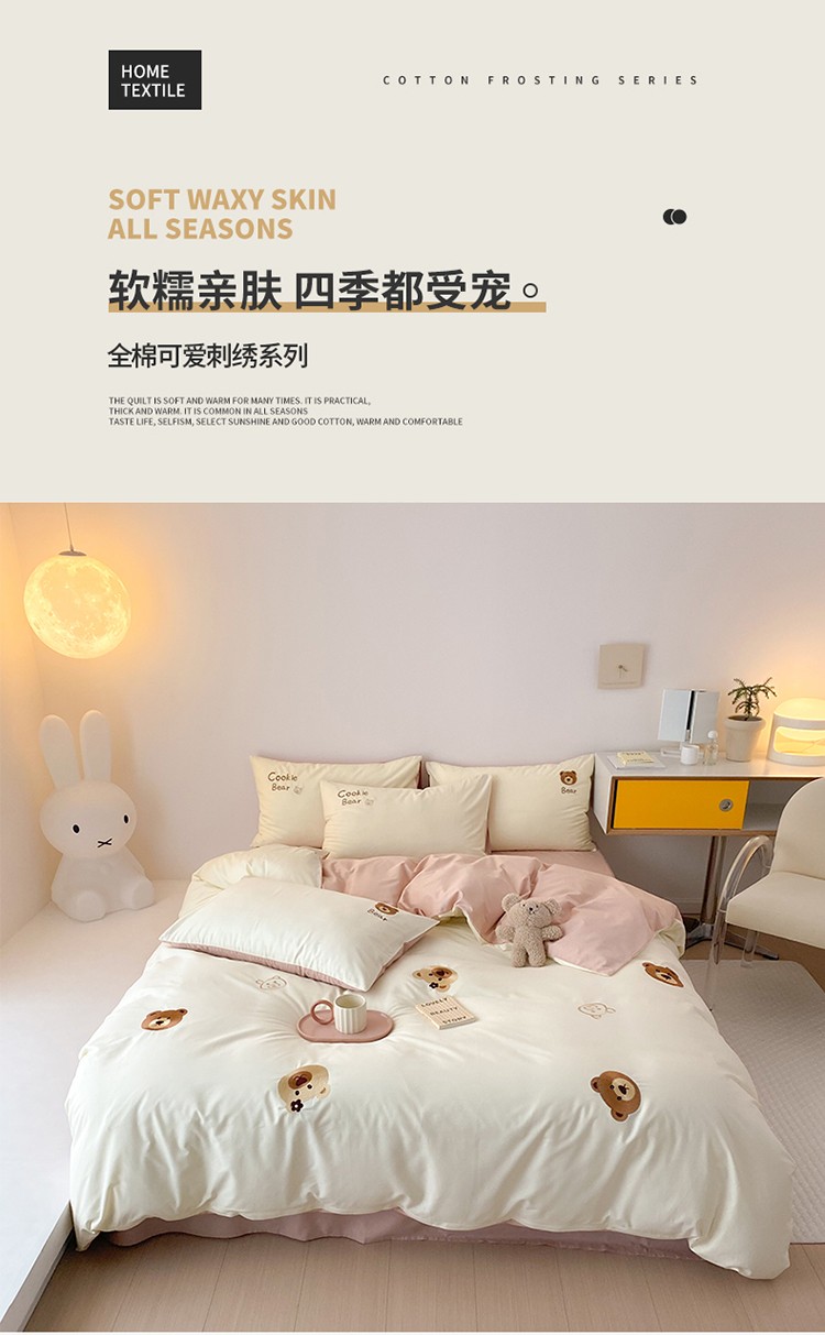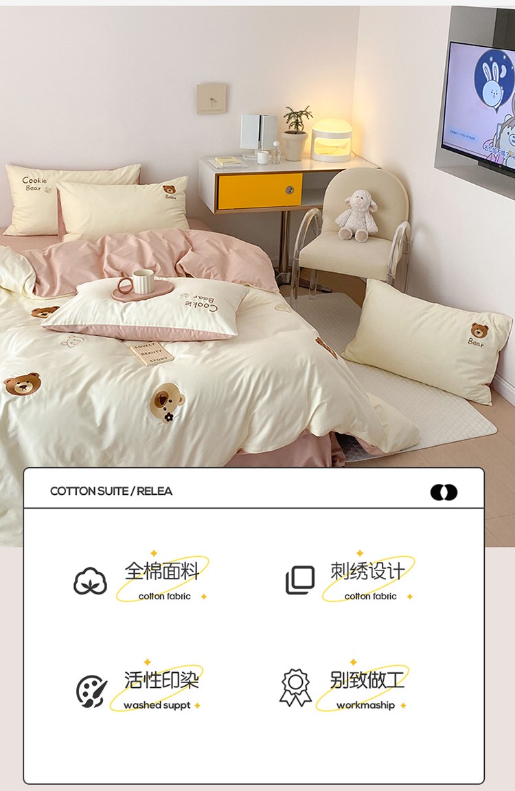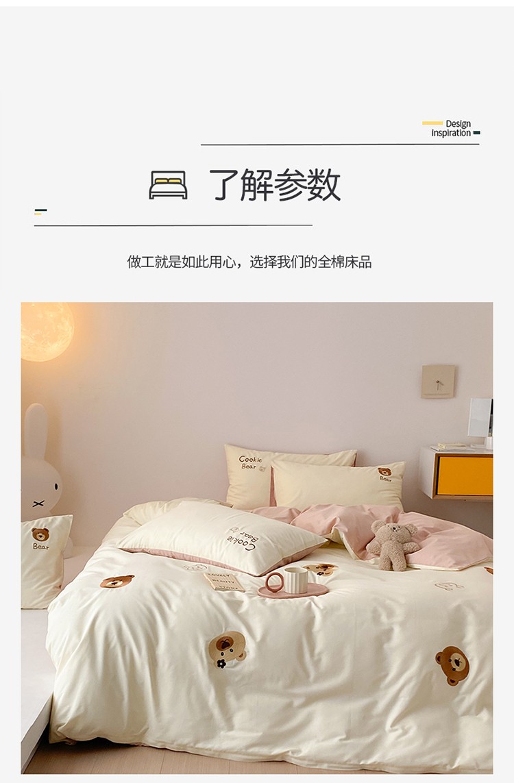 沐棉 2022新款13376全棉刺绣四件套 饼干熊-米