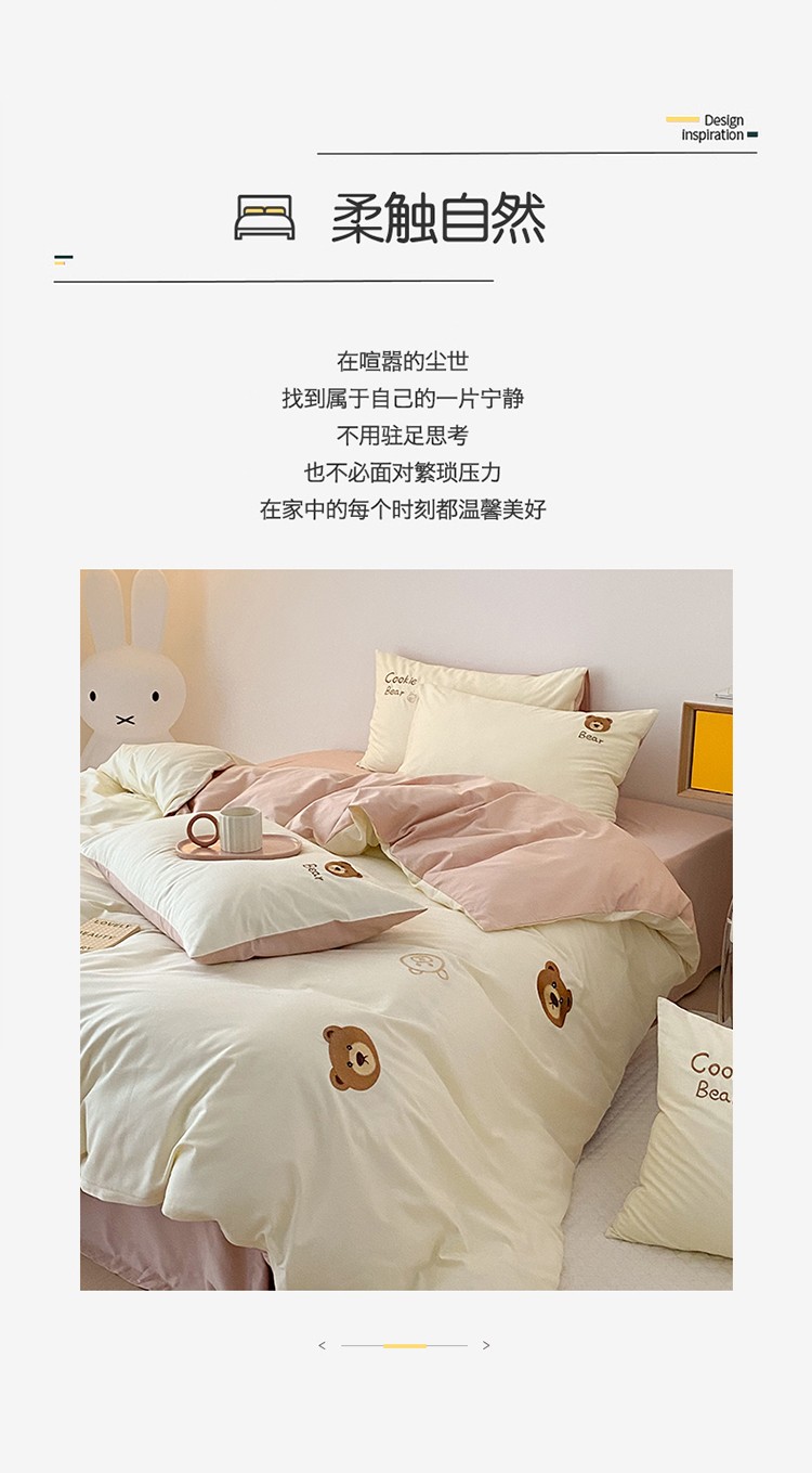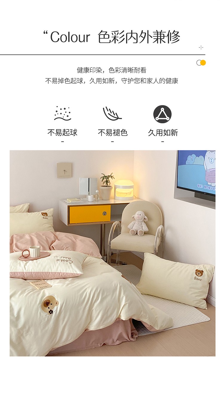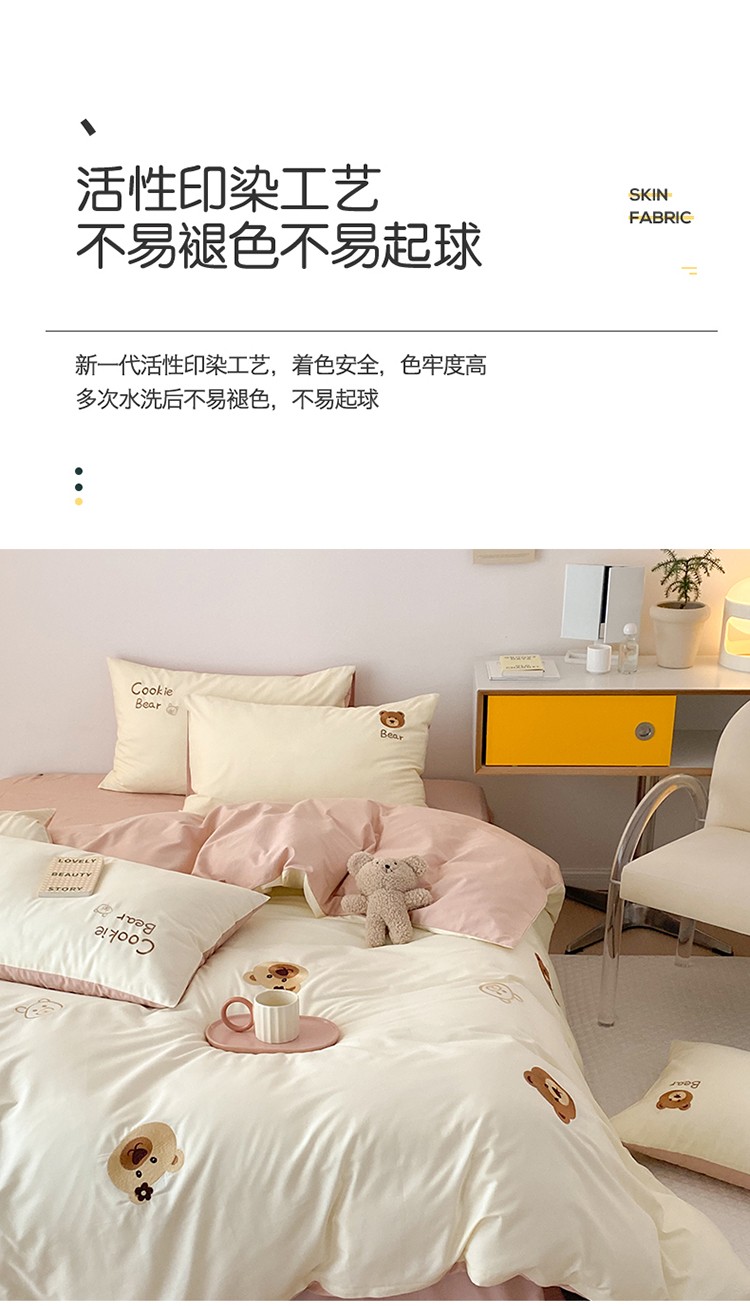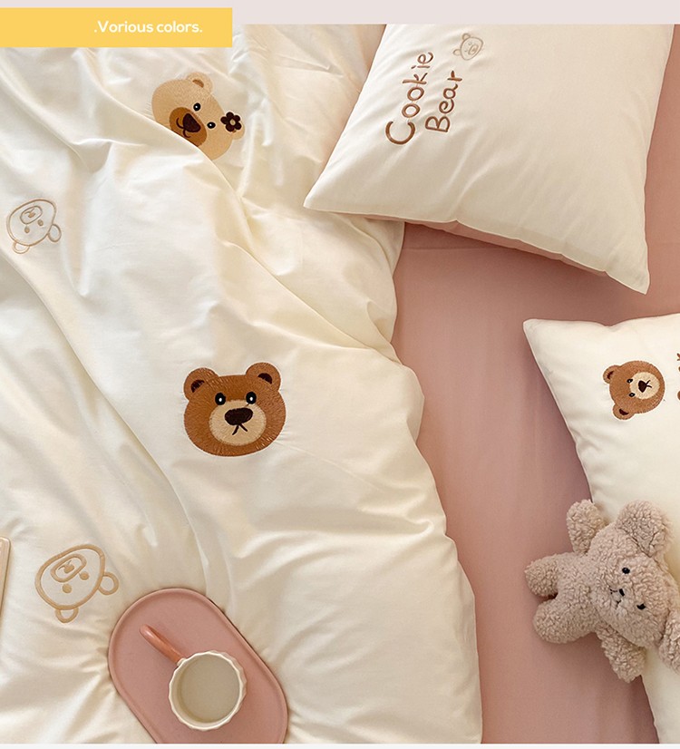 沐棉 2022新款13376全棉刺绣四件套 饼干熊-米