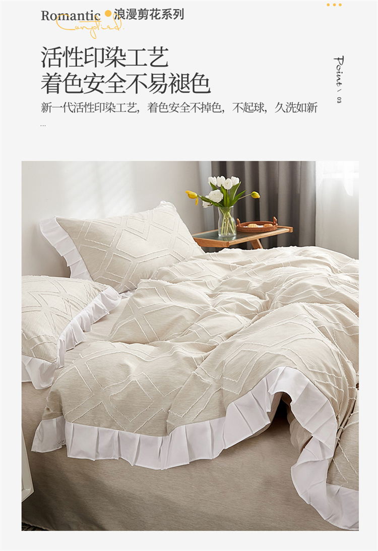 (总)啊雅家居 2026新款105克120克150克面料磨毛飞边民宿酒店三件套四件套,105克飞边款,120克飞边款,150克飞边款