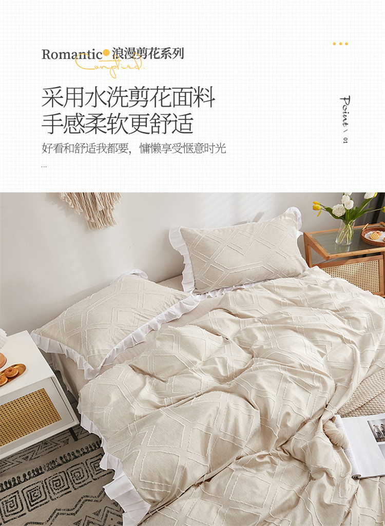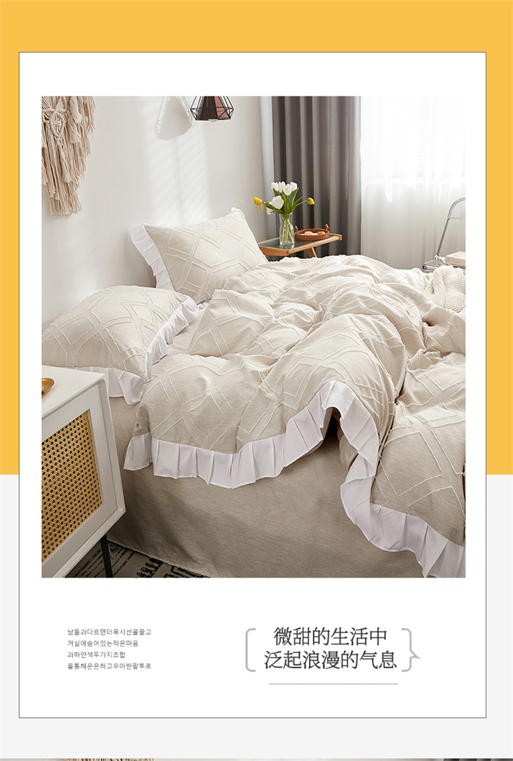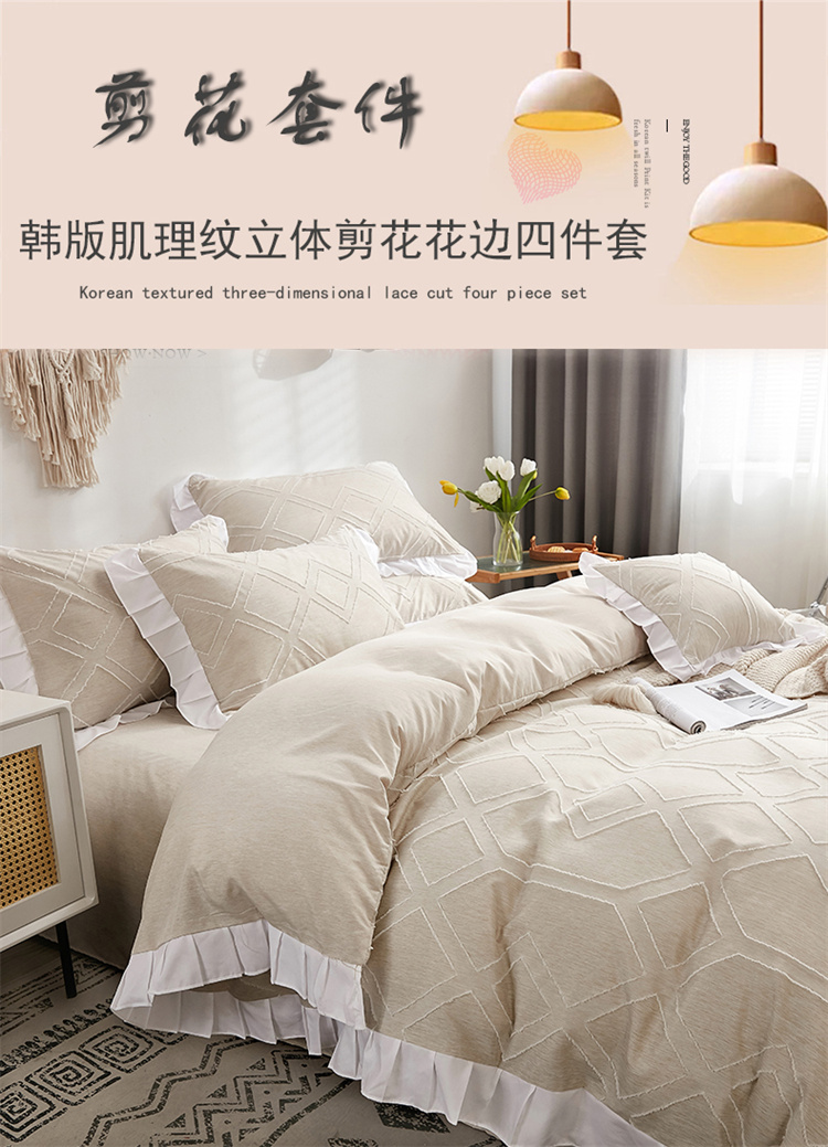 商品名称:啊雅家居2025新款韩版肌理纹立体剪花花边四件套 肌理黄