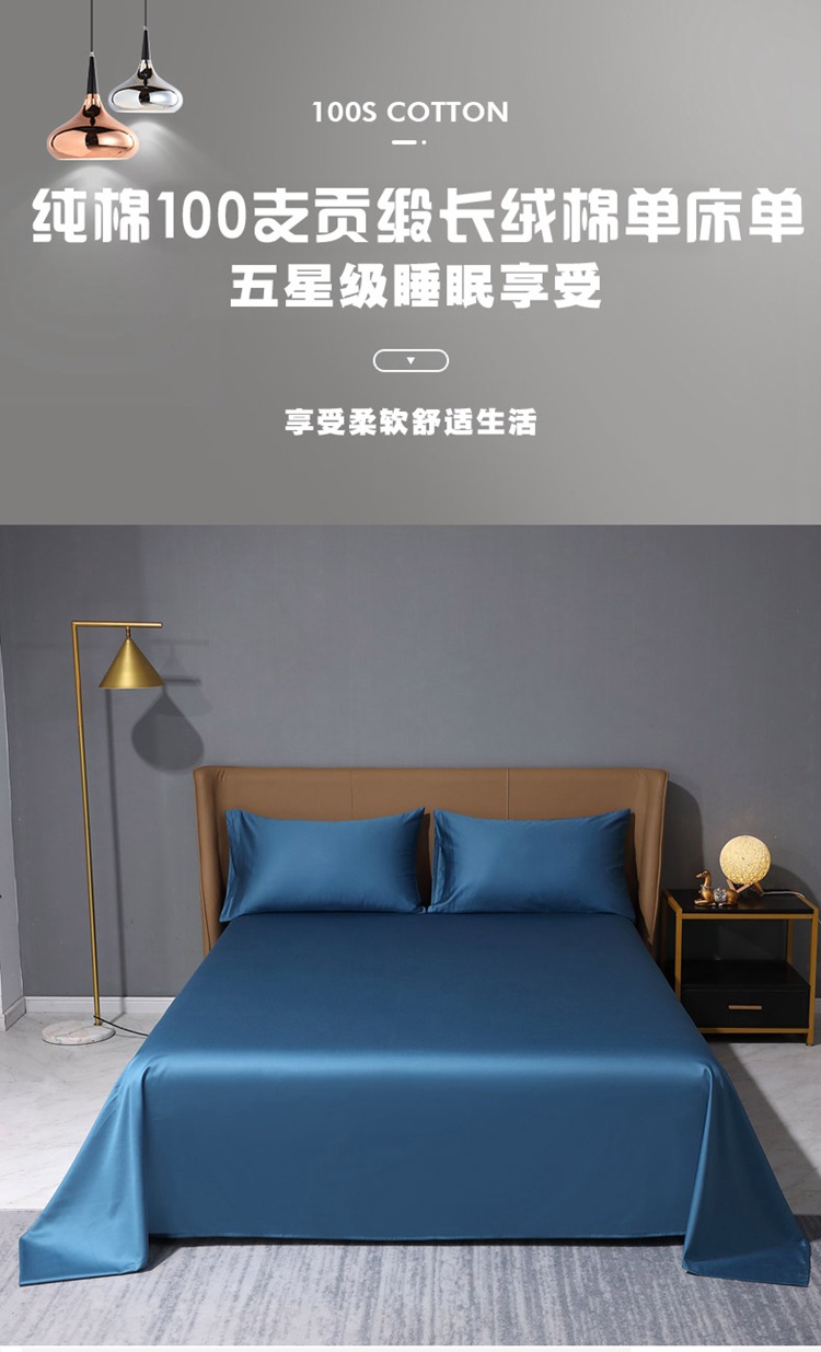 (总)2024新款纯棉全棉50支双股贡缎长绒棉纯色单品单床单单件素色被单