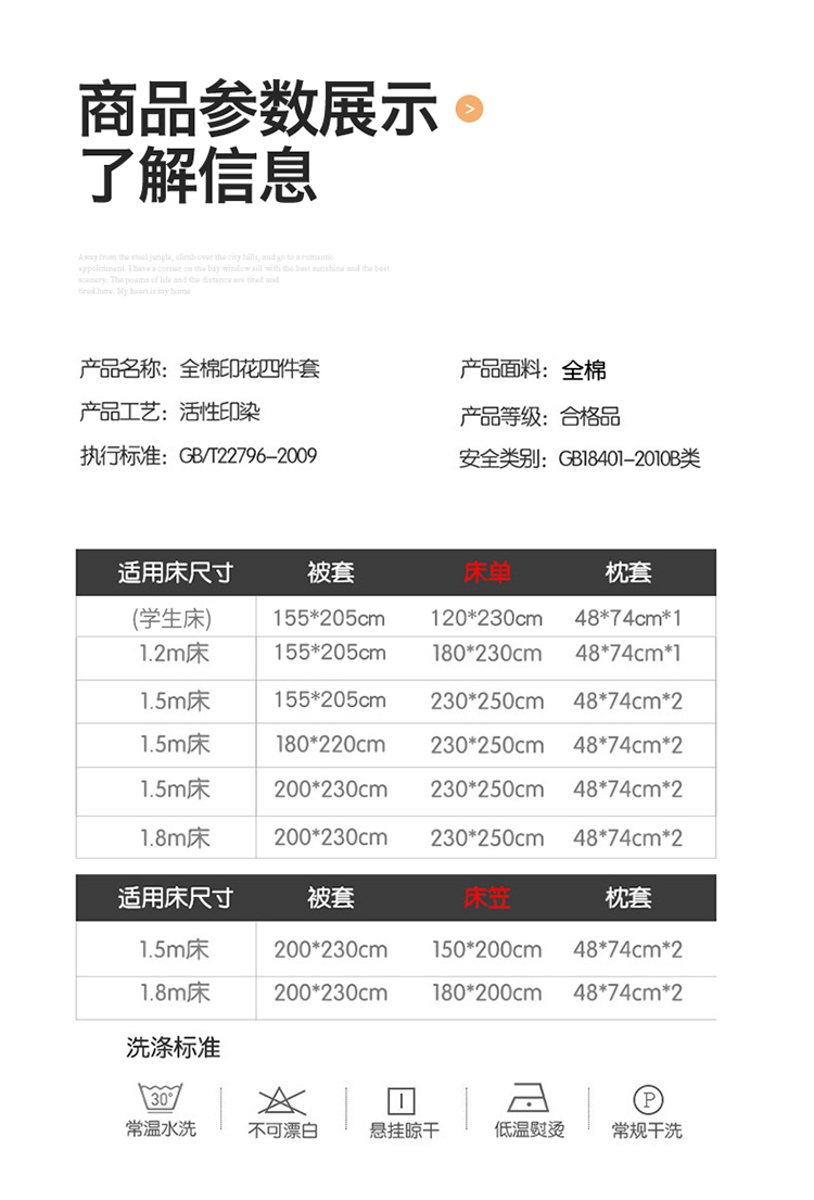 1.5m床单款四件套(被套200*230cm) | ¥120.00 |