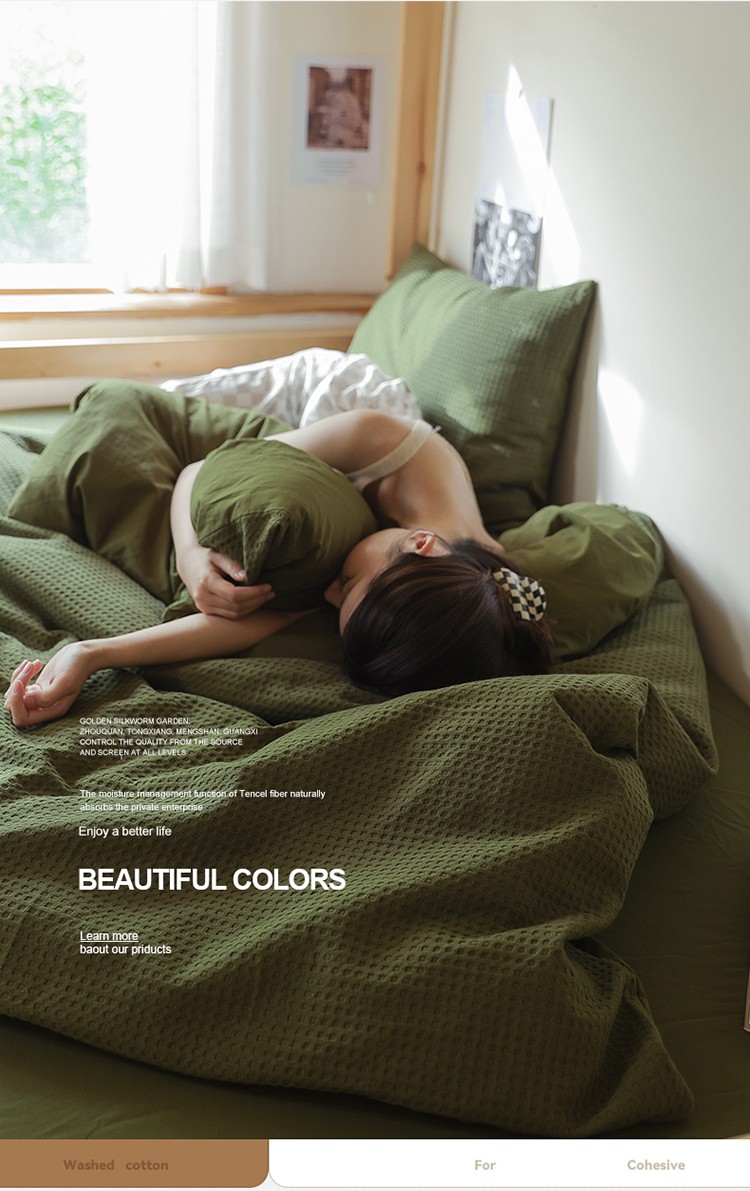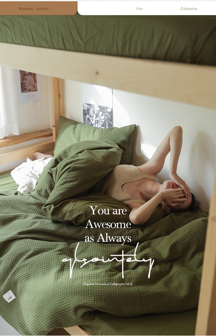 (总)寐眠 2022新款A类水洗棉全棉华夫格学生三件套