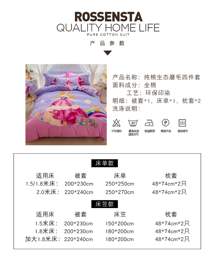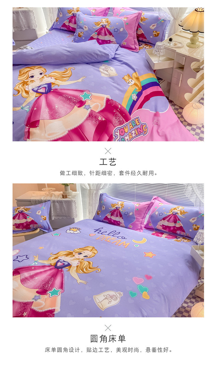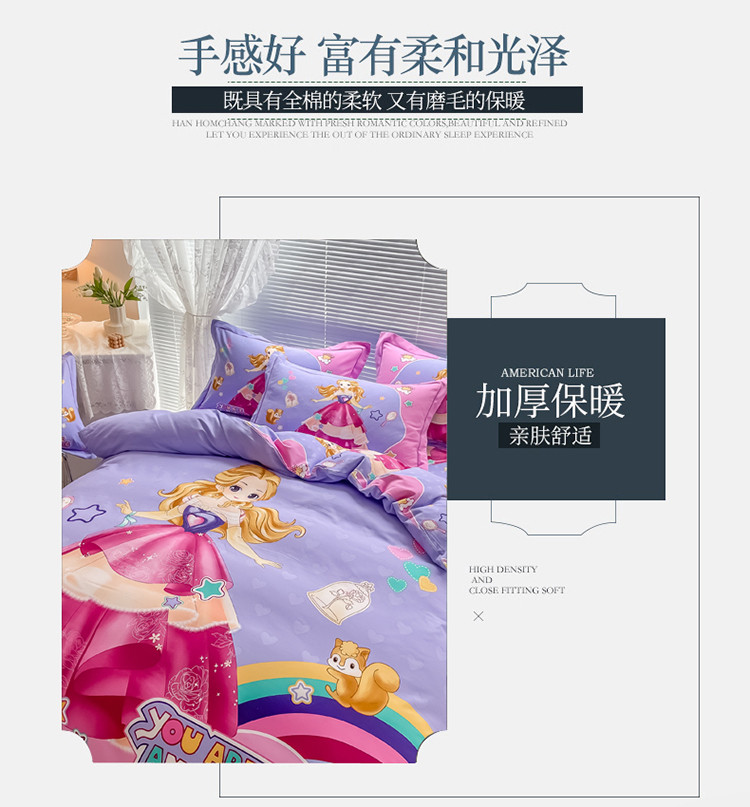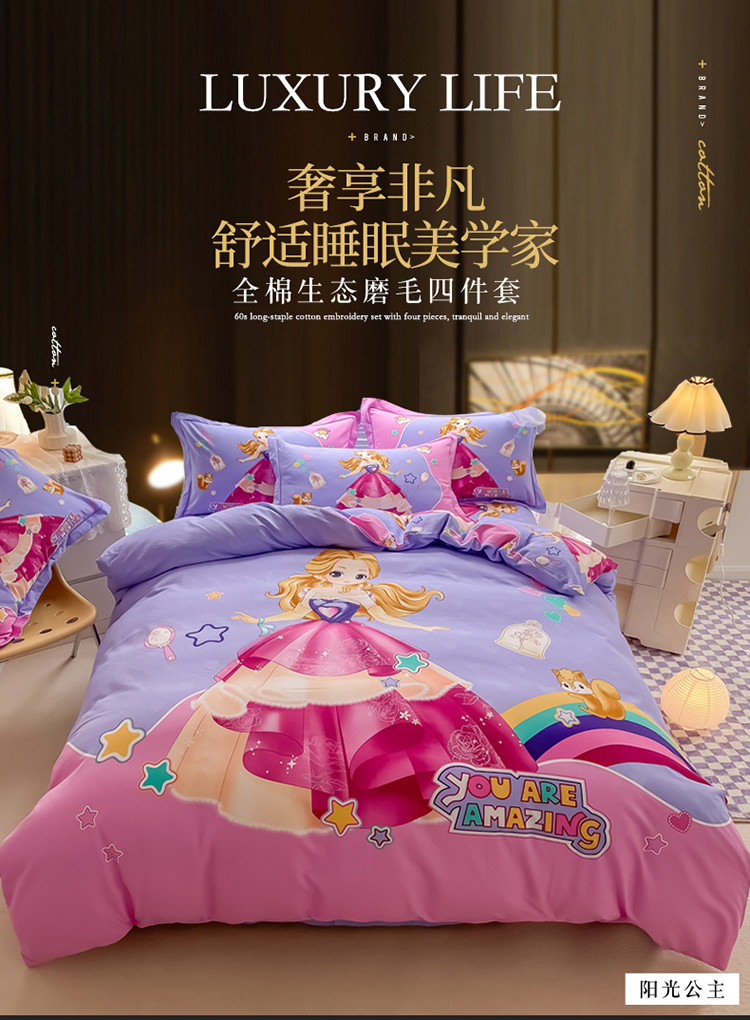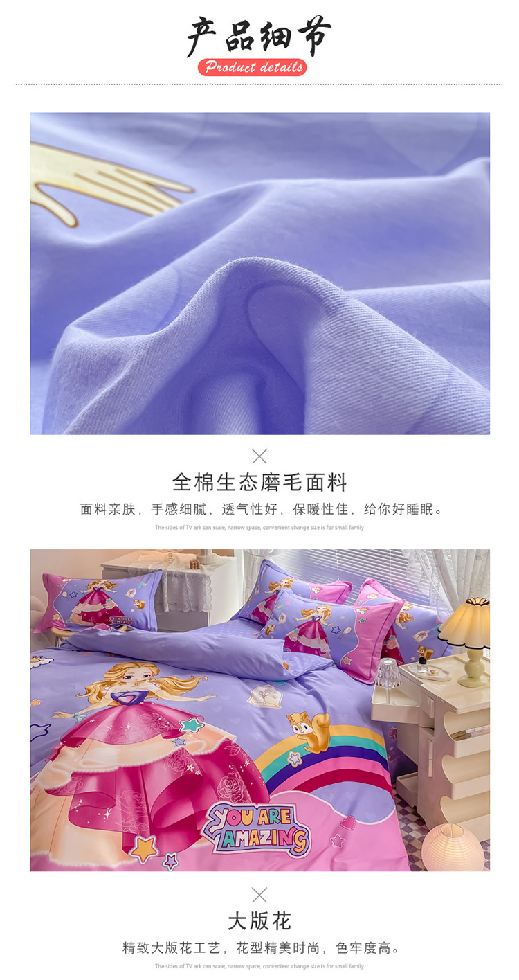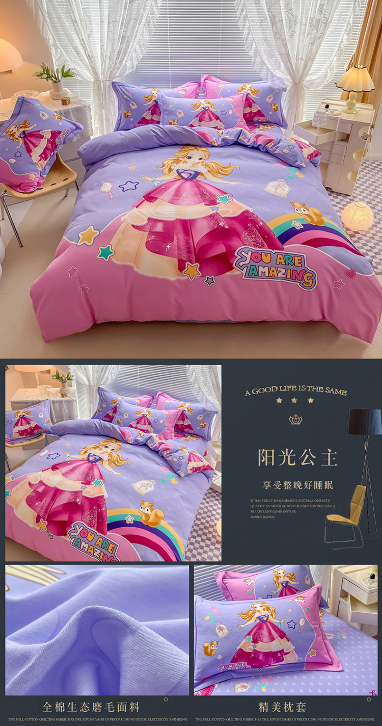 当前位置: 91家纺网 > 商品网购 > 床品套件 > 四件套 > 普通磨毛四件套 > 金爱家 2023新款大版卡通磨毛四件套 阳光公主