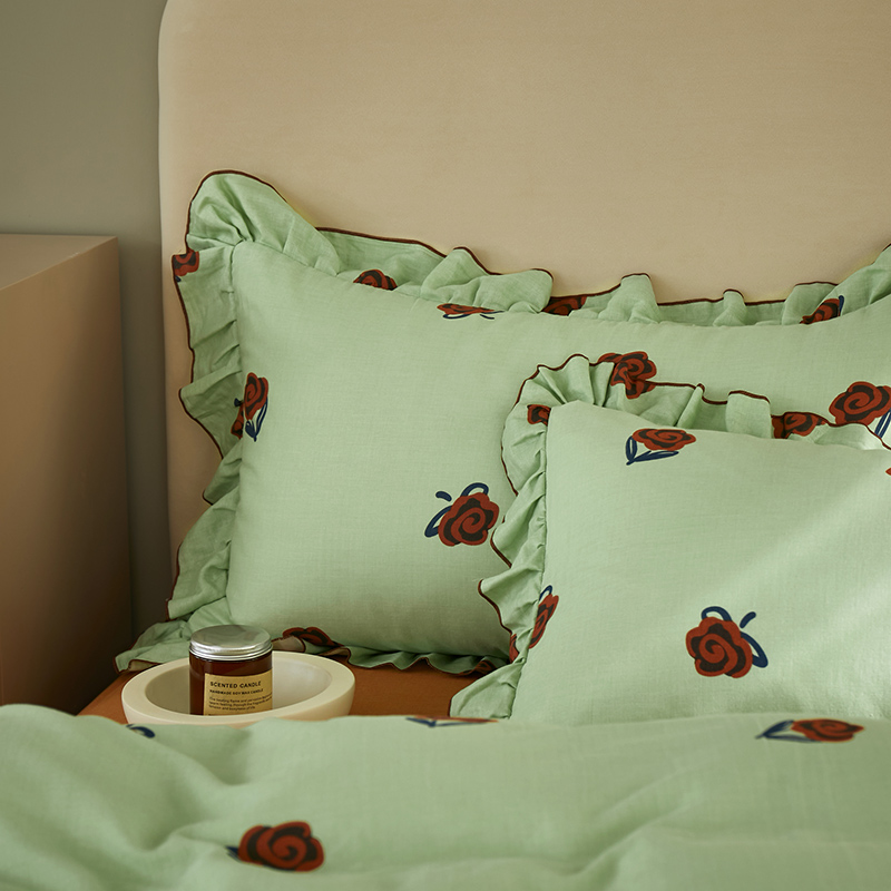 (总)怡家居 2025新款全棉纯棉磨毛数码印花韩系花边四件套,初暖,兰序,阑珊,浪漫,玛丽亚,茵然,语棠,珍妮,紫蘑菇