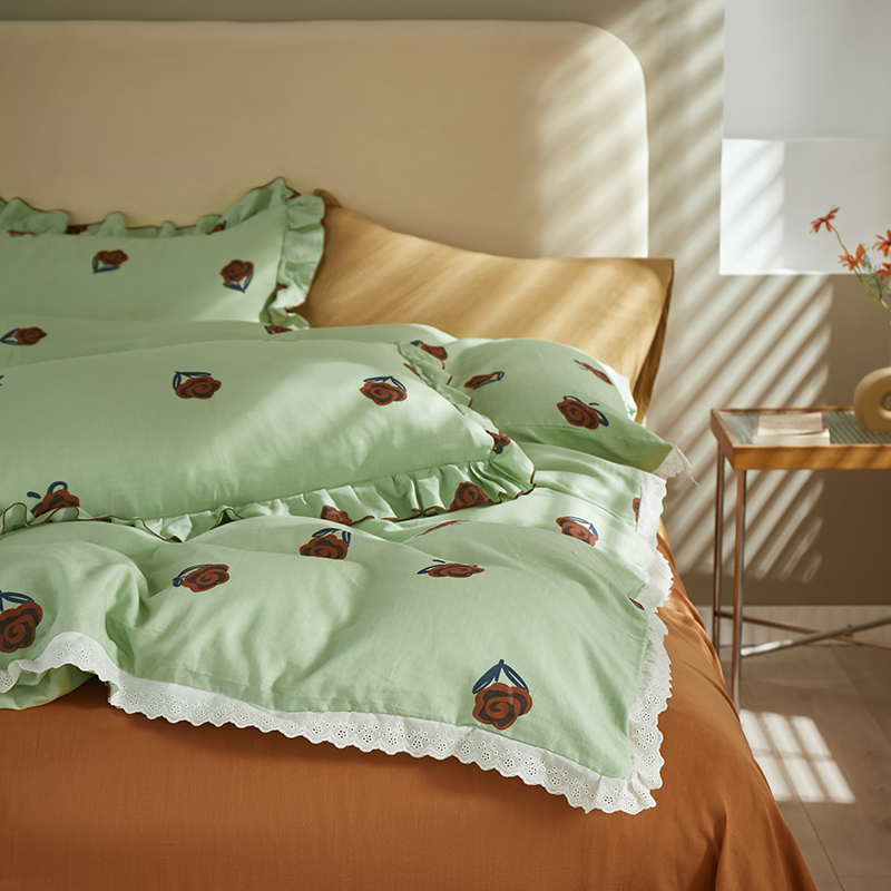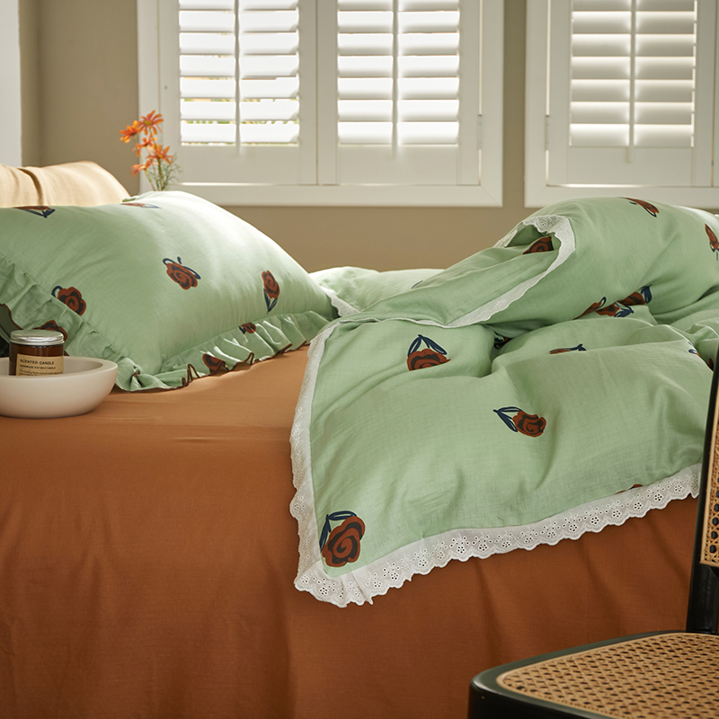 商品名称:怡家居 2022新款全棉A类双层纱韩版四件套 春意