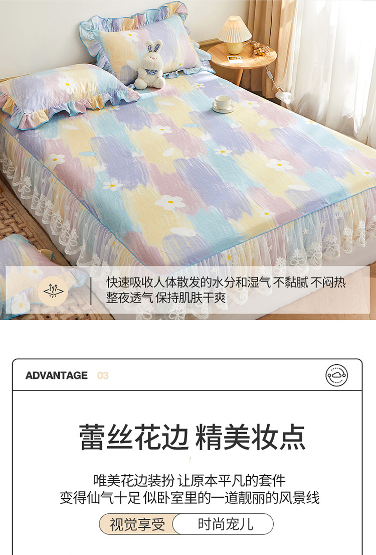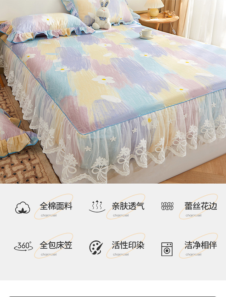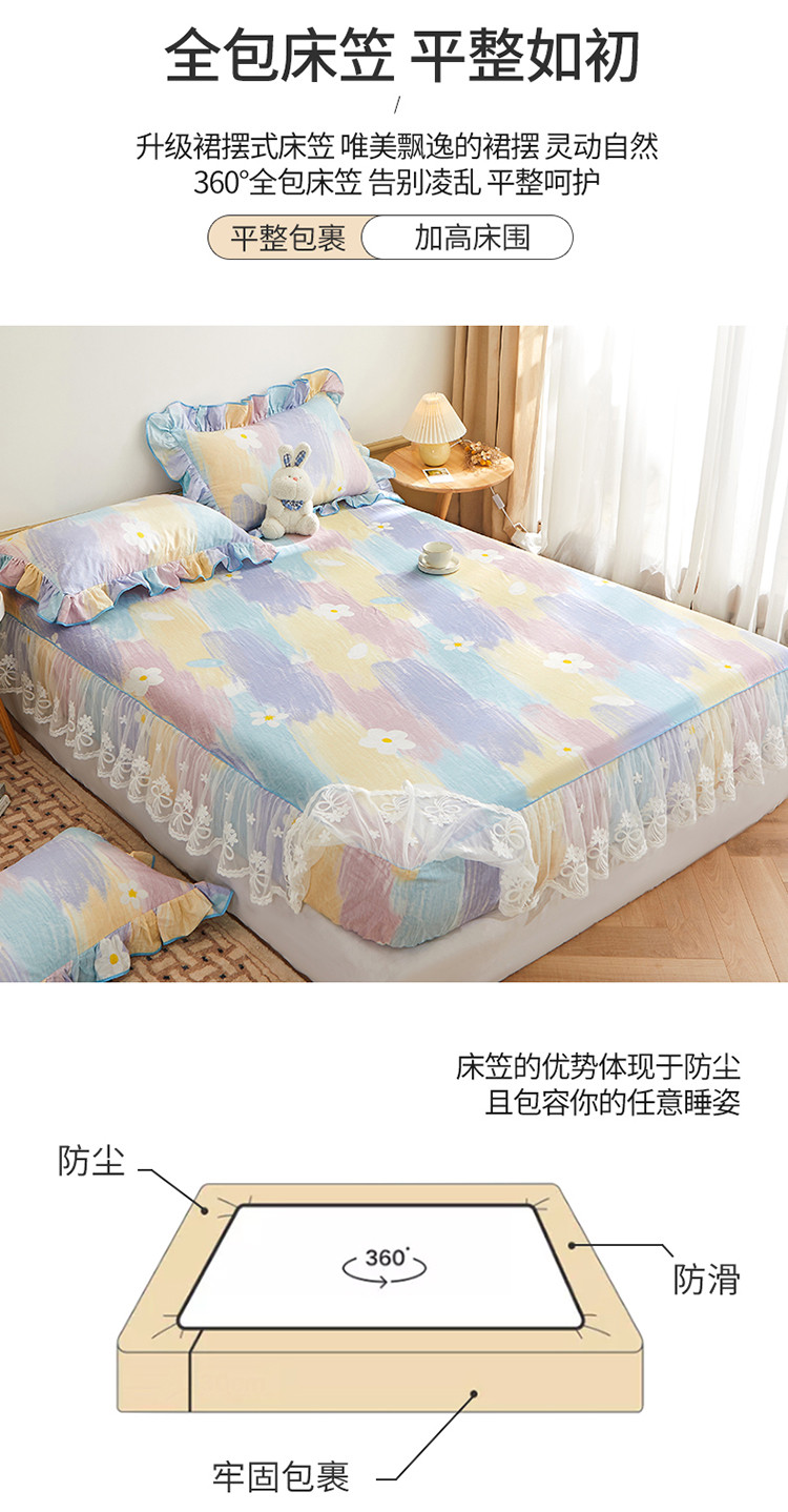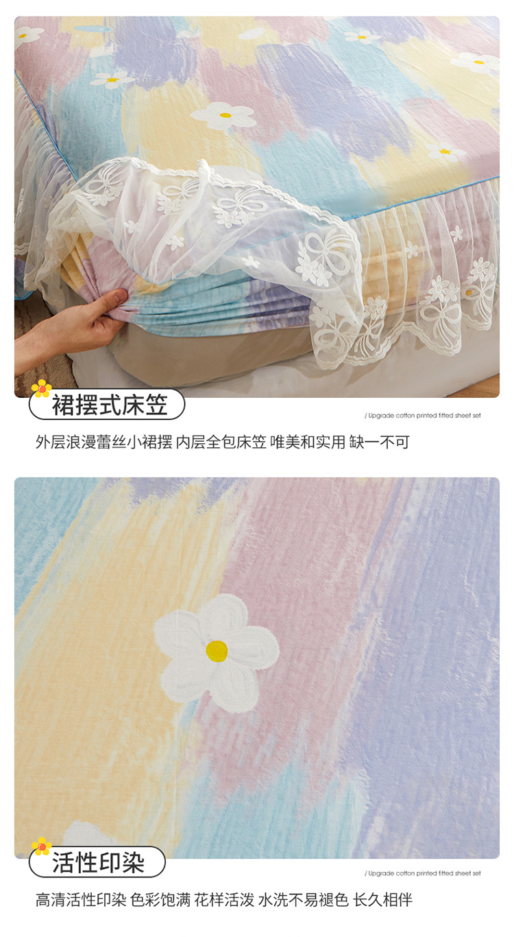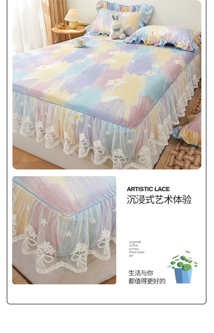 当前位置: 91家纺网 > 商品网购 > 床品套件 > 三件套 > 宜凡 2023新款全棉印花单层裙边系列-床笠三件套 云梦春华