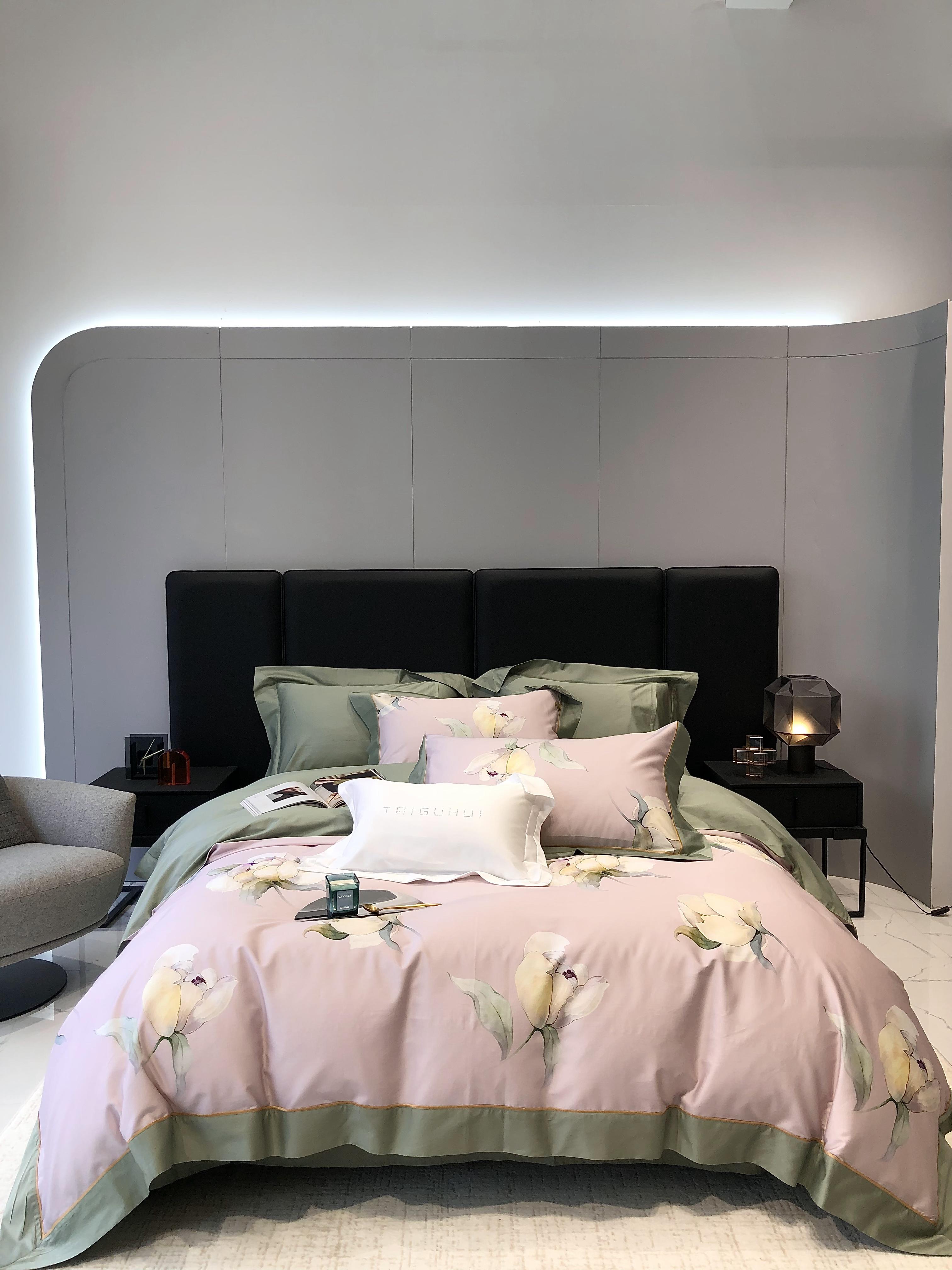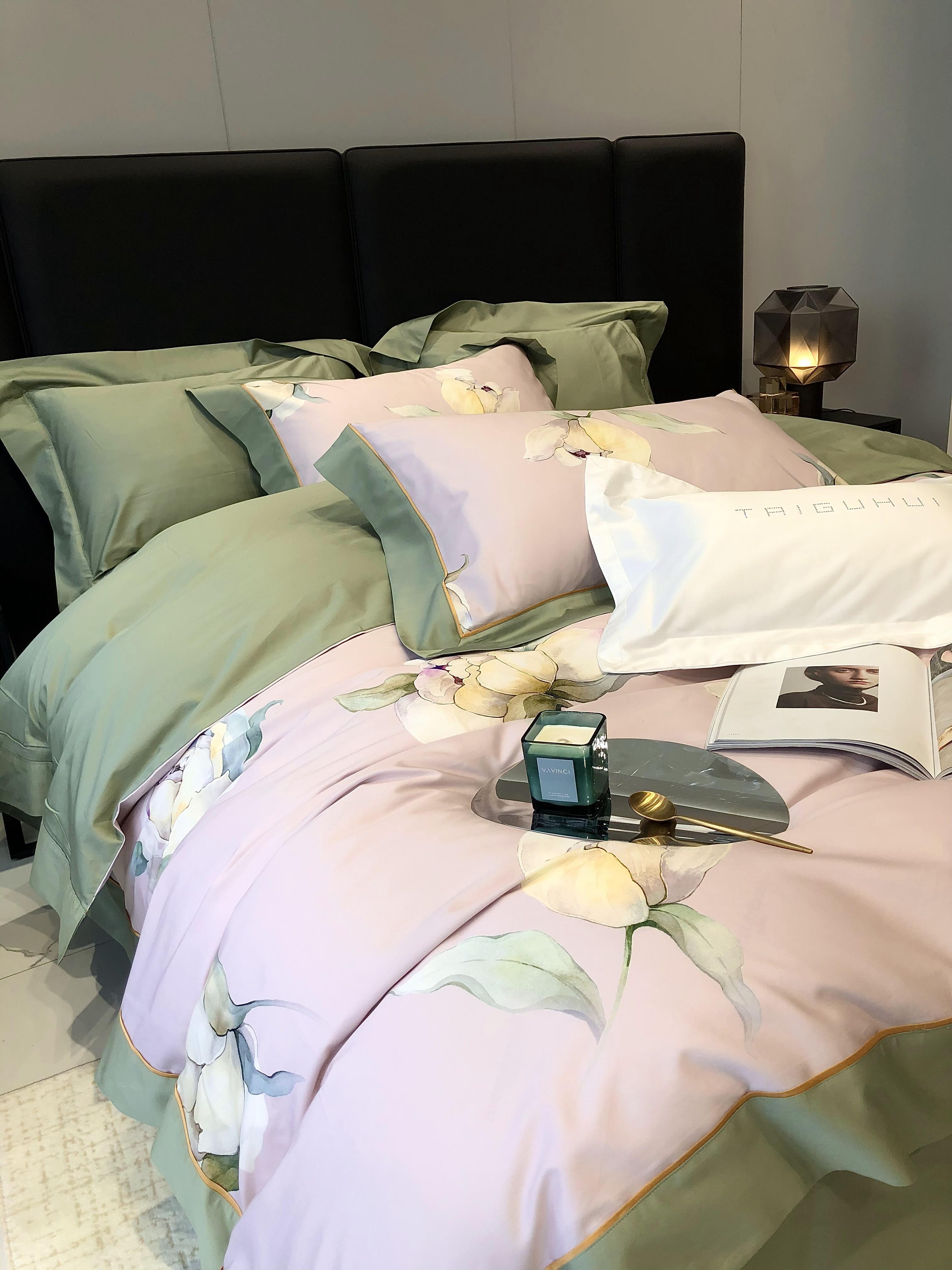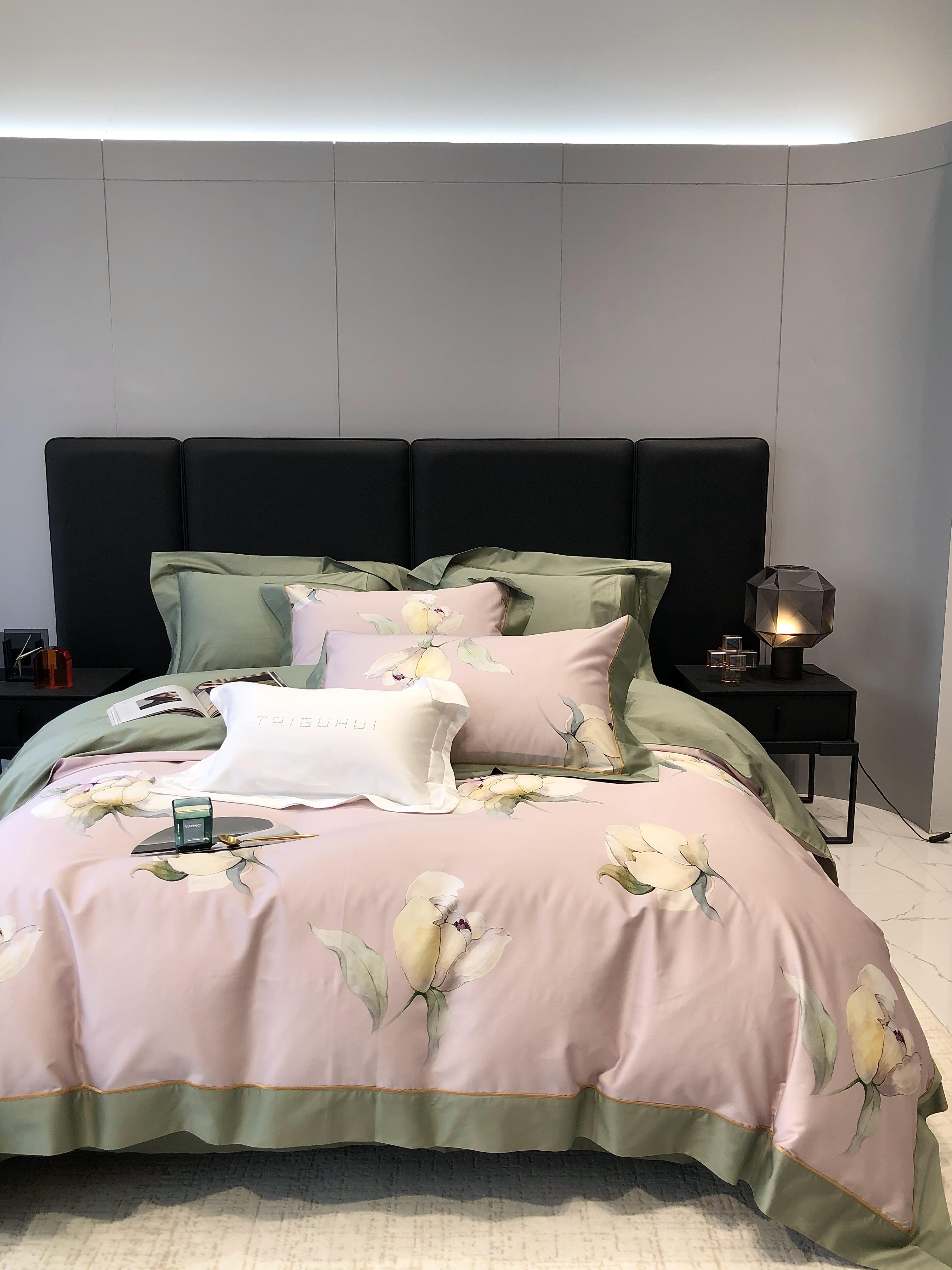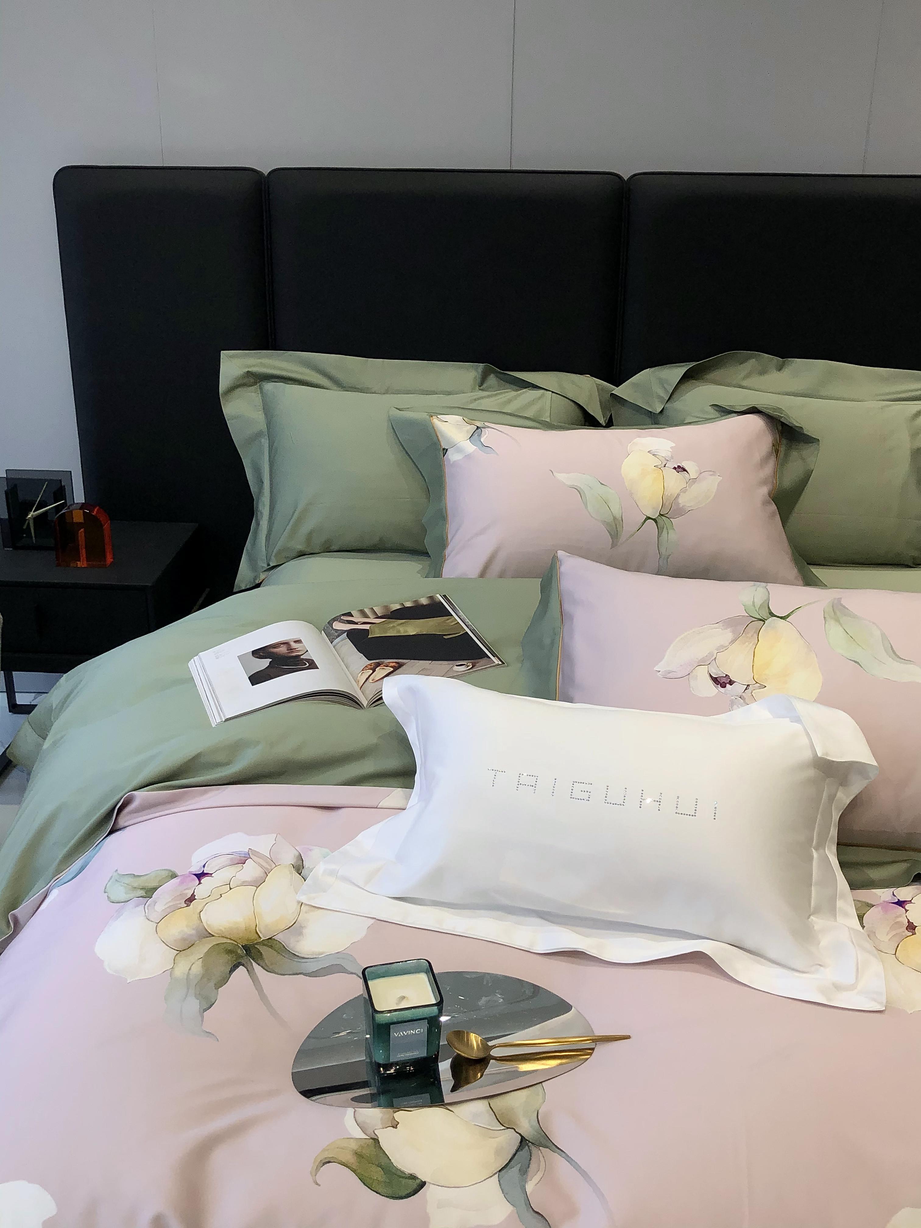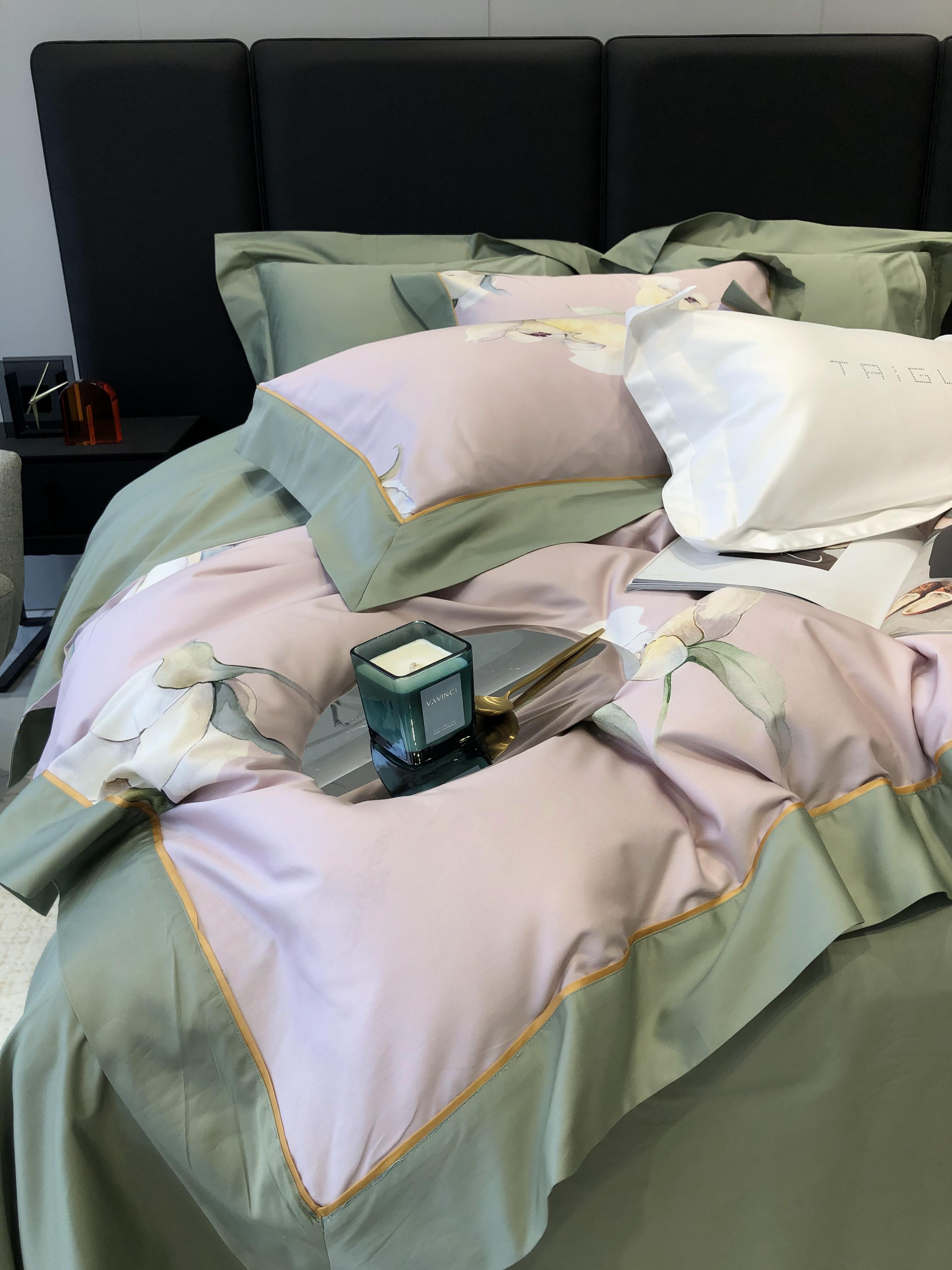 (总)太古汇家居 2025新款活性数码印花四件套,丽奥娜-松石绿,丽奥娜-杏子灰,丽奥娜-樱落紫,莉安娜-粉,莉安娜-卡其,莉安娜-绿,西莉娅-淡紫,西莉娅-粉色