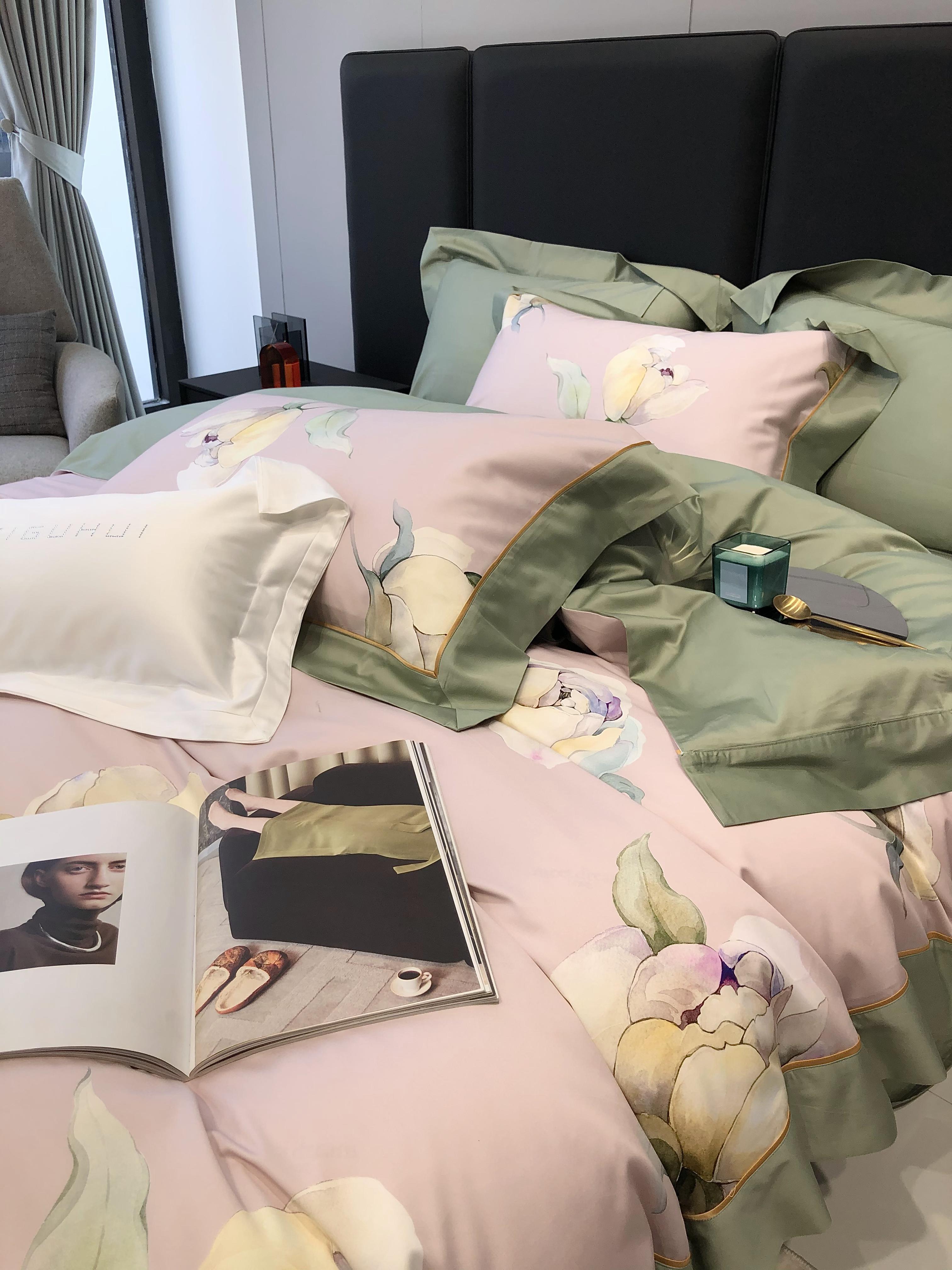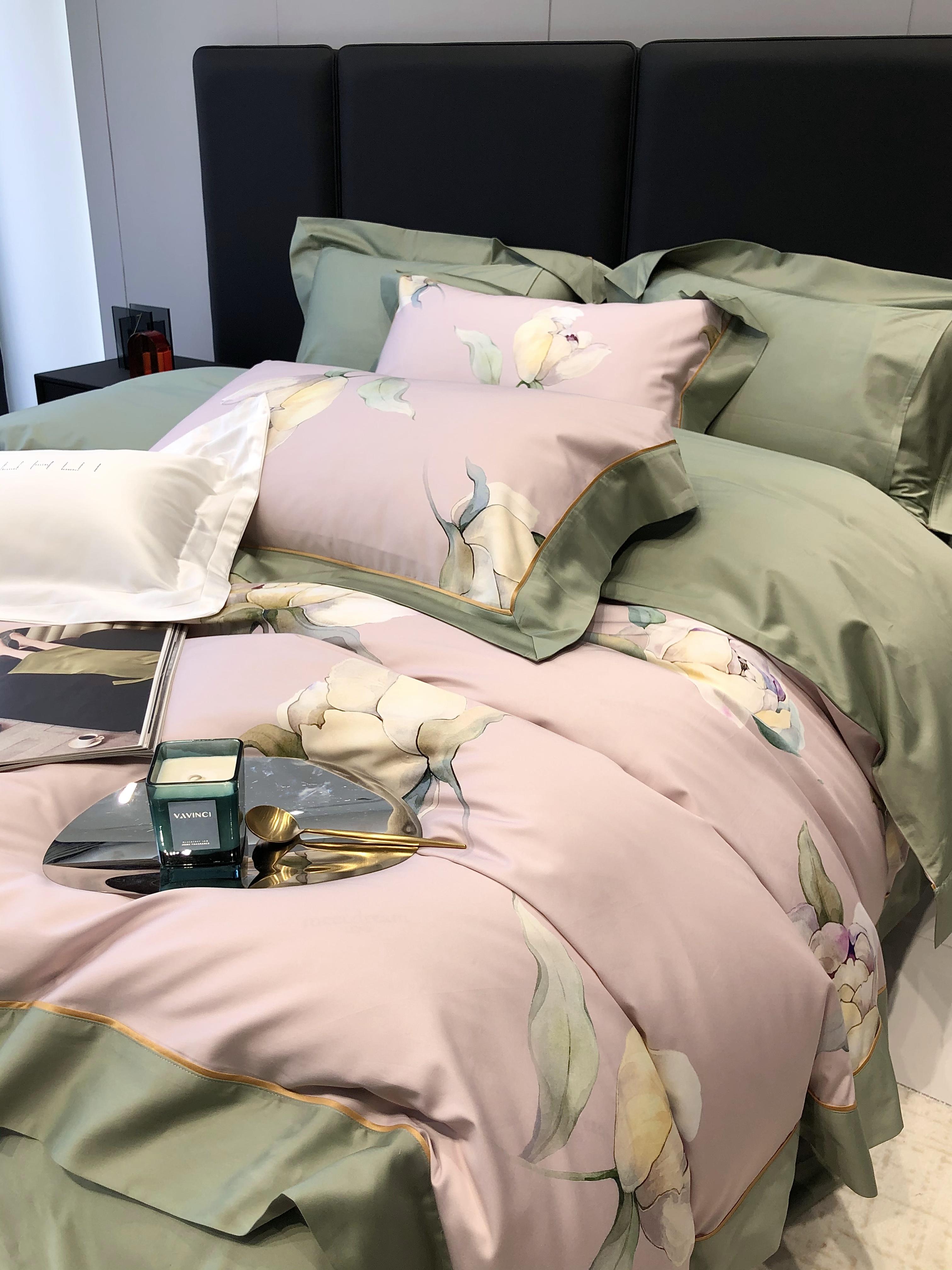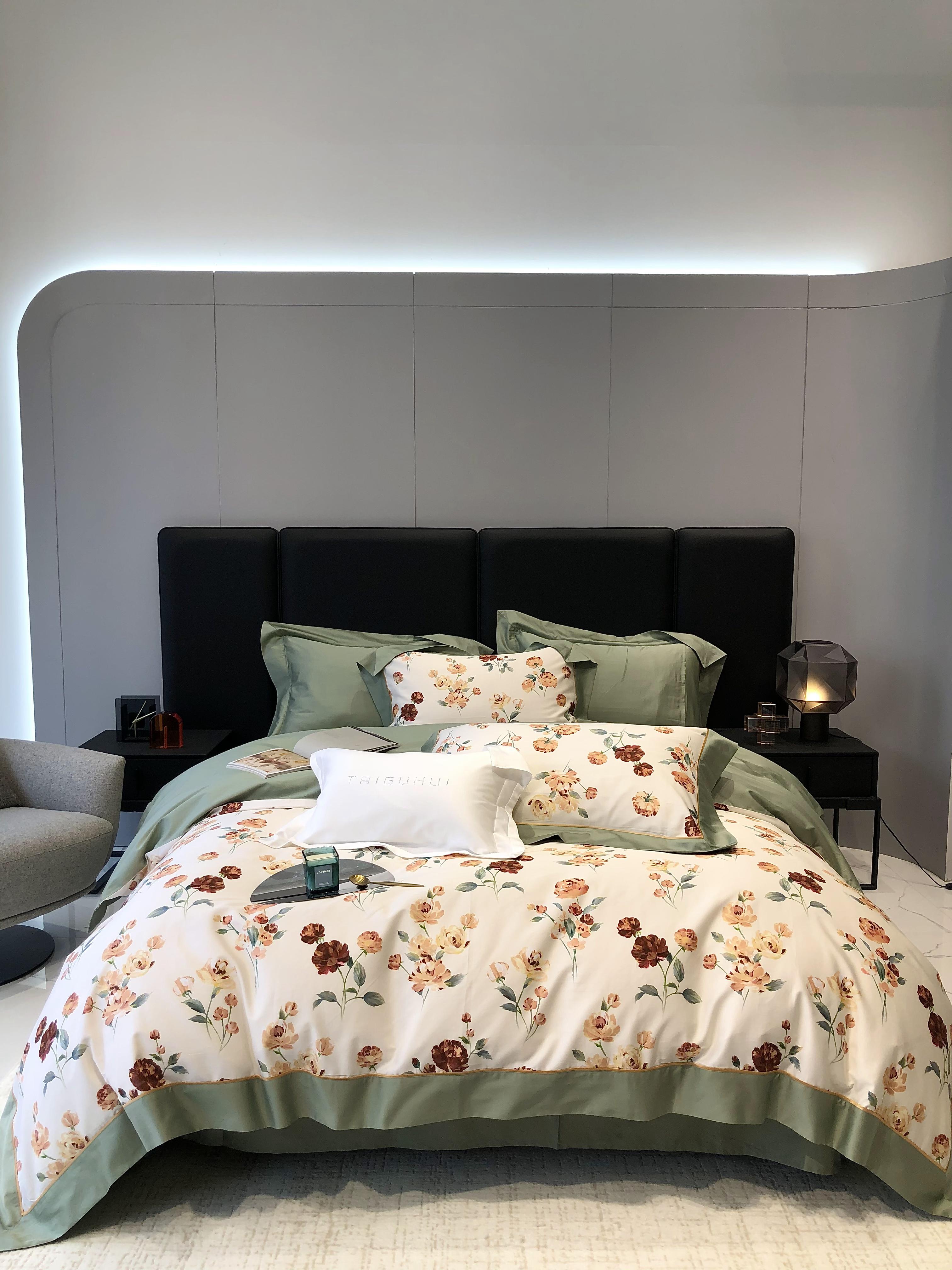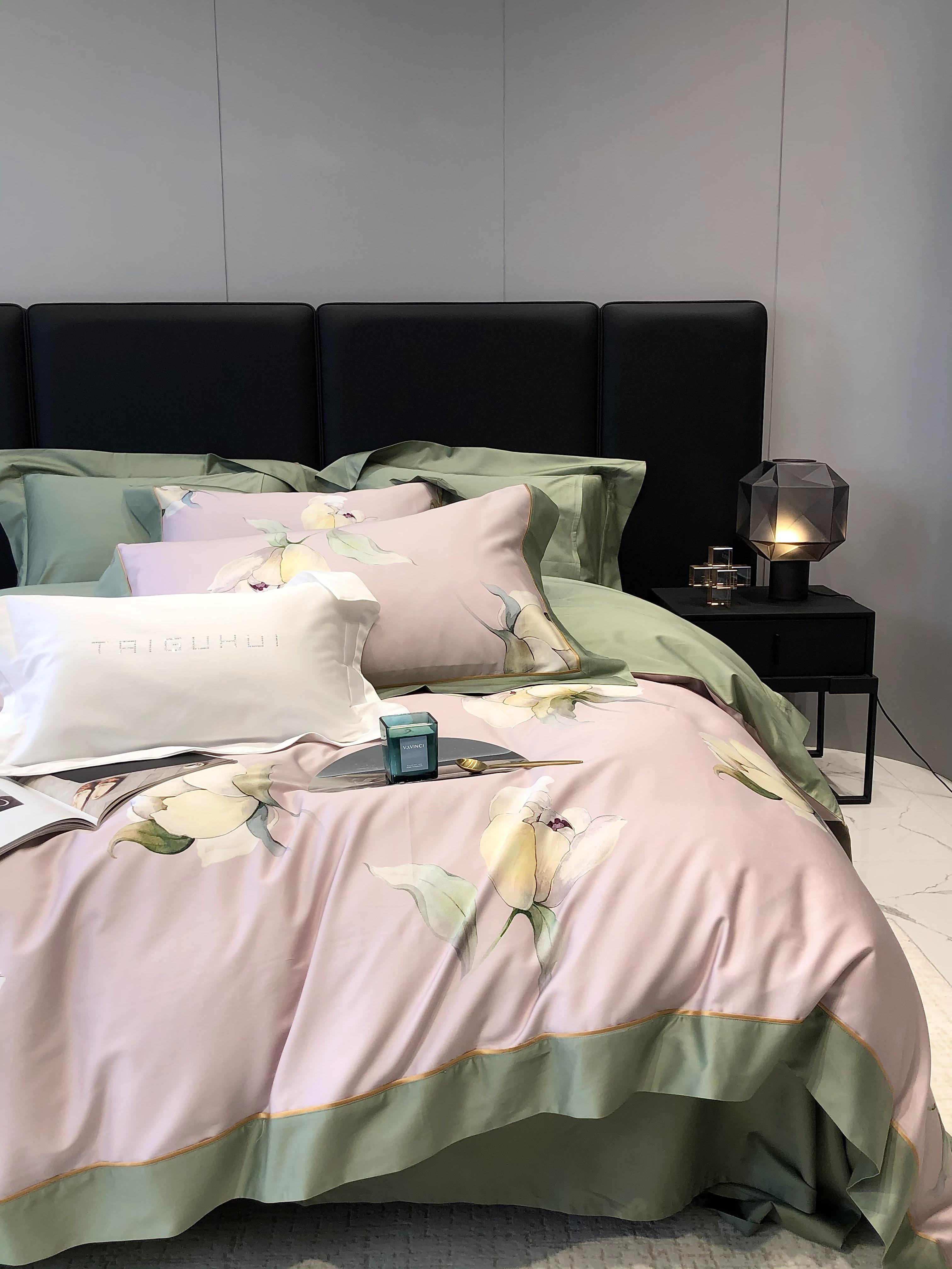 (总)太古汇家居 2025新款活性数码印花四件套,丽奥娜-松石绿,丽奥娜-杏子灰,丽奥娜-樱落紫,莉安娜-粉,莉安娜-卡其,莉安娜-绿,西莉娅-淡紫,西莉娅-粉色