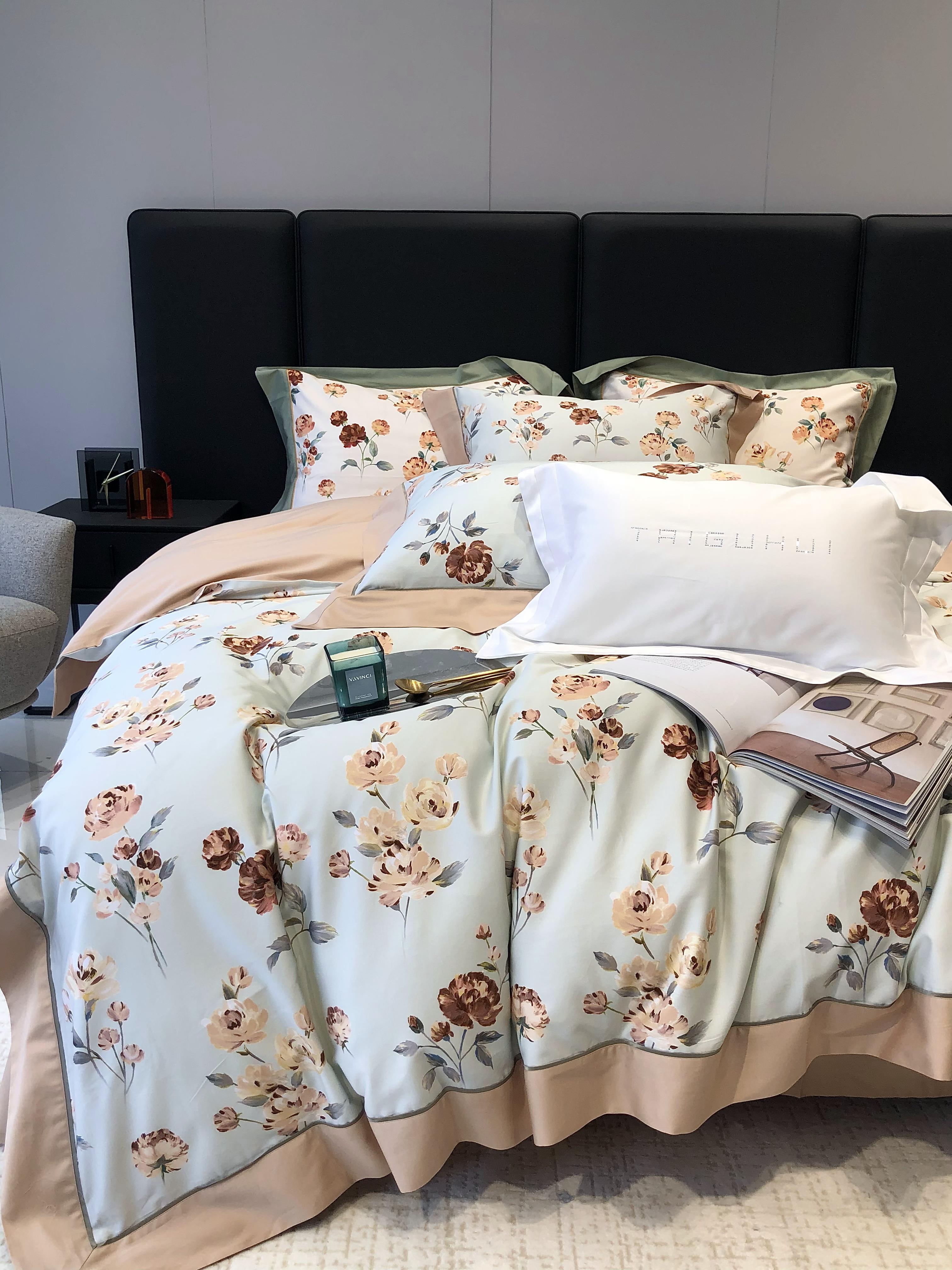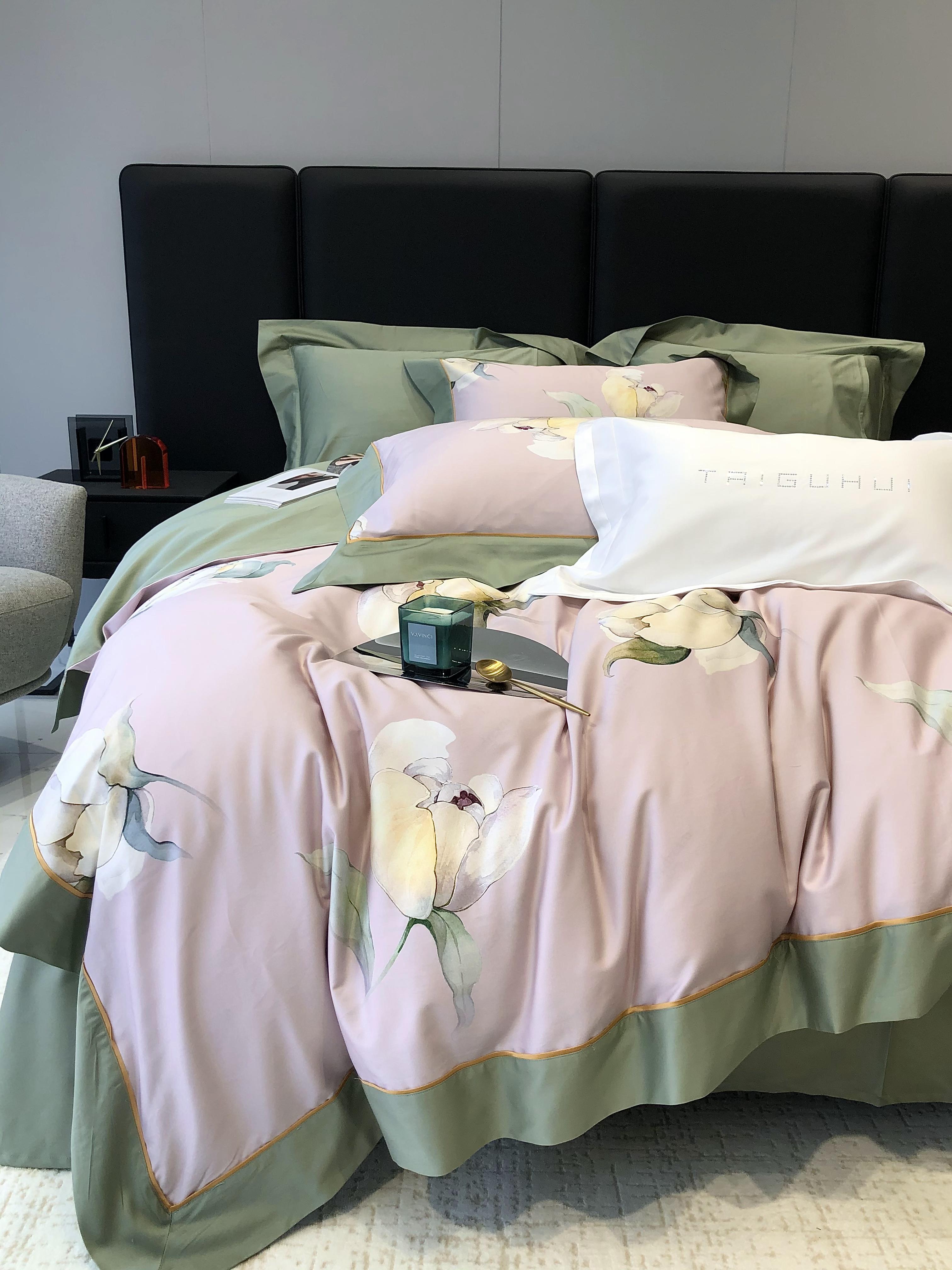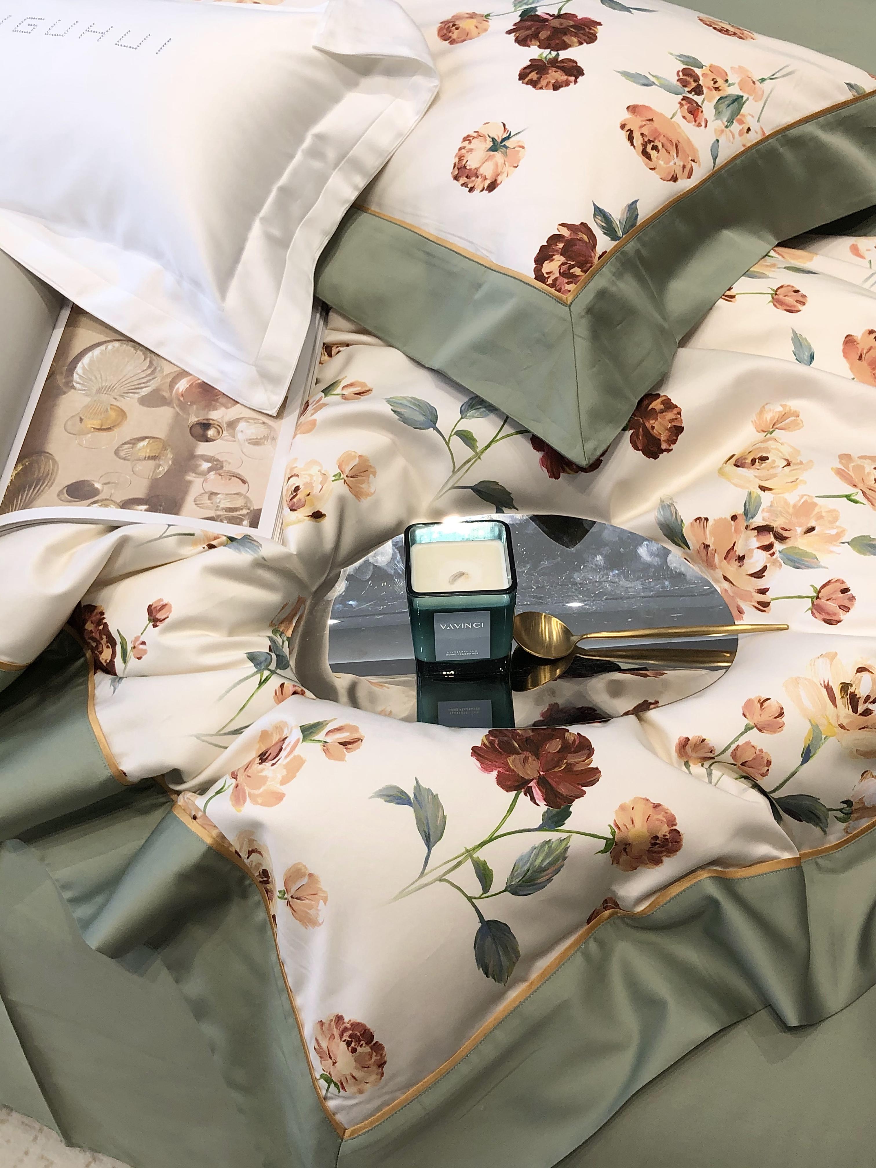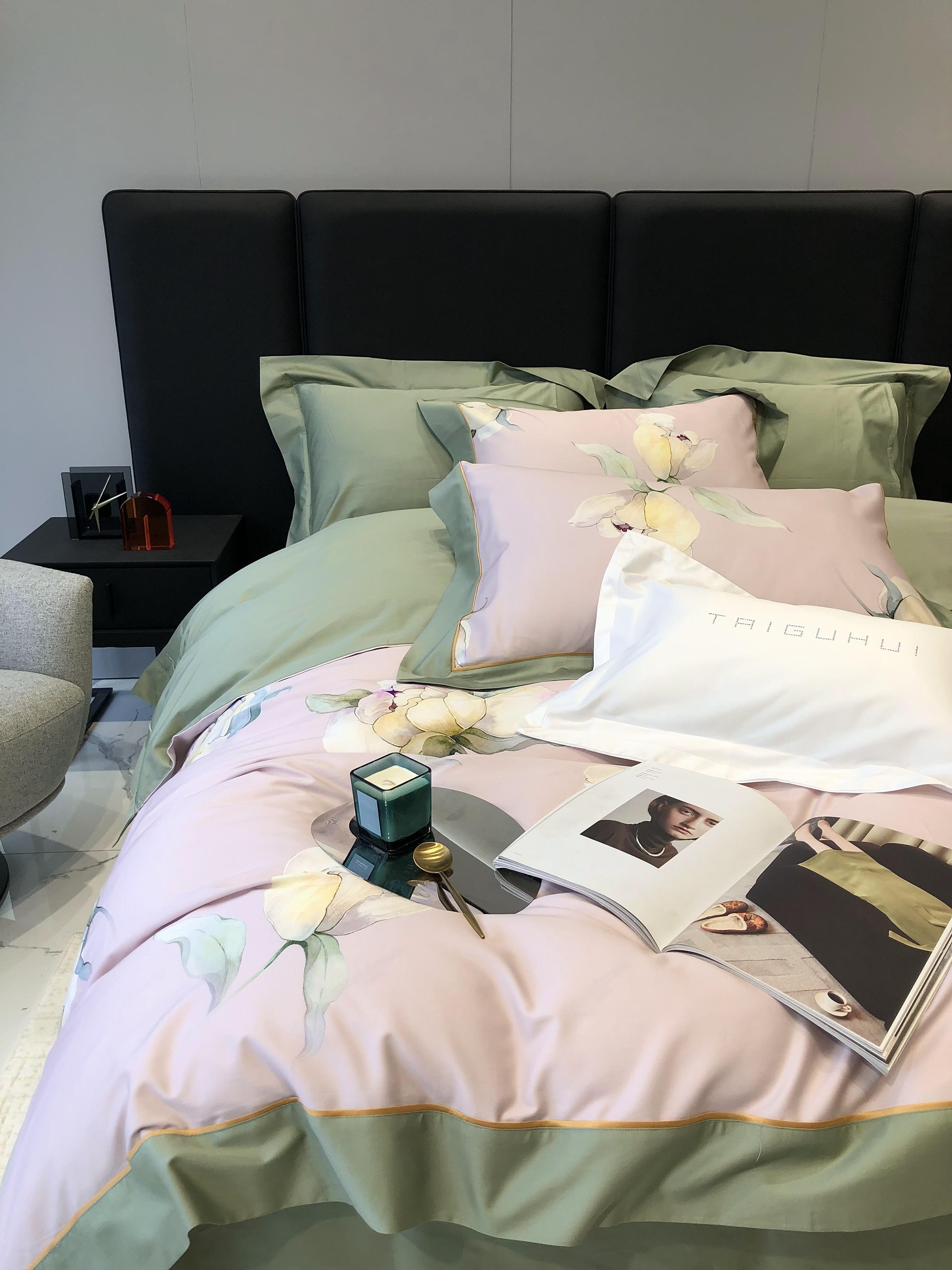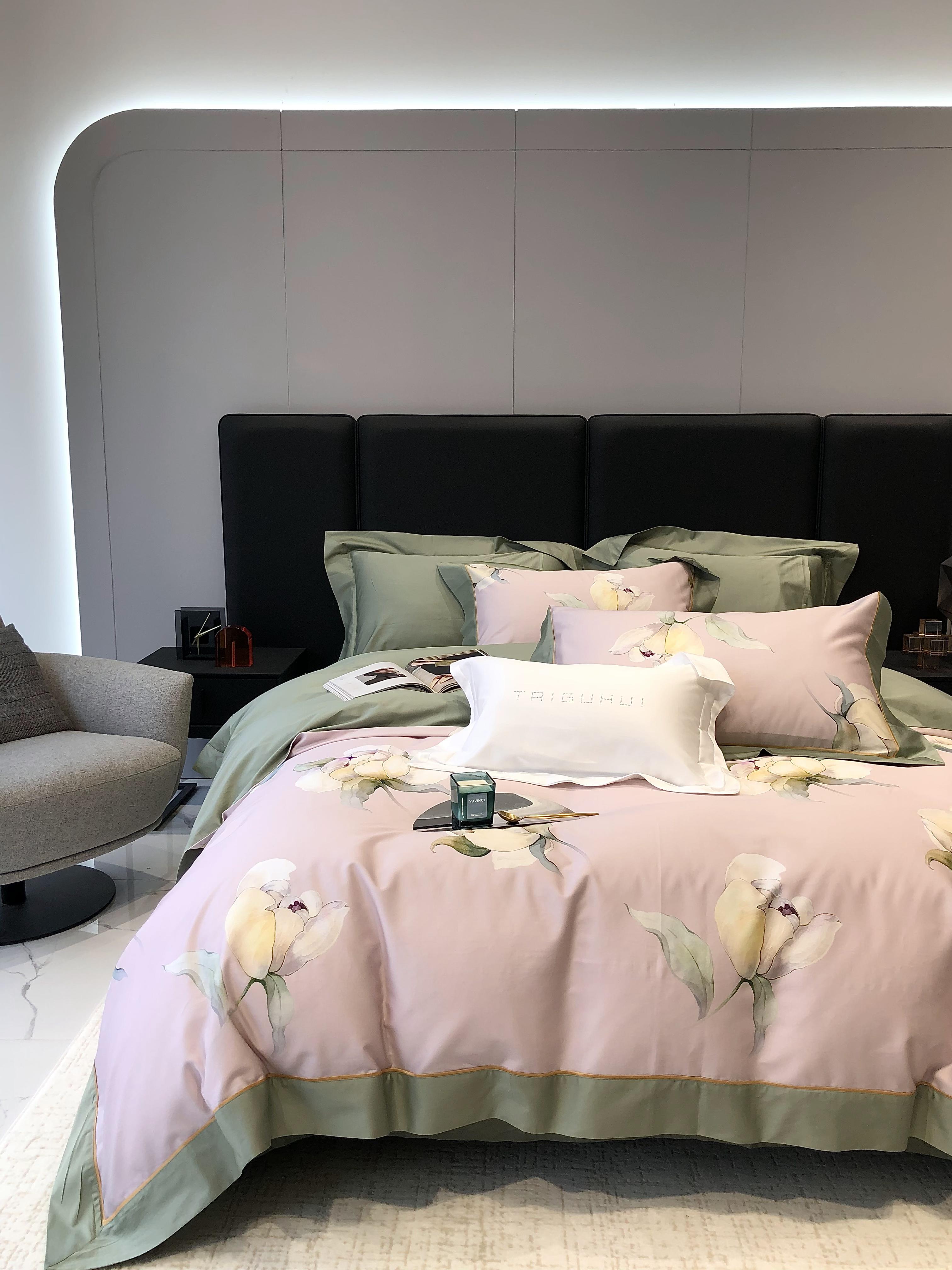 (总)太古汇家居 2025新款活性数码印花四件套,丽奥娜-松石绿,丽奥娜-杏子灰,丽奥娜-樱落紫,莉安娜-粉,莉安娜-卡其,莉安娜-绿,西莉娅-淡紫,西莉娅-粉色