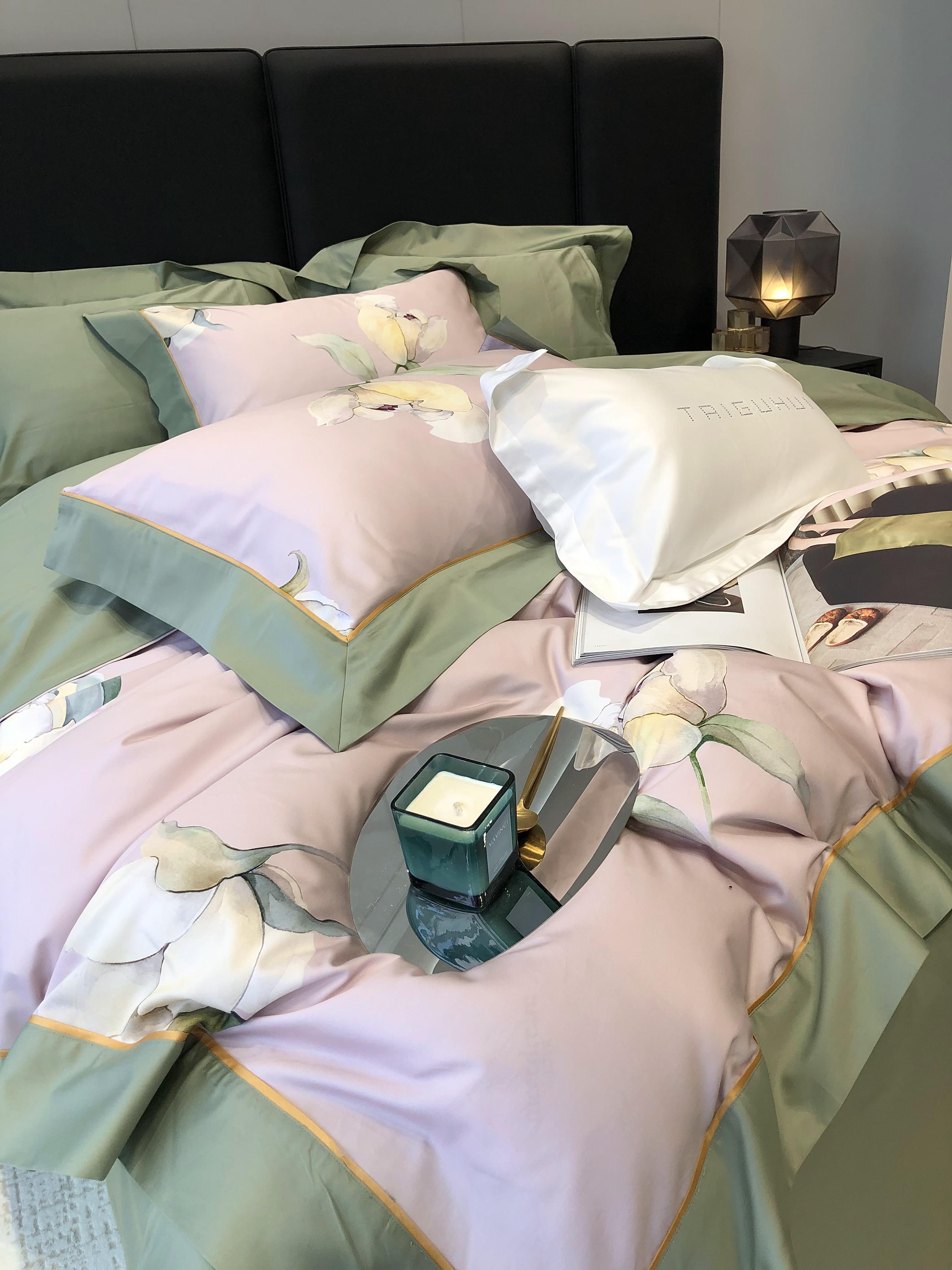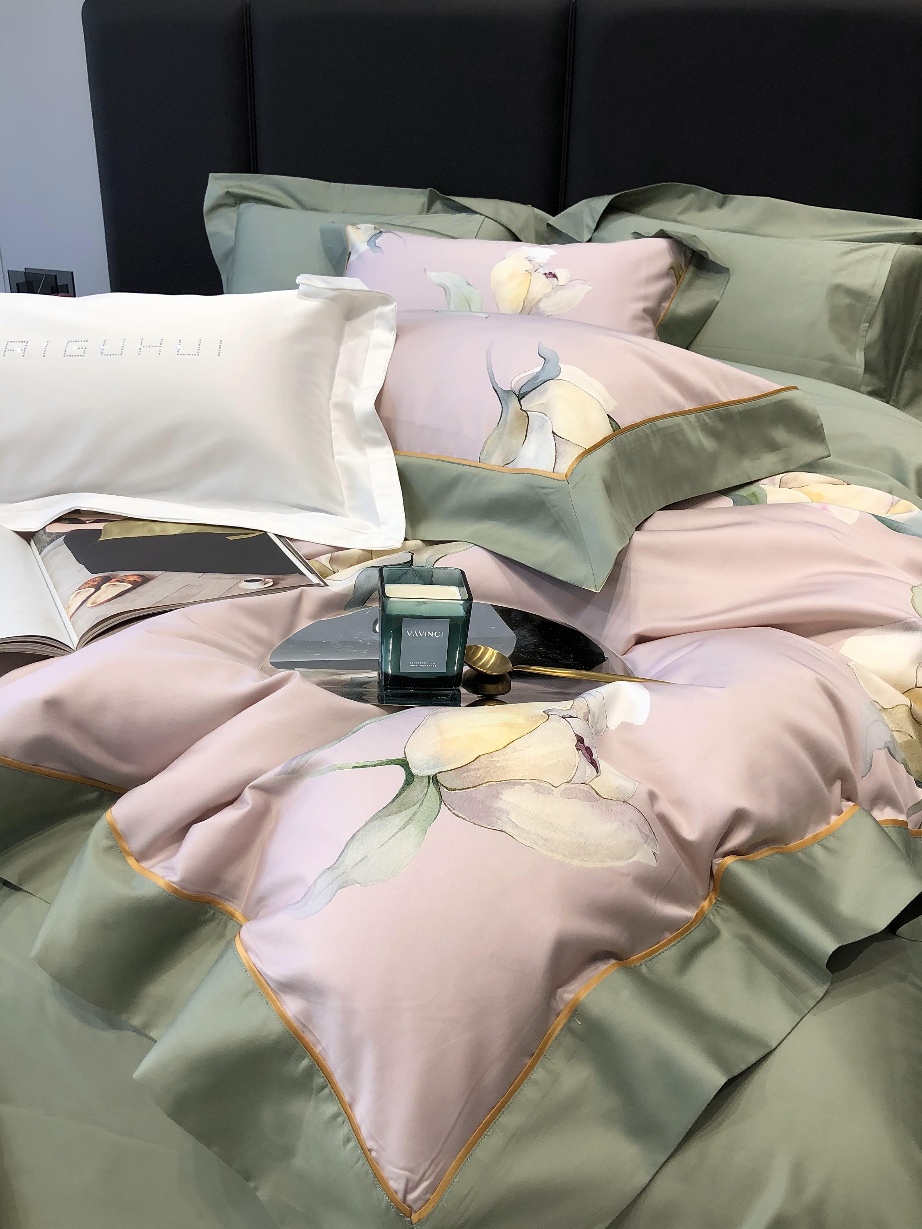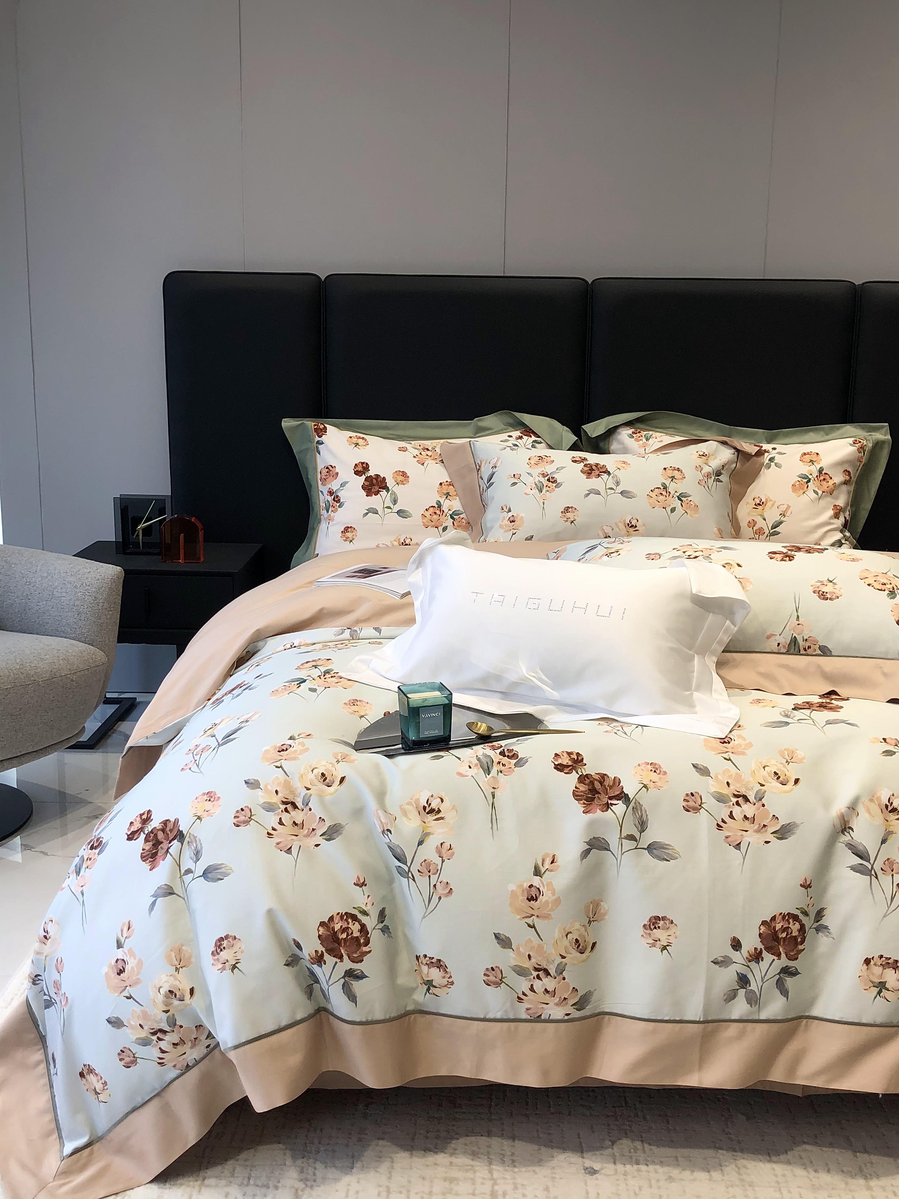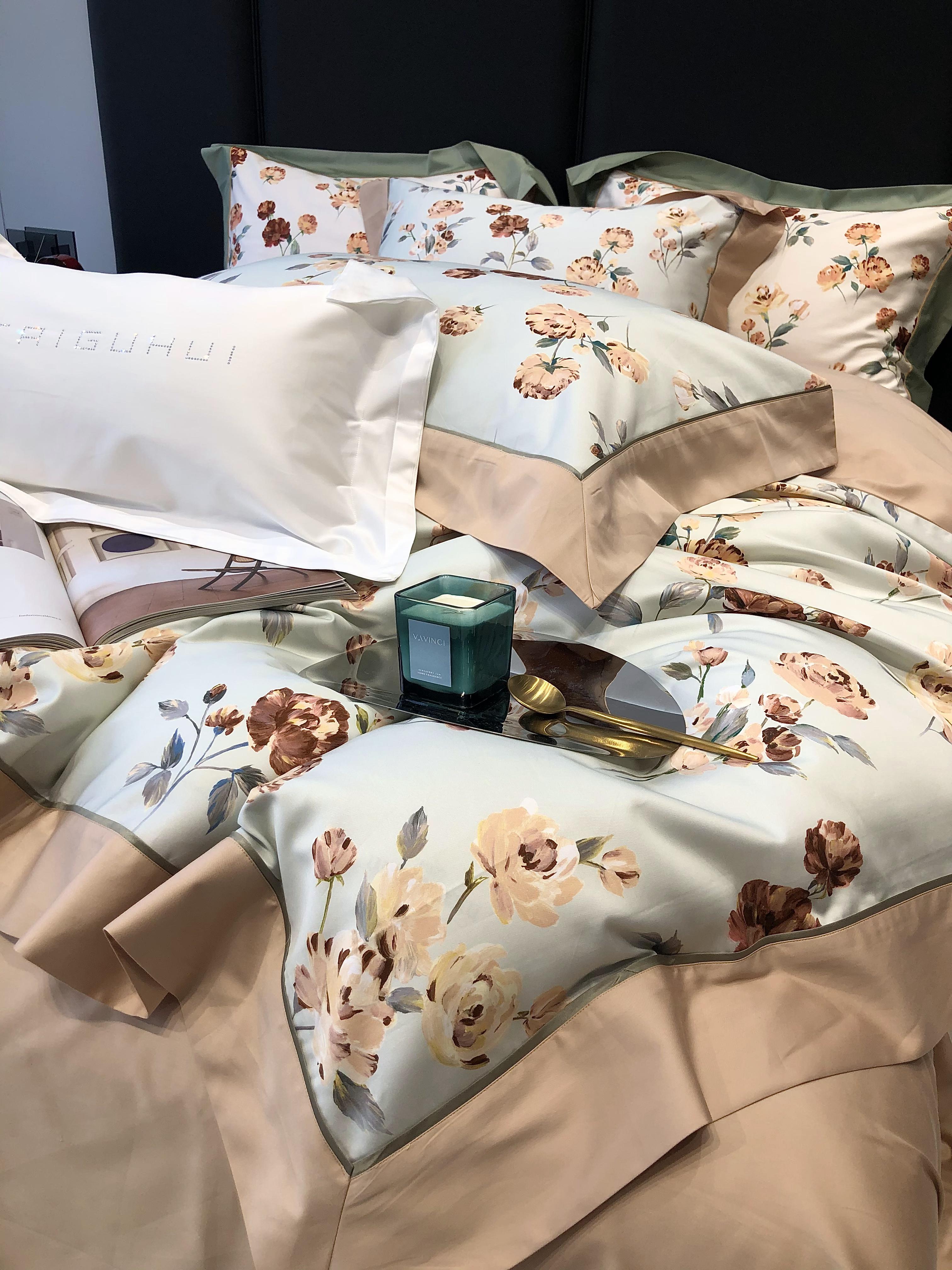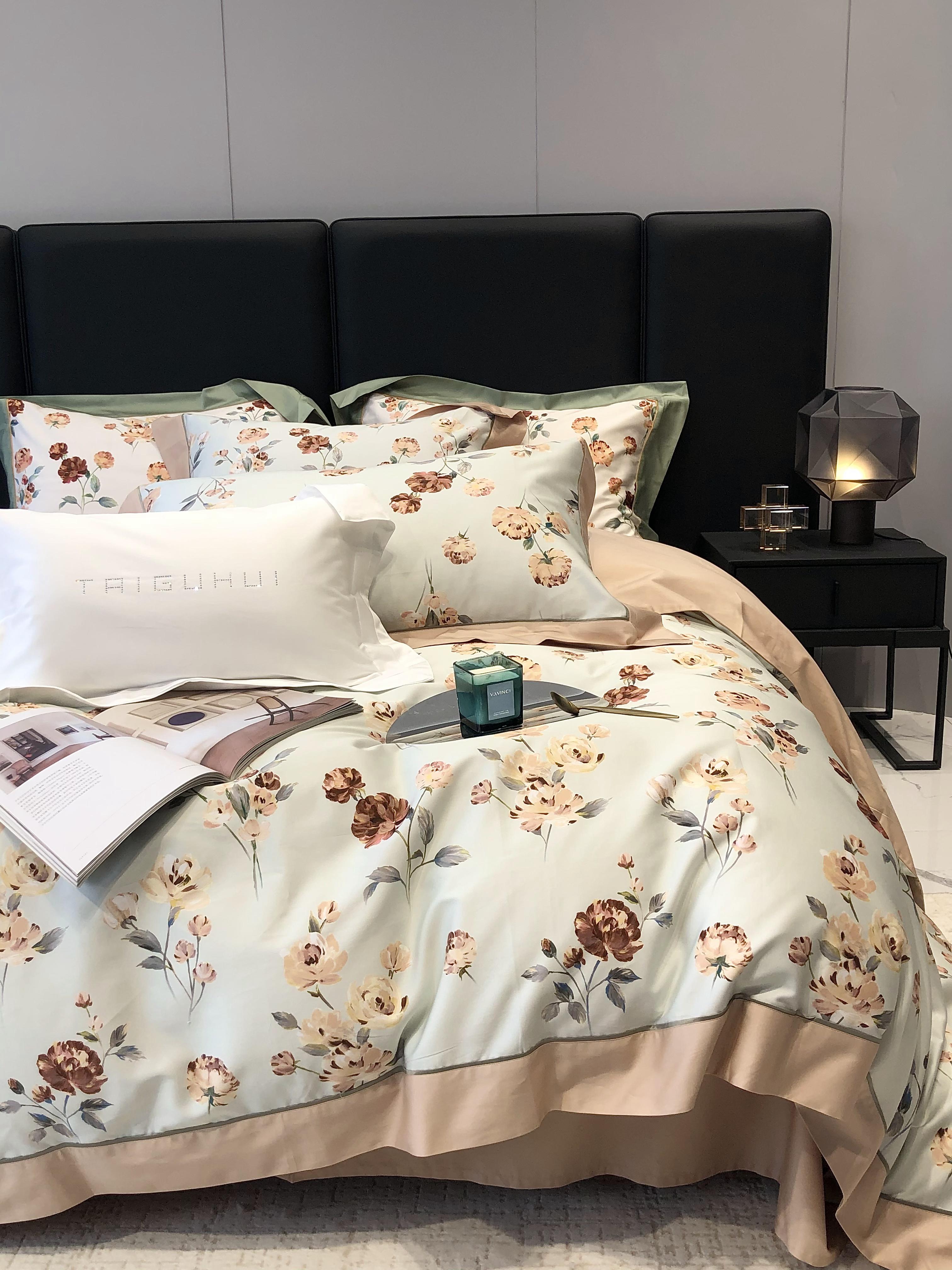 (总)太古汇家居 2025新款活性数码印花四件套,丽奥娜-松石绿,丽奥娜-杏子灰,丽奥娜-樱落紫,莉安娜-粉,莉安娜-卡其,莉安娜-绿,西莉娅-淡紫,西莉娅-粉色