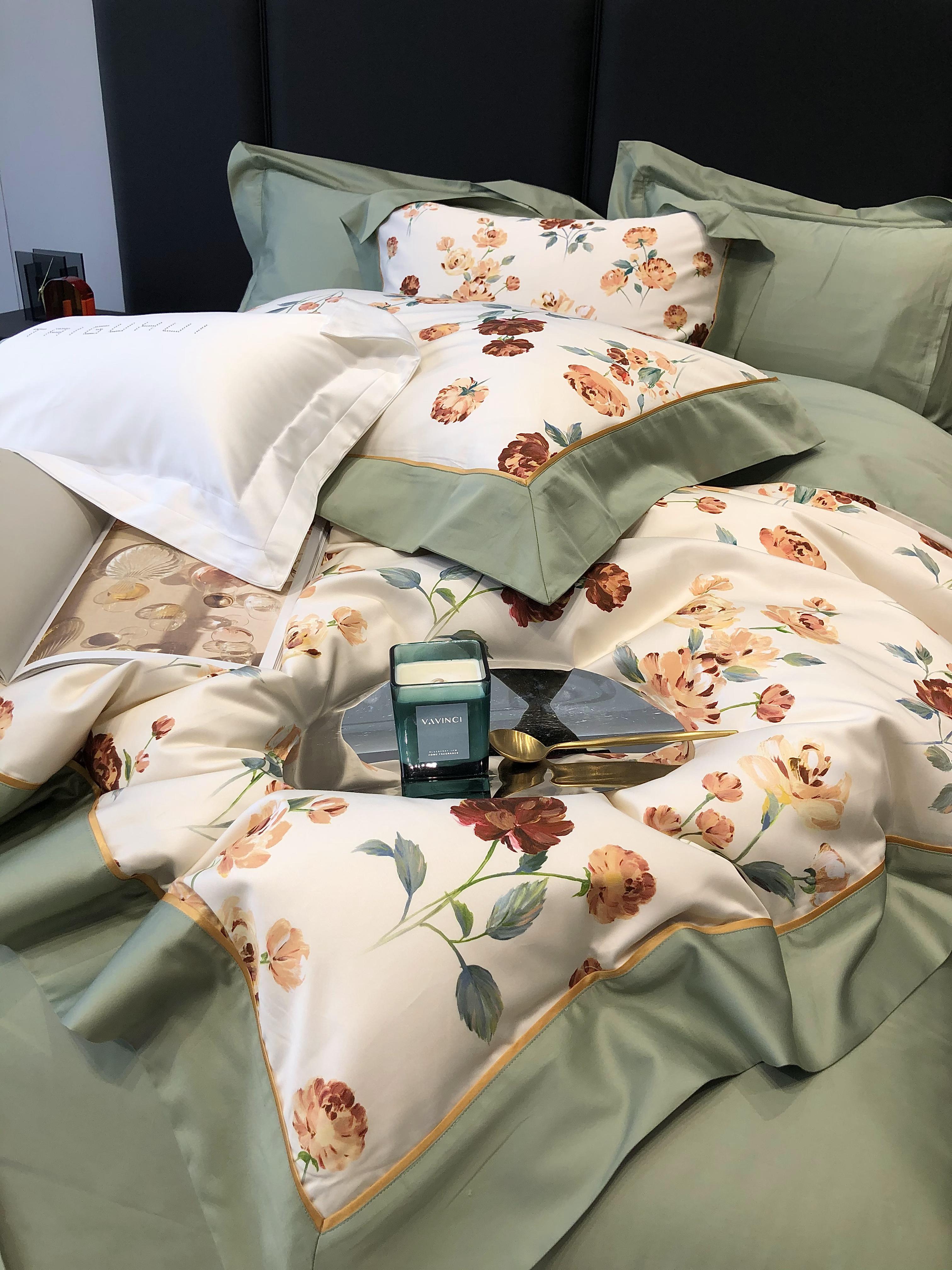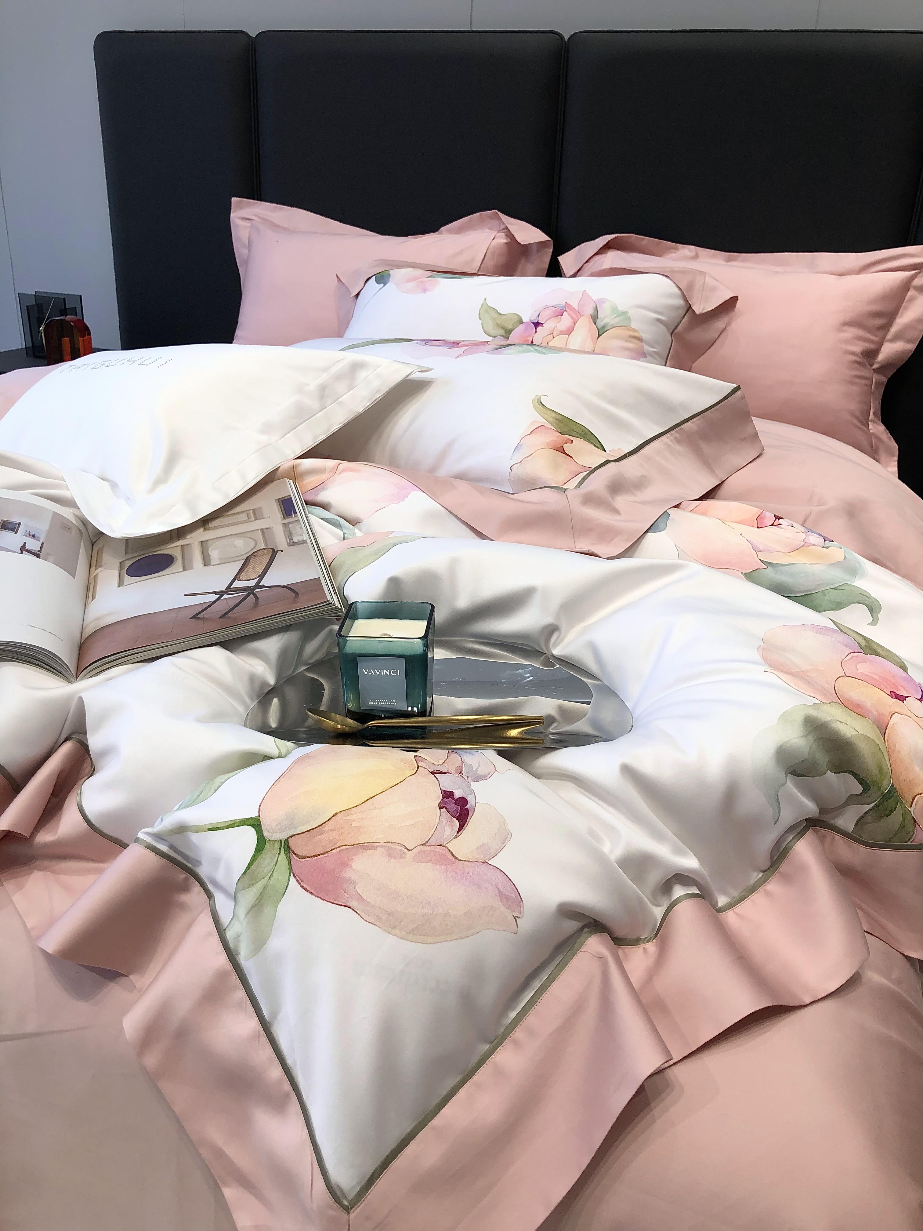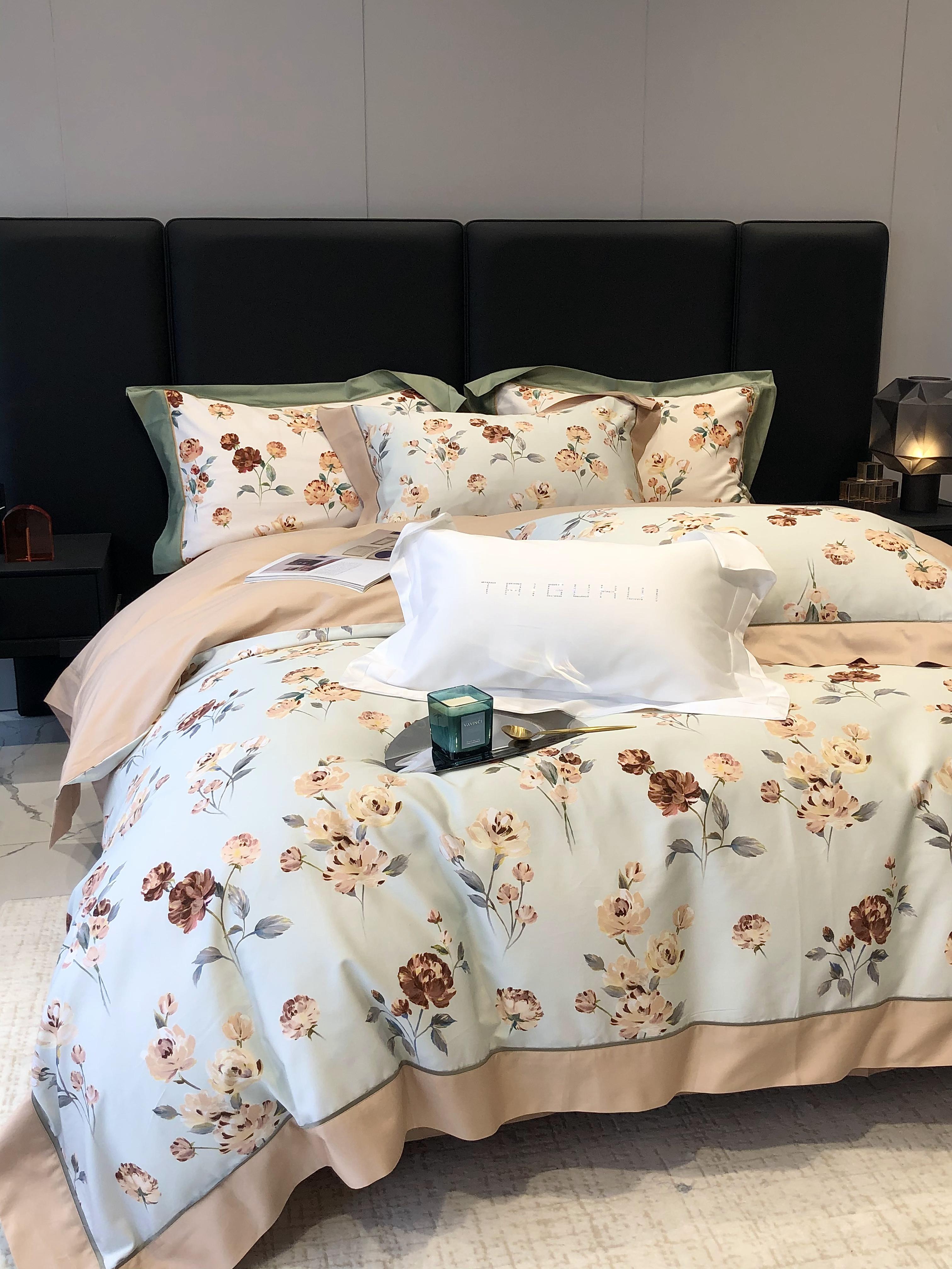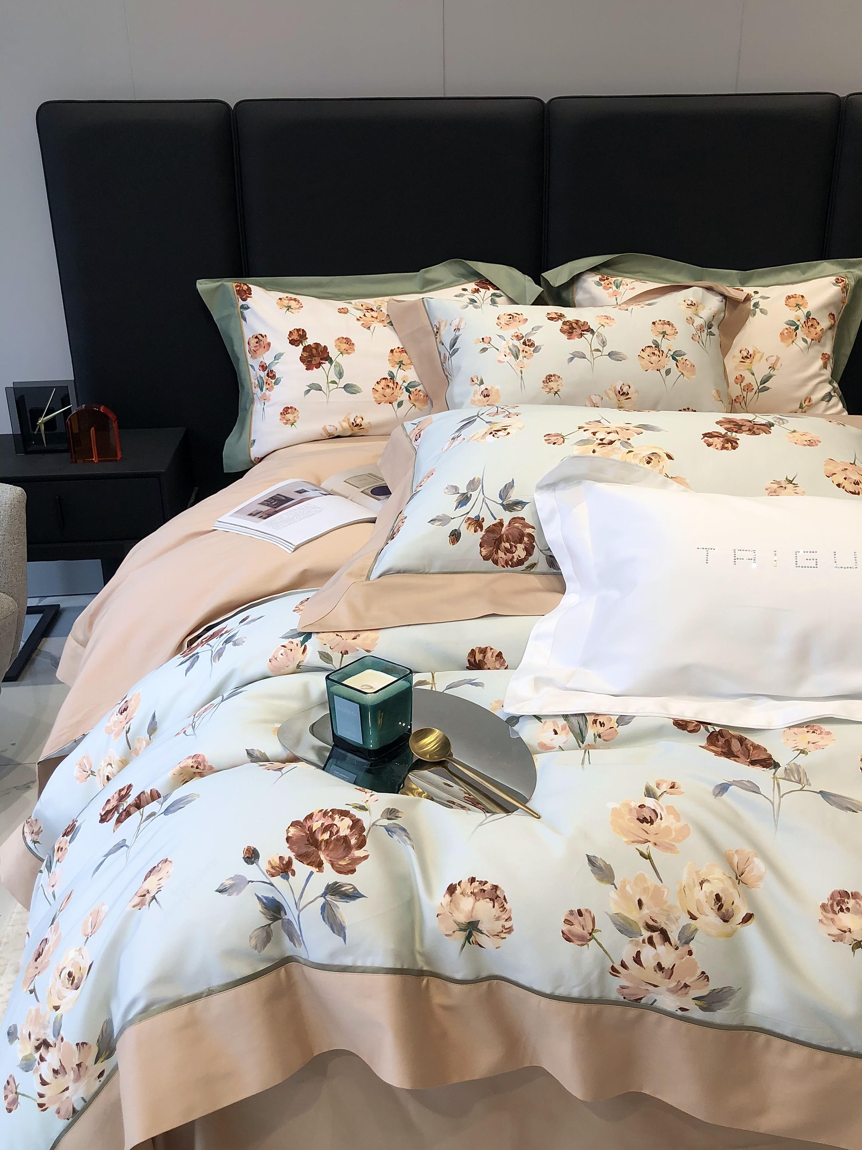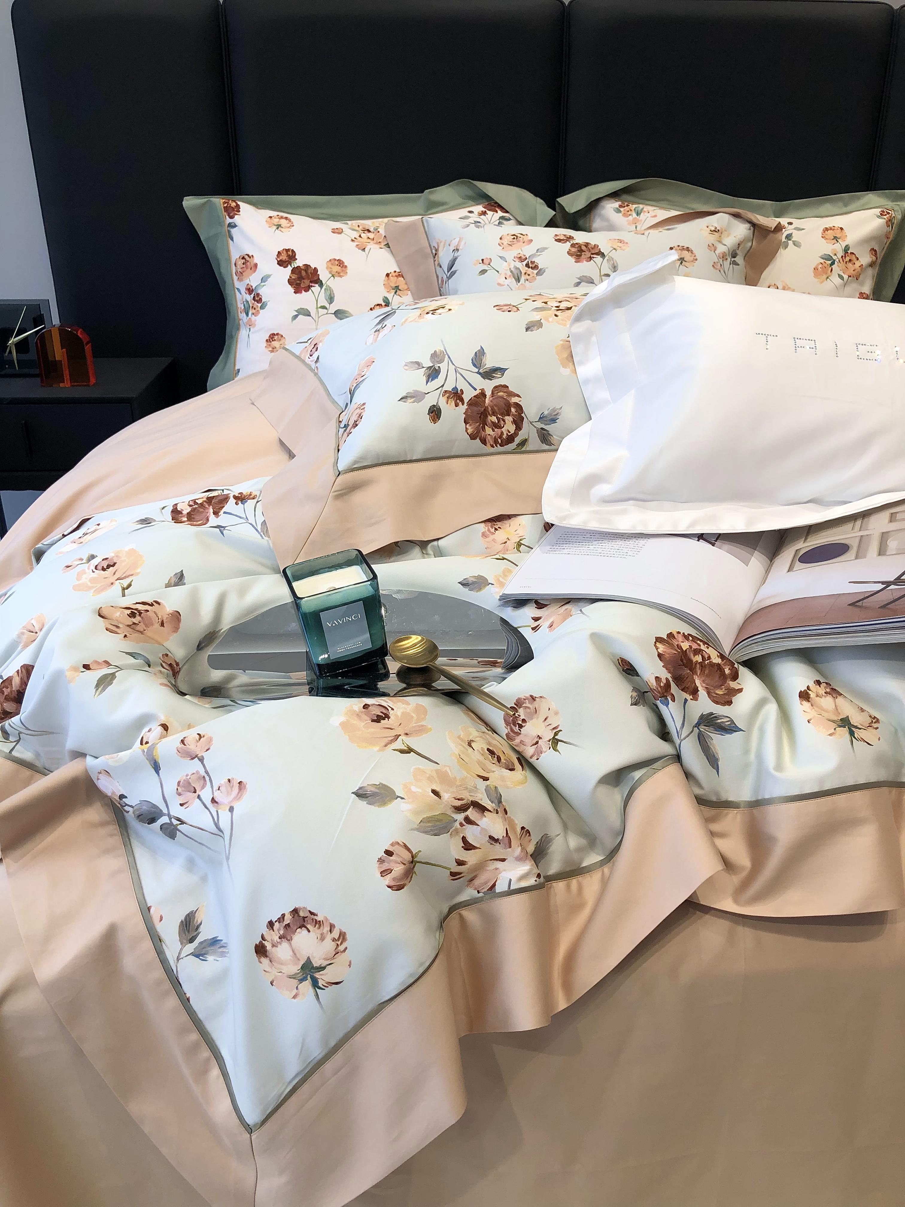 (总)太古汇家居 2025新款活性数码印花四件套,丽奥娜-松石绿,丽奥娜-杏子灰,丽奥娜-樱落紫,莉安娜-粉,莉安娜-卡其,莉安娜-绿,西莉娅-淡紫,西莉娅-粉色