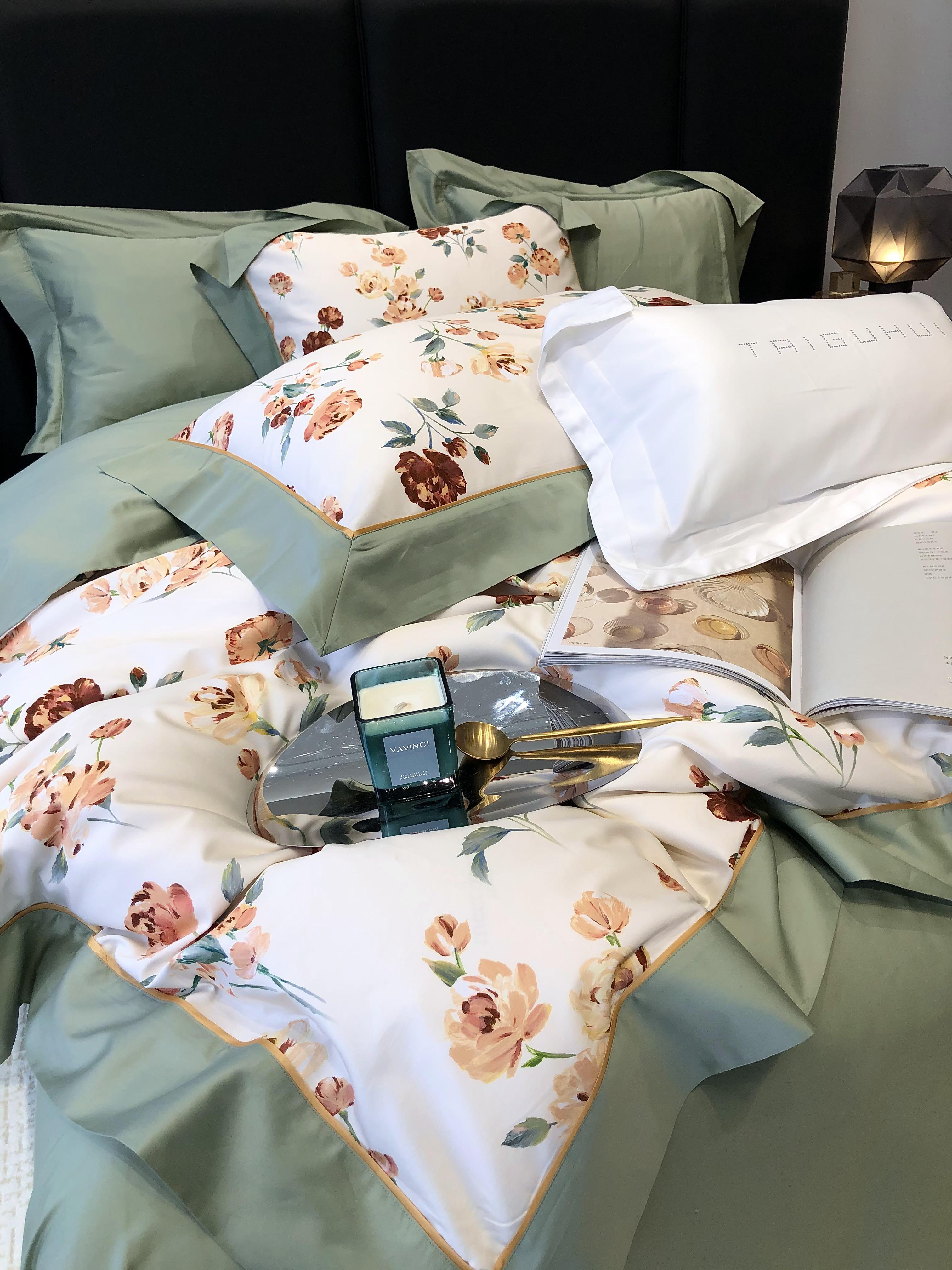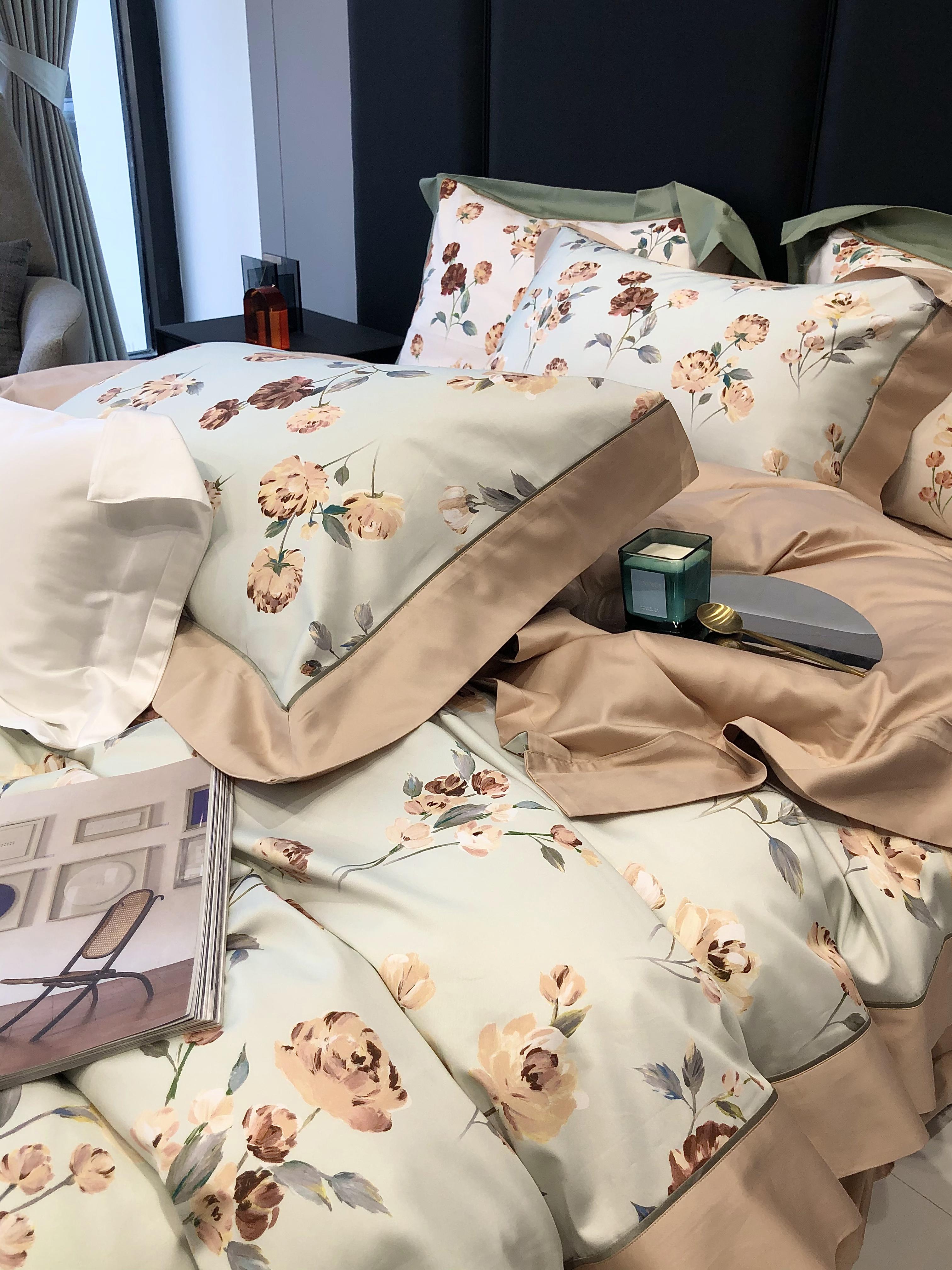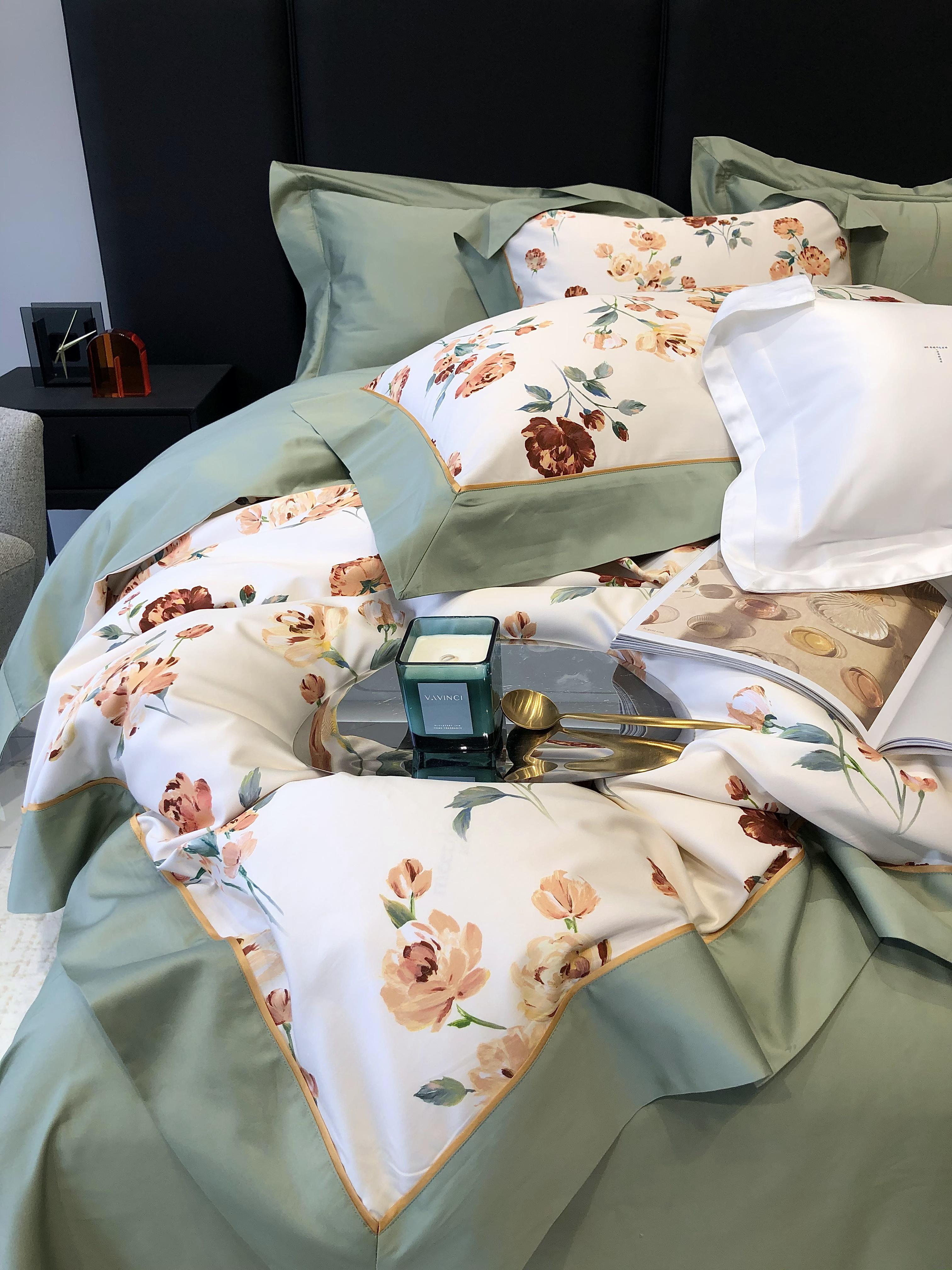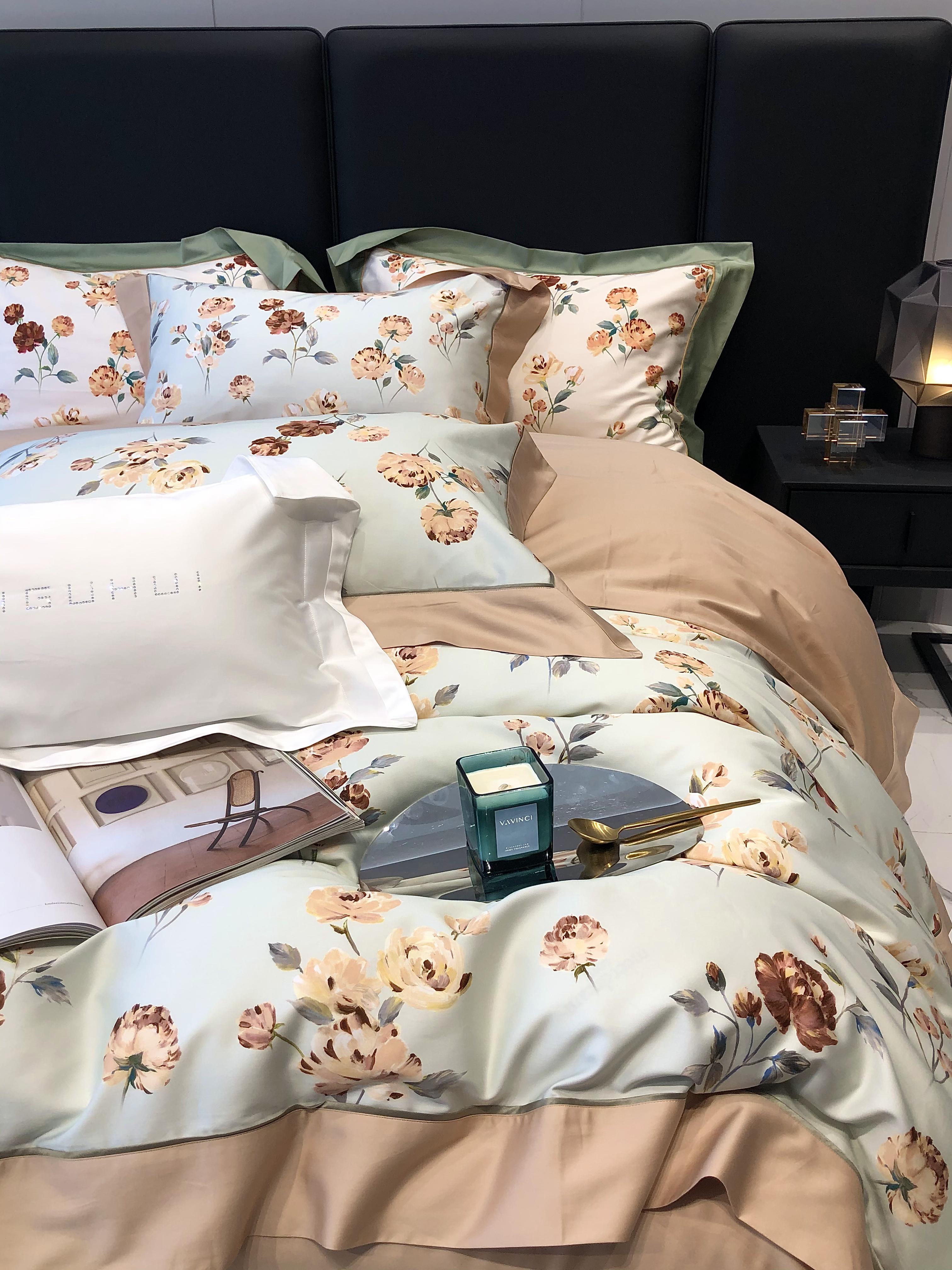 (总)太古汇家居 2025新款活性数码印花四件套,丽奥娜-松石绿,丽奥娜-杏子灰,丽奥娜-樱落紫,莉安娜-粉,莉安娜-卡其,莉安娜-绿,西莉娅-淡紫,西莉娅-粉色