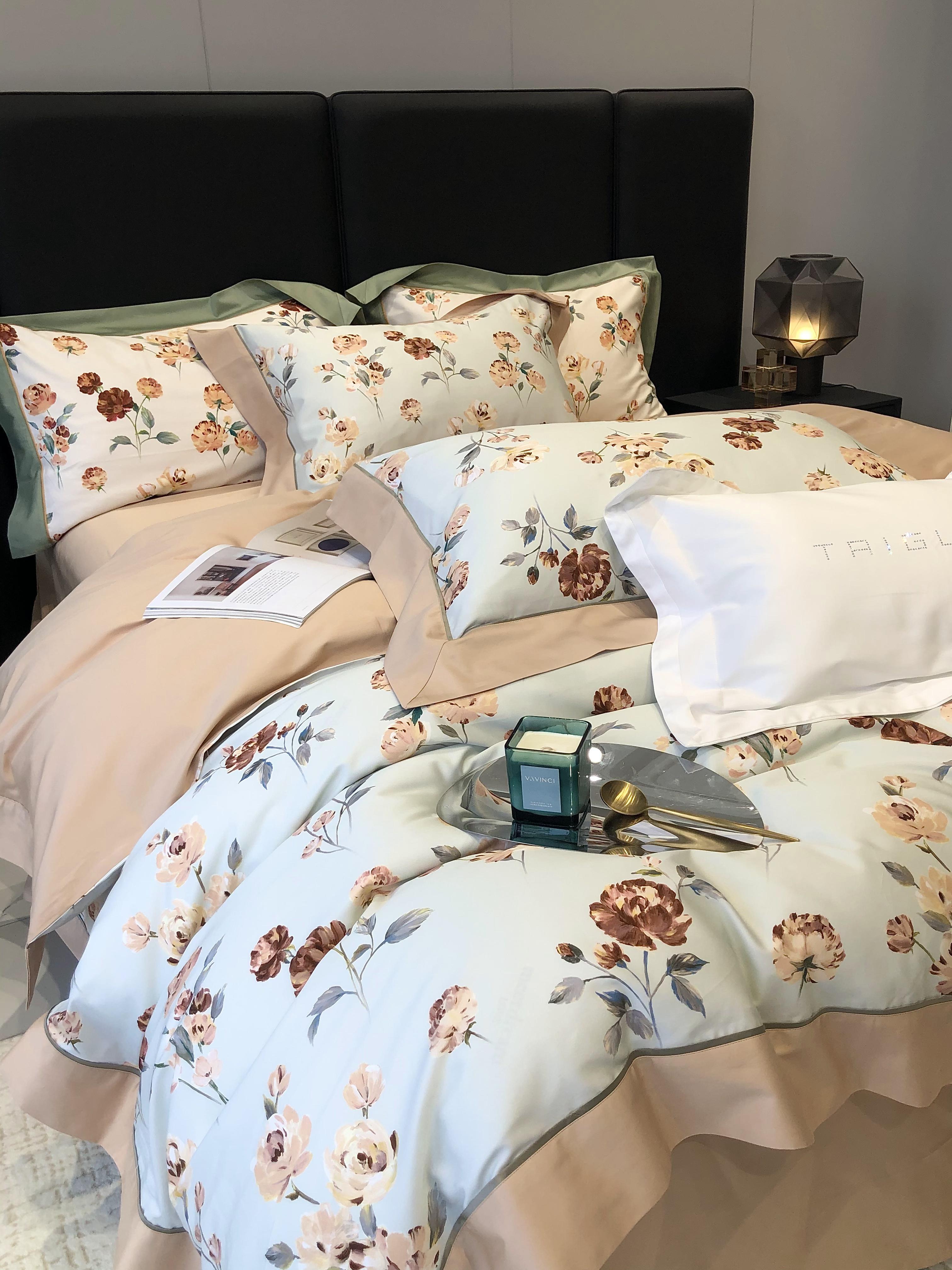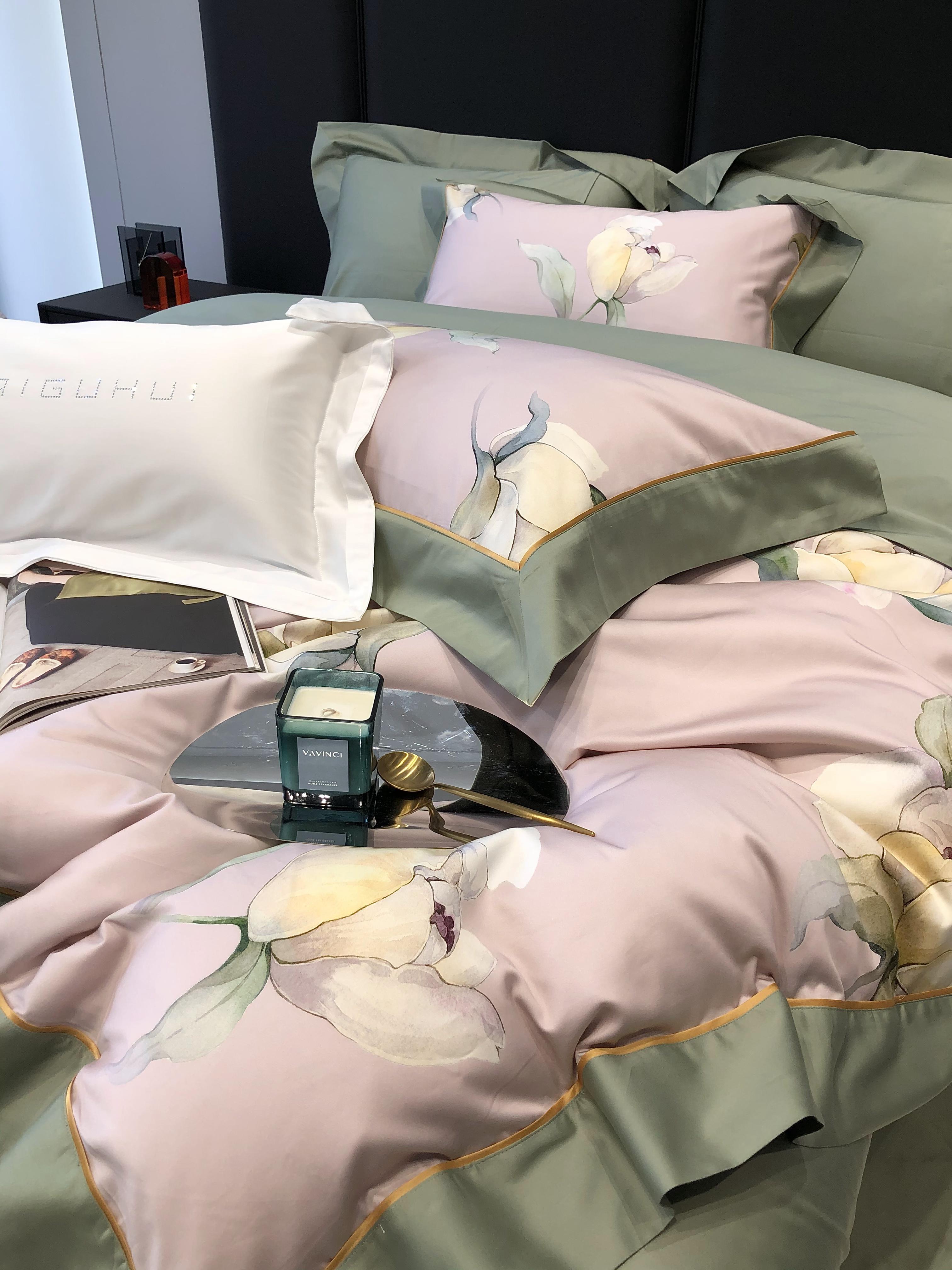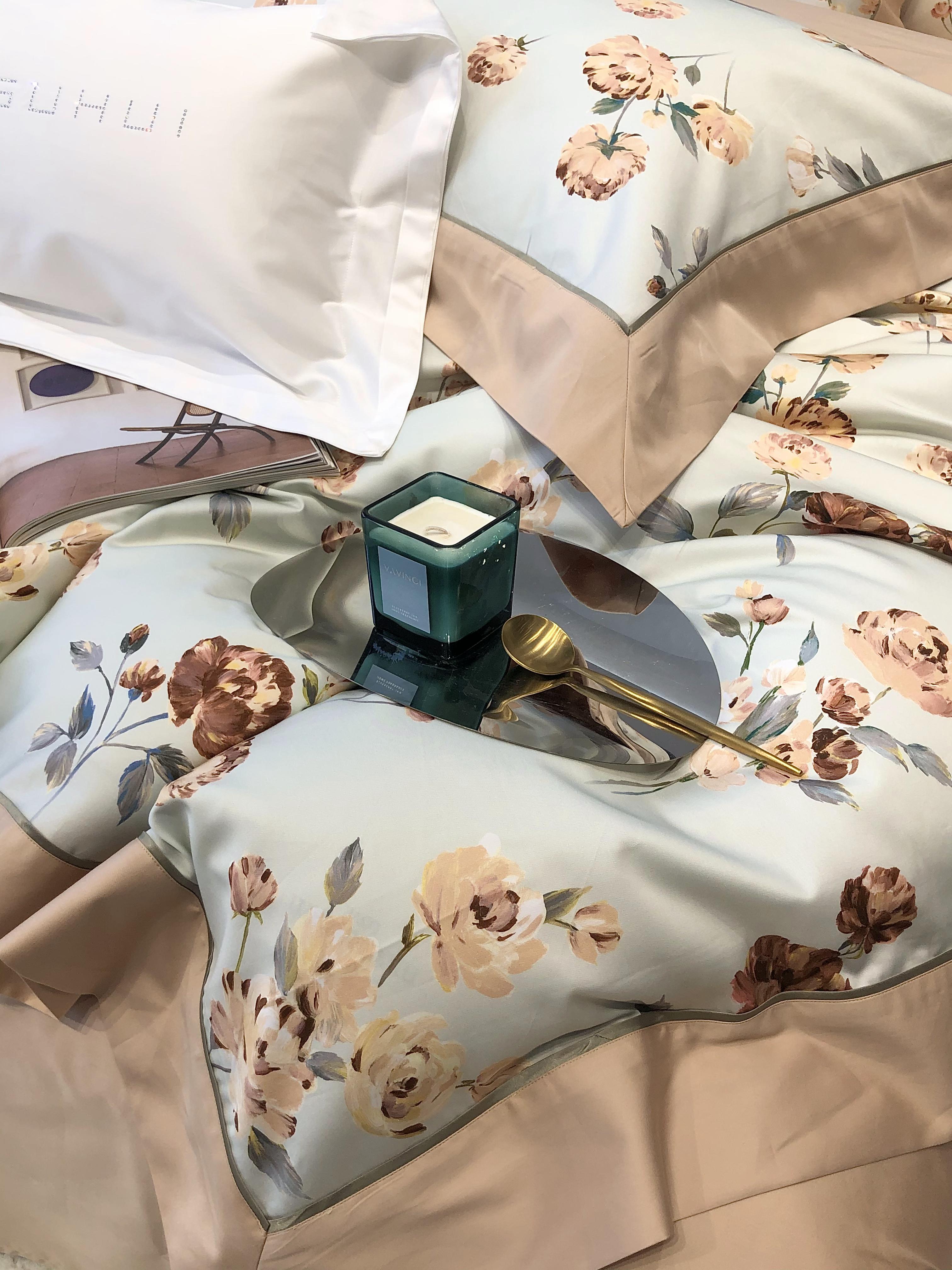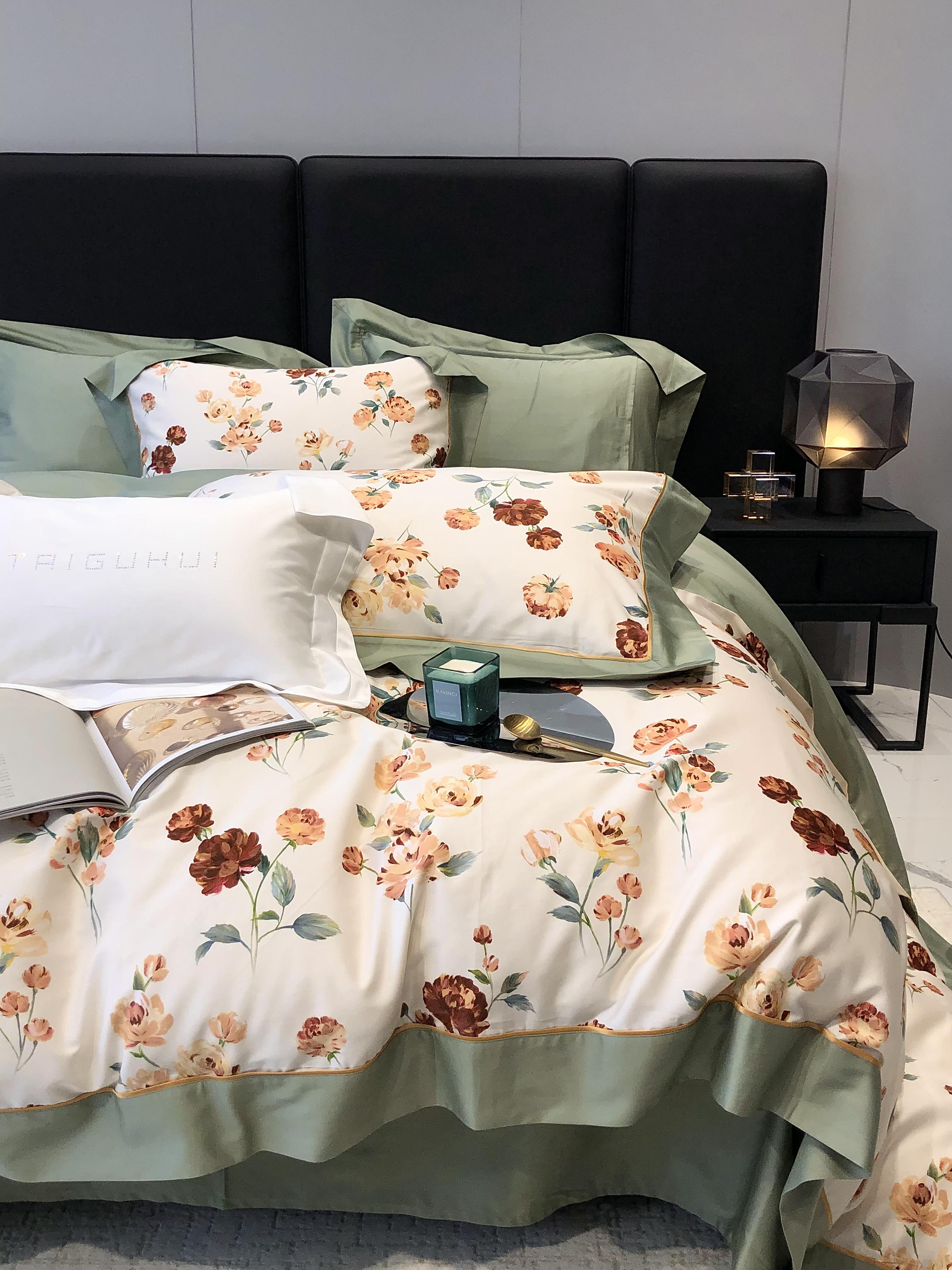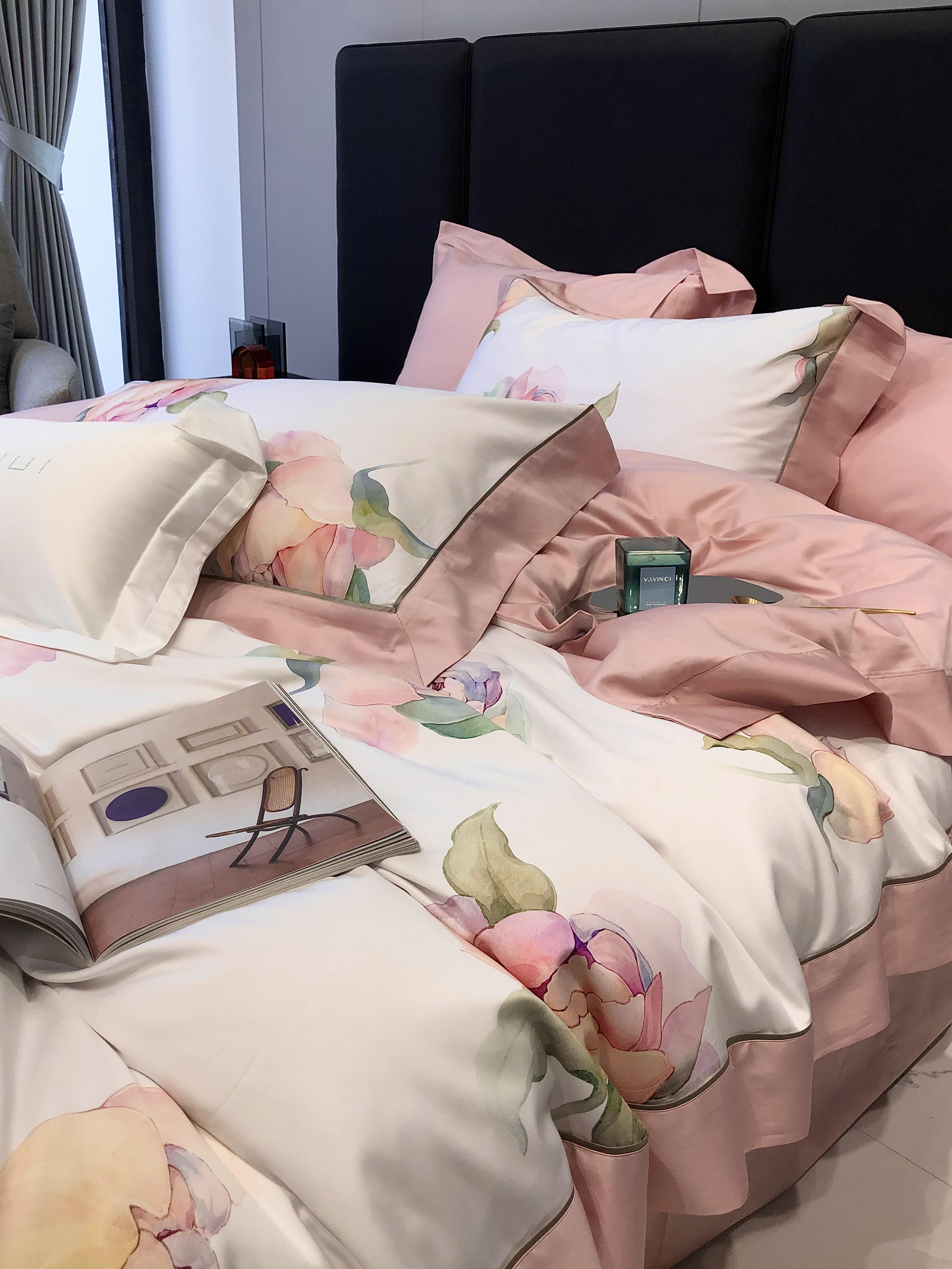 (总)太古汇家居 2025新款活性数码印花四件套,丽奥娜-松石绿,丽奥娜-杏子灰,丽奥娜-樱落紫,莉安娜-粉,莉安娜-卡其,莉安娜-绿,西莉娅-淡紫,西莉娅-粉色