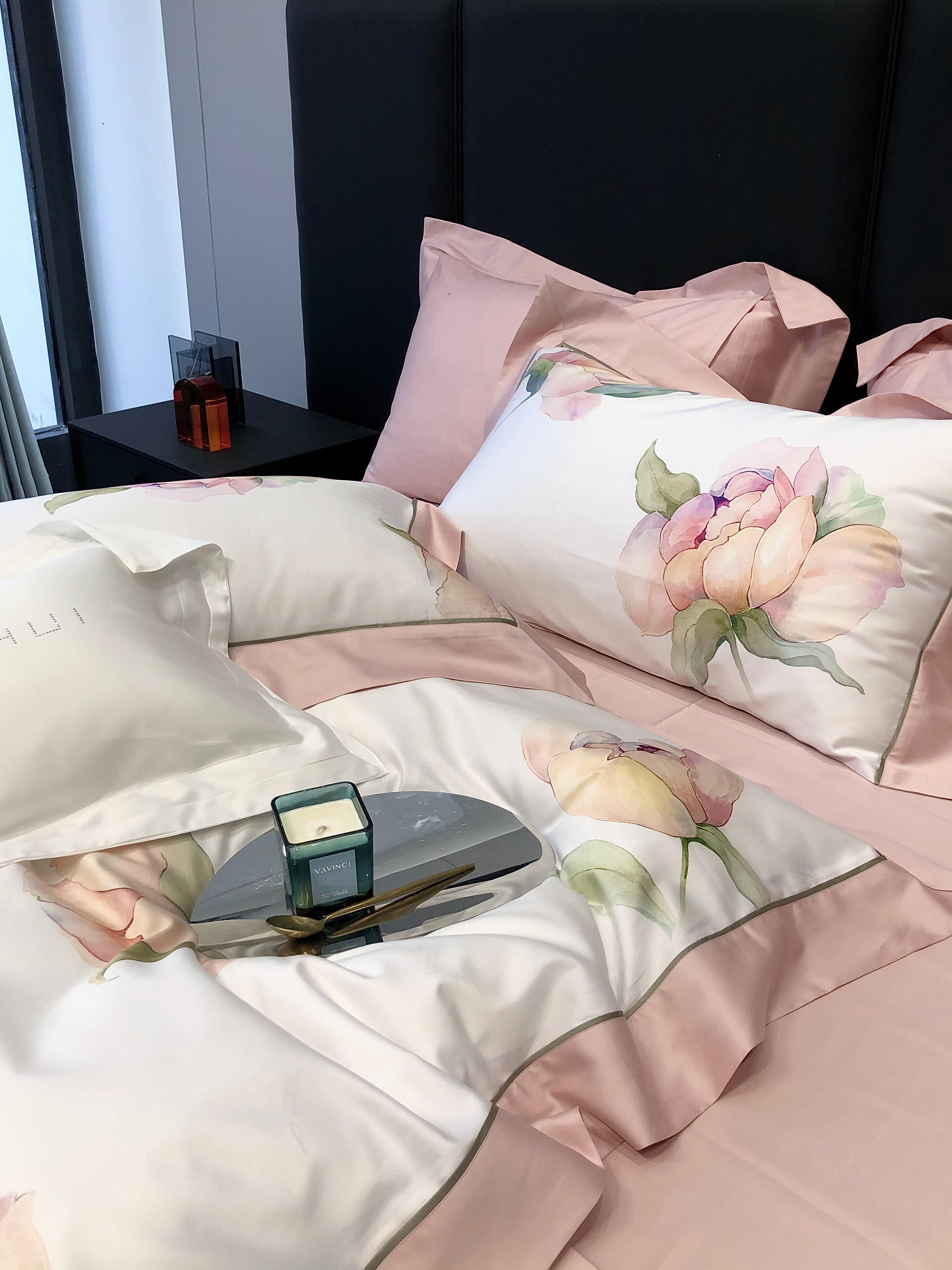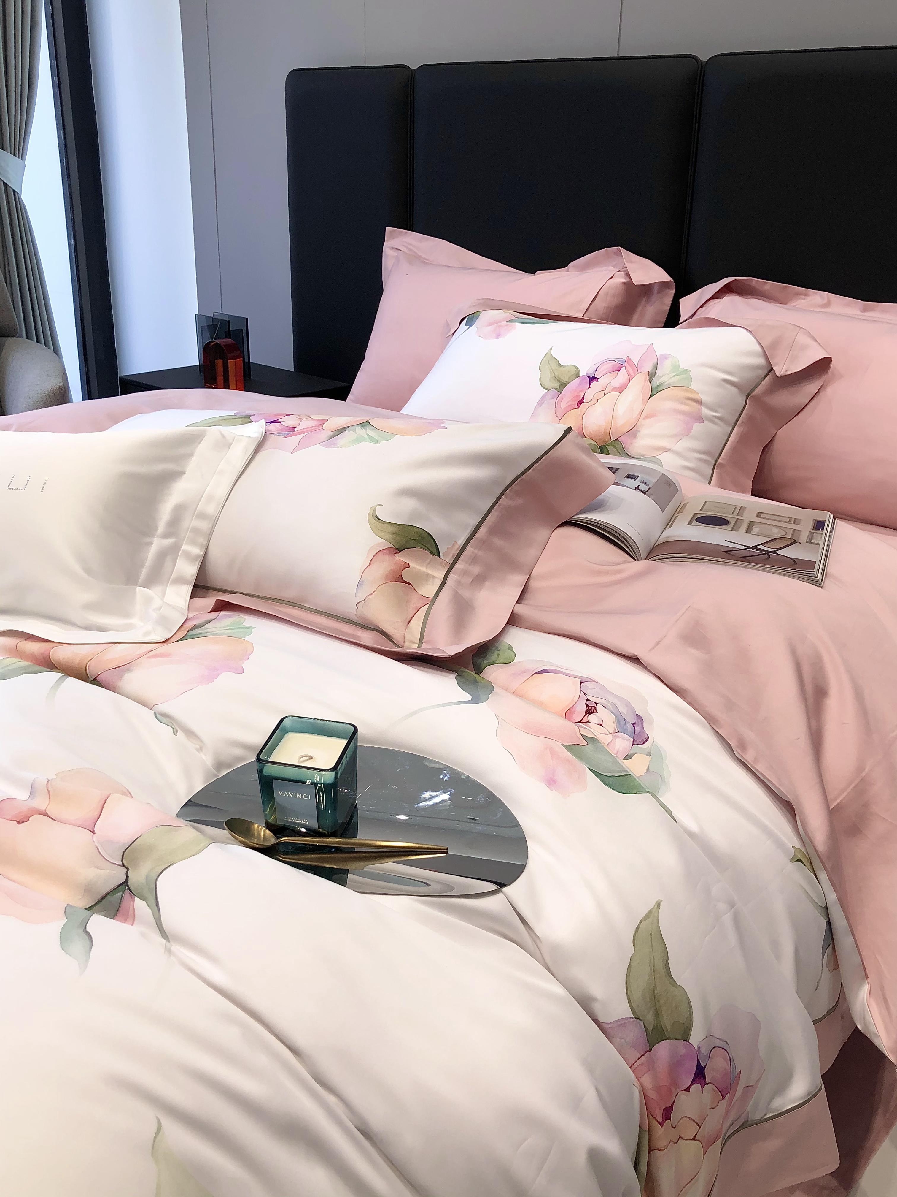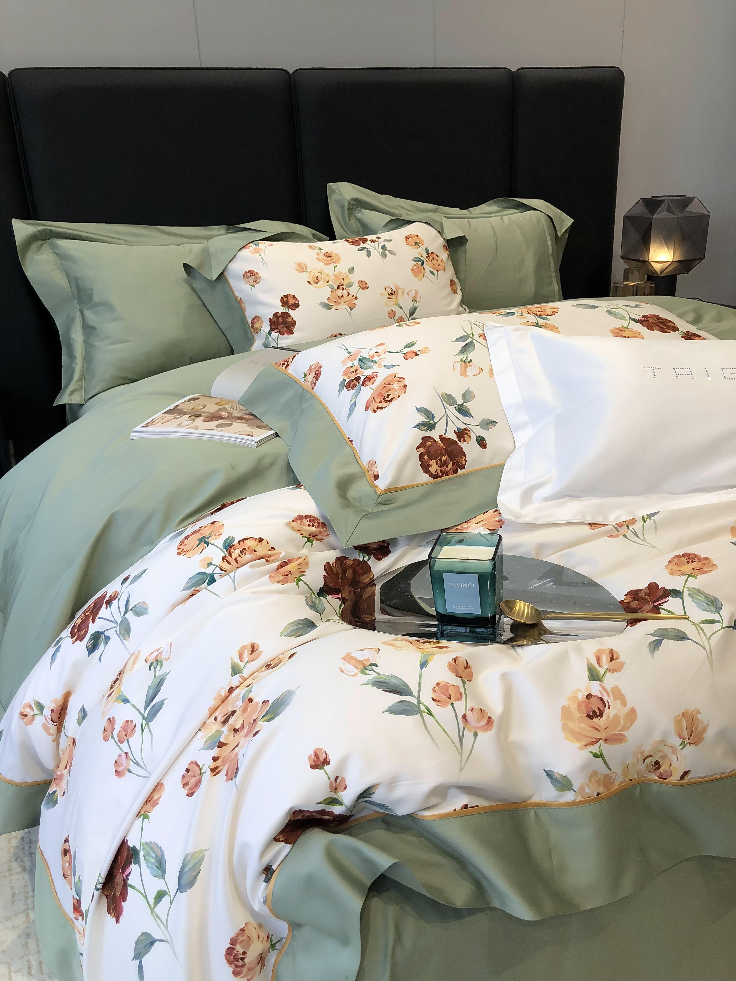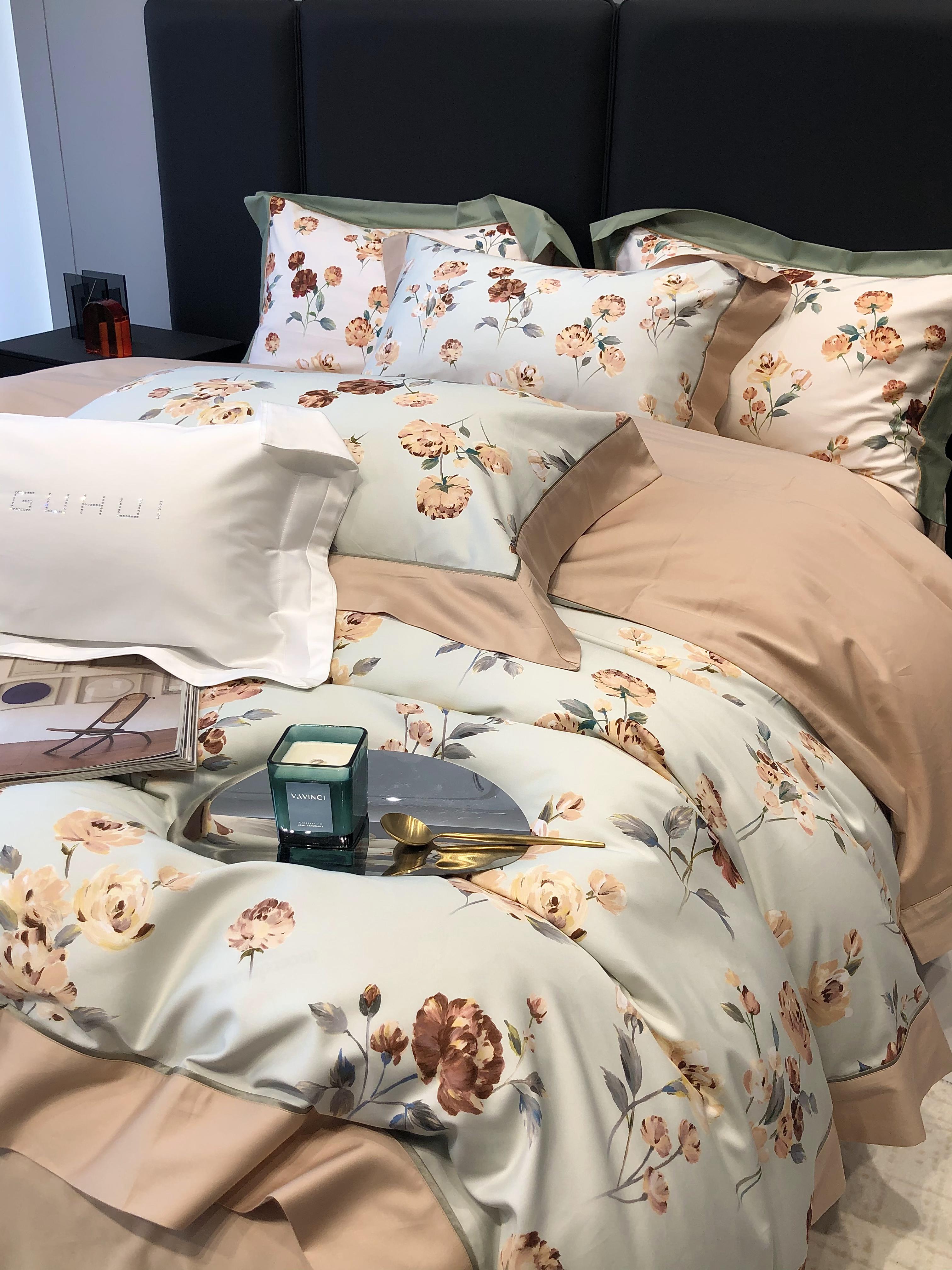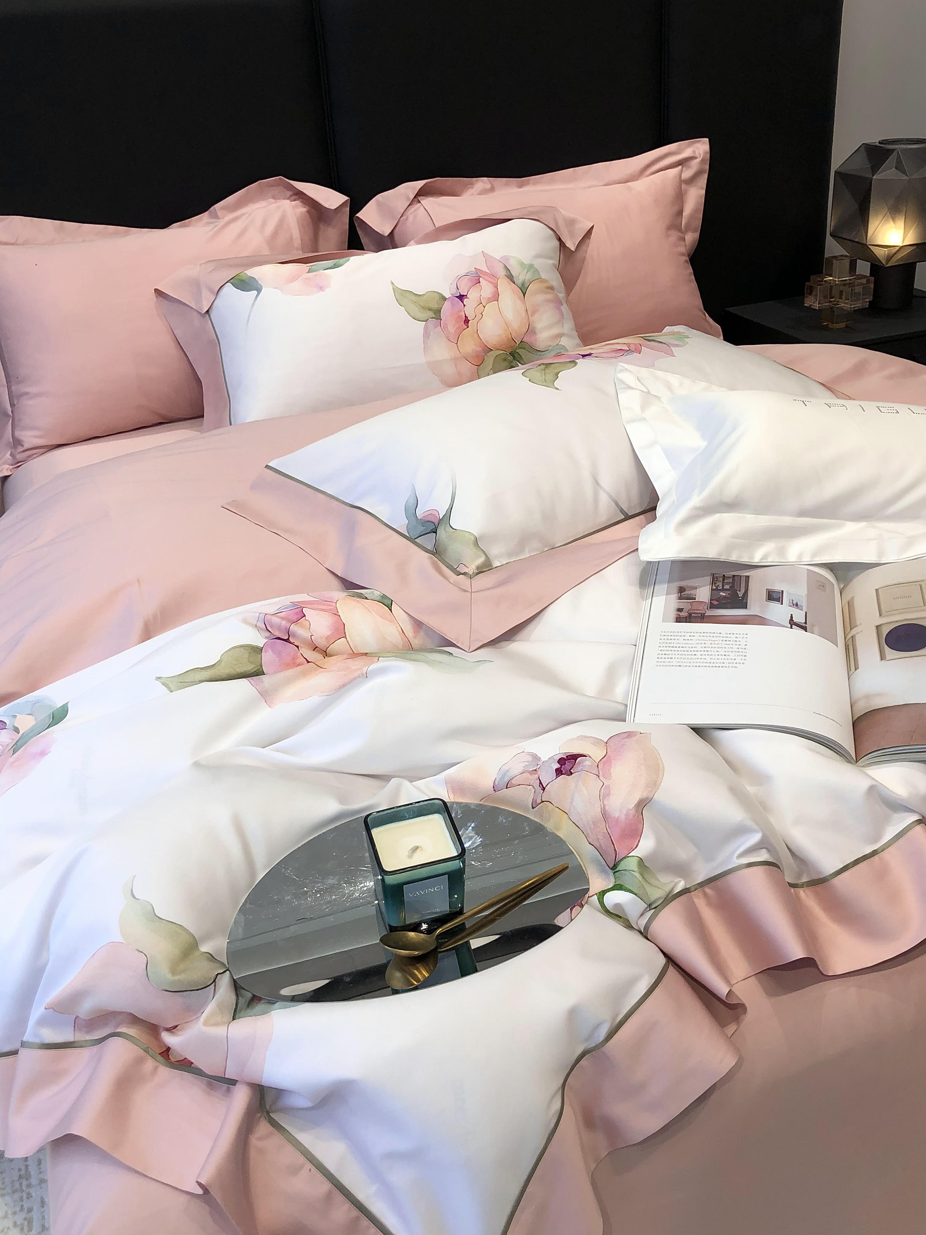 (总)太古汇家居 2025新款活性数码印花四件套,丽奥娜-松石绿,丽奥娜-杏子灰,丽奥娜-樱落紫,莉安娜-粉,莉安娜-卡其,莉安娜-绿,西莉娅-淡紫,西莉娅-粉色