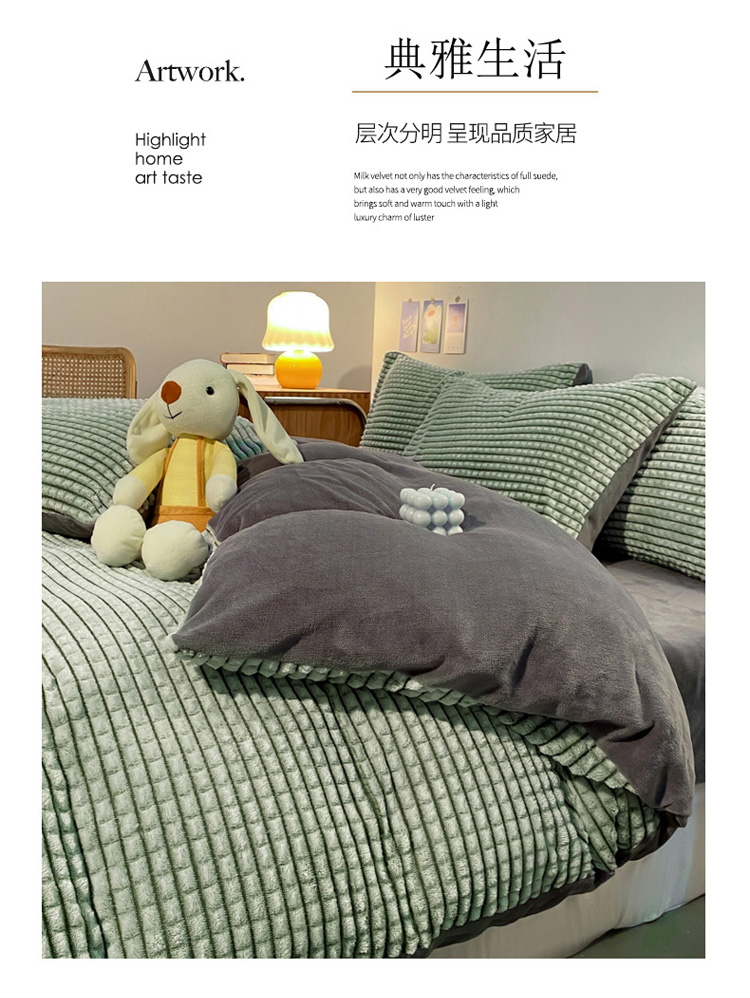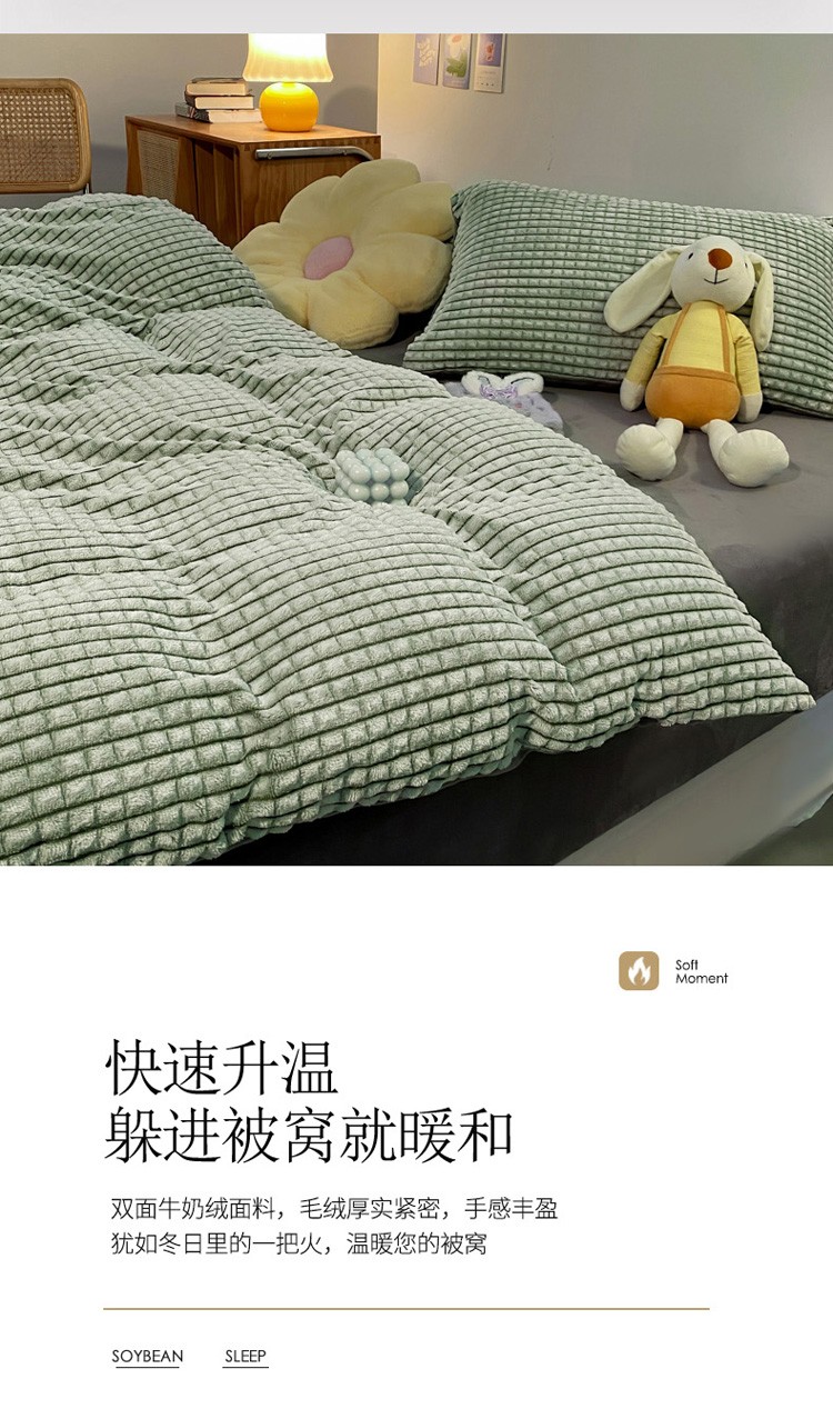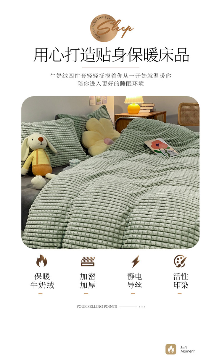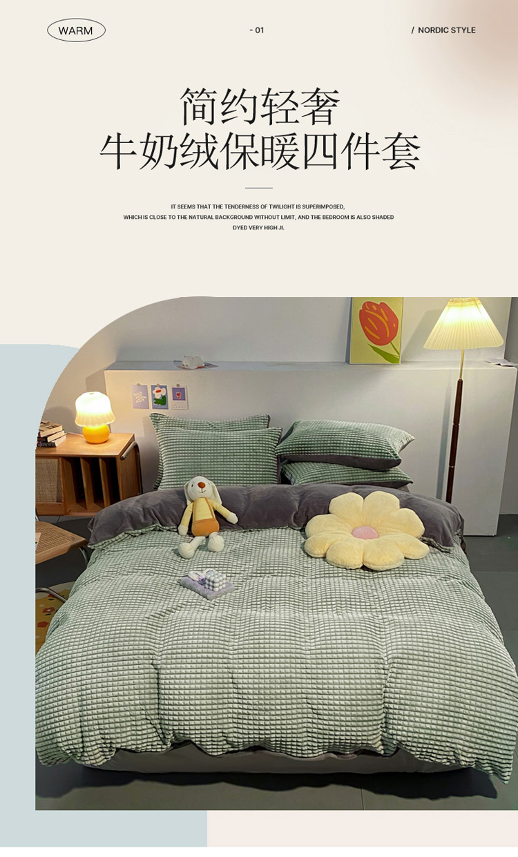 当前位置: 91家纺网 > 商品网购 > 床品套件 > 四件套 > 牛奶绒四件套 > 慕澄 2024新款牛奶绒剪花简约款四件套 简约-绿